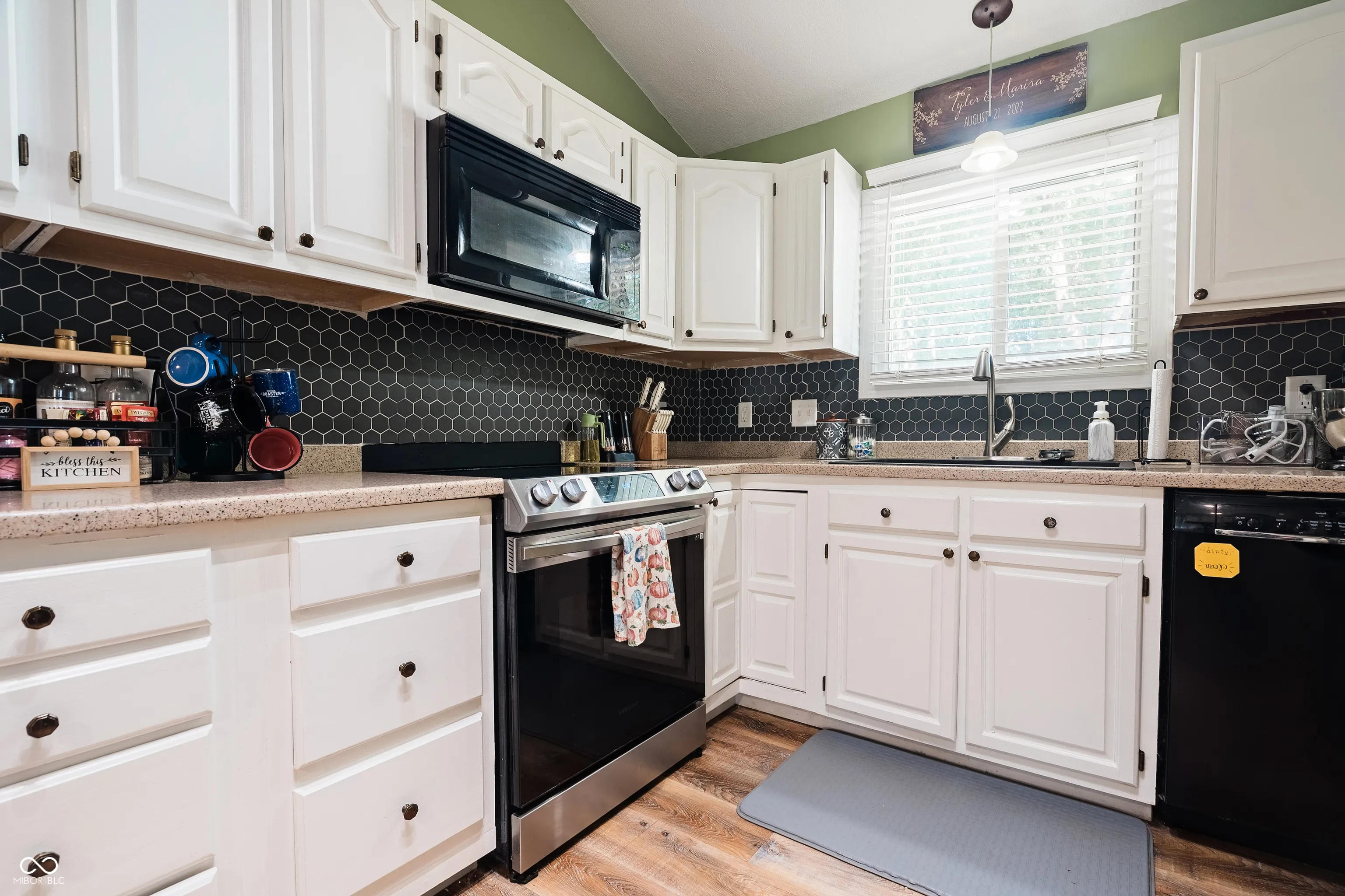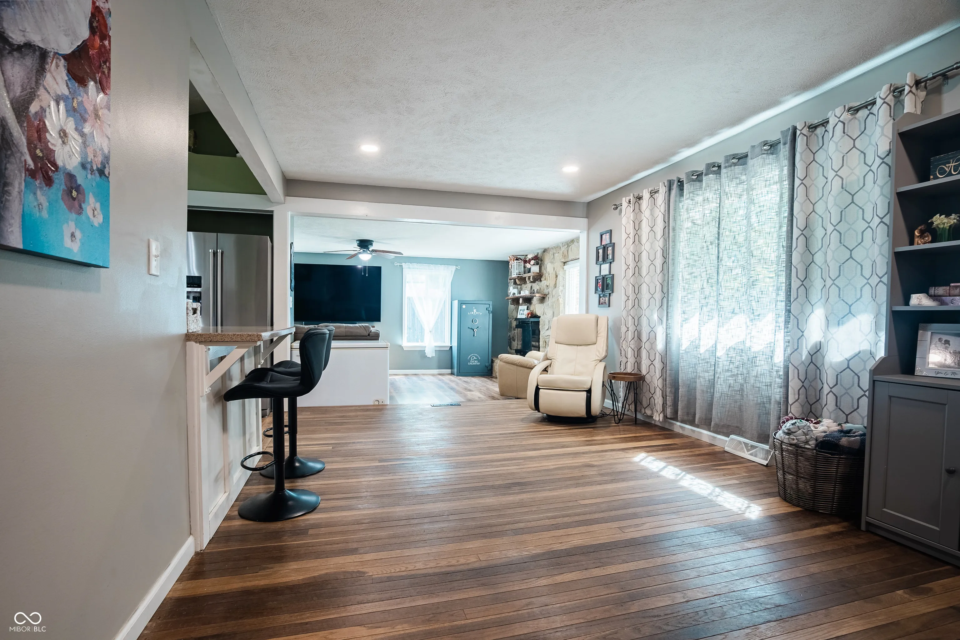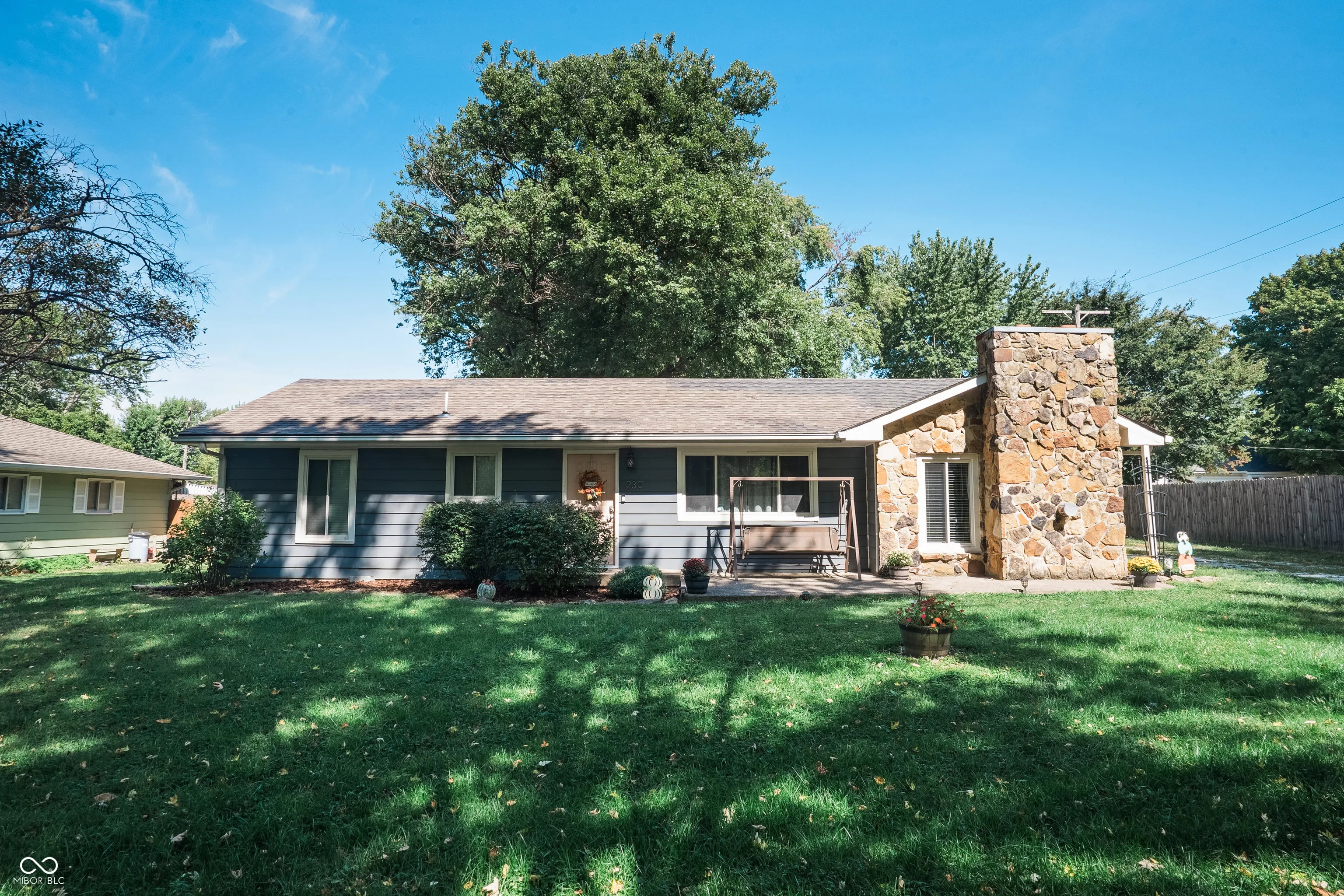 You are going to fall in love with this incredible ranch home on a quiet street in Jamestown! At first glance the large stone chimney and fireplace are sure to impress. Once inside, the real hardwood floors & laminate plank flooring lead you through your open concept main living space. You will adore your kitchen boasting Corian counters, new backsplash, SS appliances & breakfast bar! Next, take a look at your large living room showcasing a stone mantle fireplace that is perfect for hosting guests! Down the hallway you will find your full bathroom with custom tiled floors & tub surround, flanked on each side by spacious bedrooms. Finally, your primary bedroom retreat offers up a stunning en-suite bath with tiled floors & shower surround with glass door enclosure. Out back, you will relax in style with a huge back yard featuring a 2 car detached garage & patio for entertaining. Come see this amazing property today!