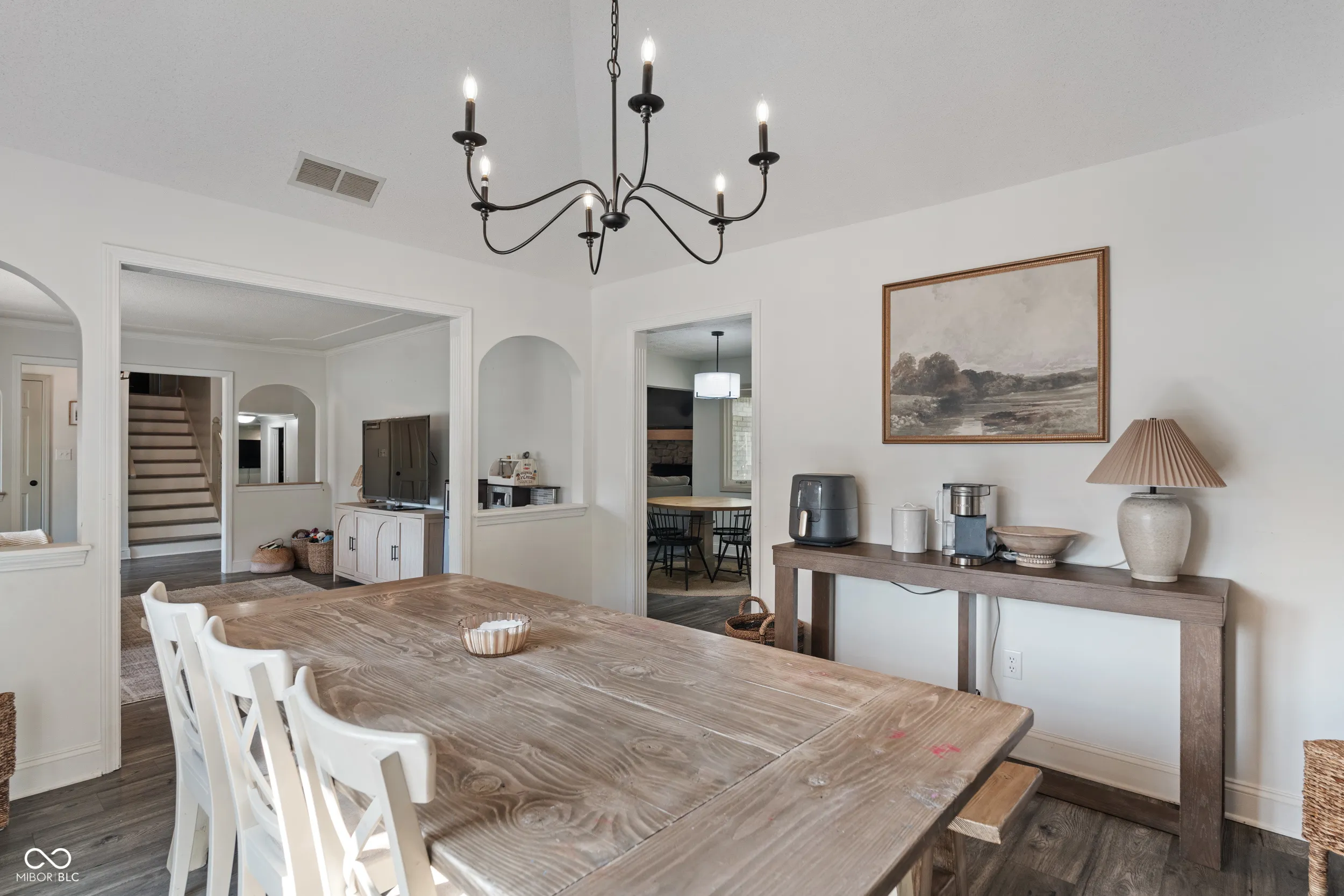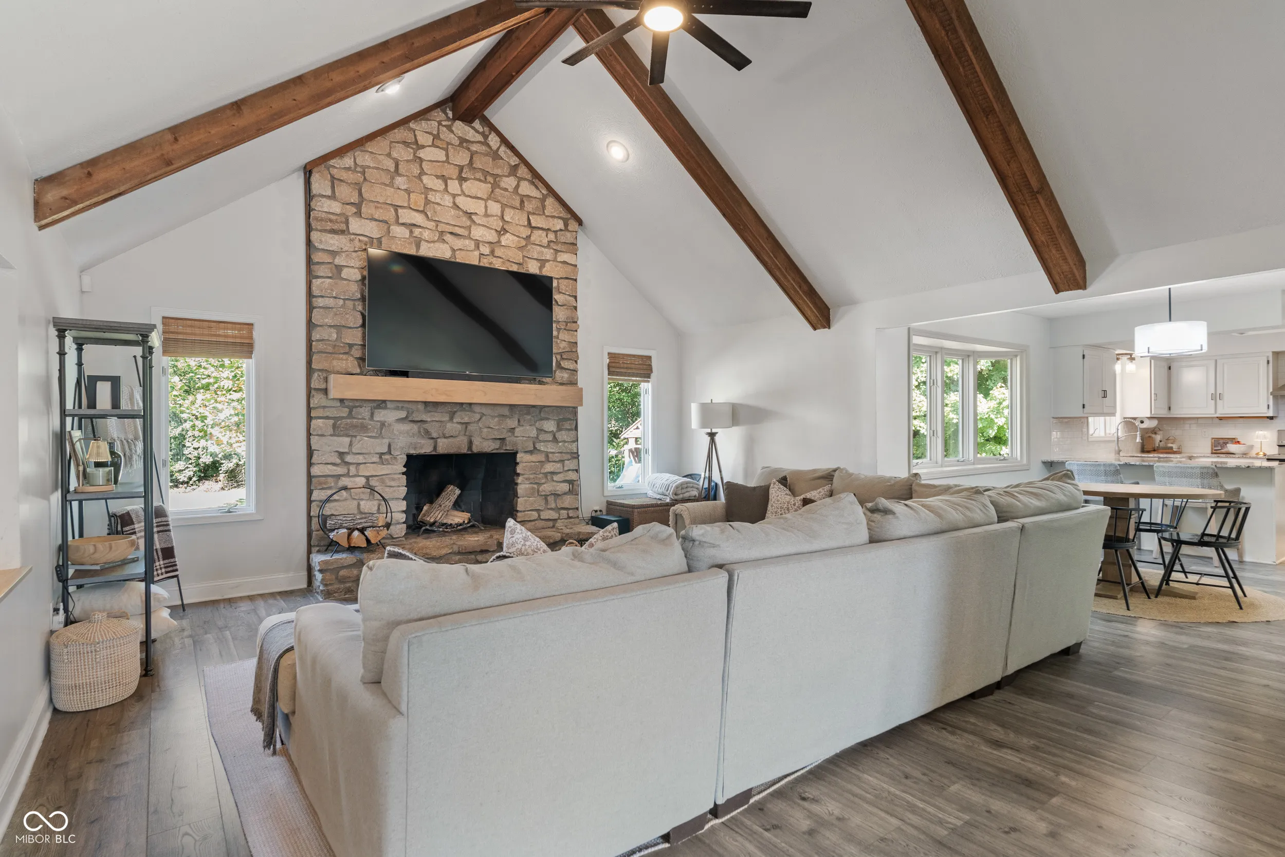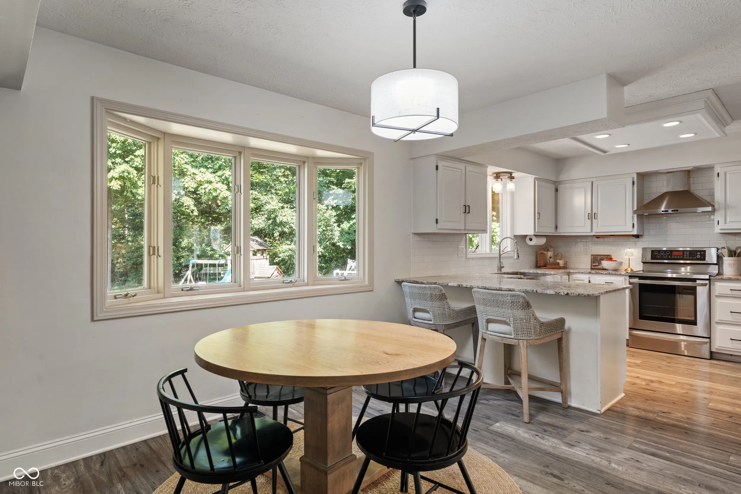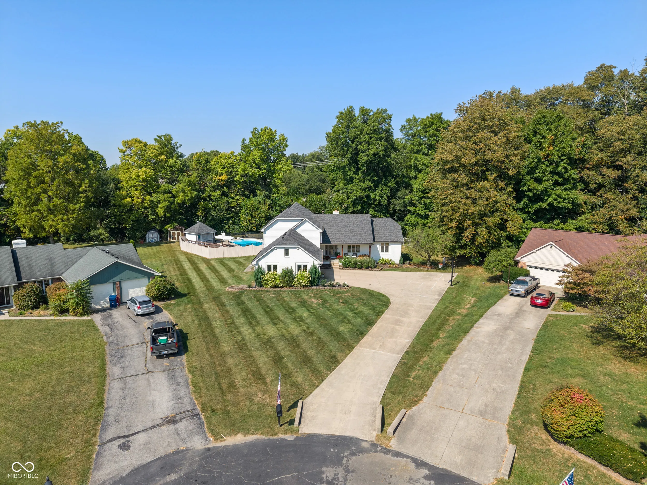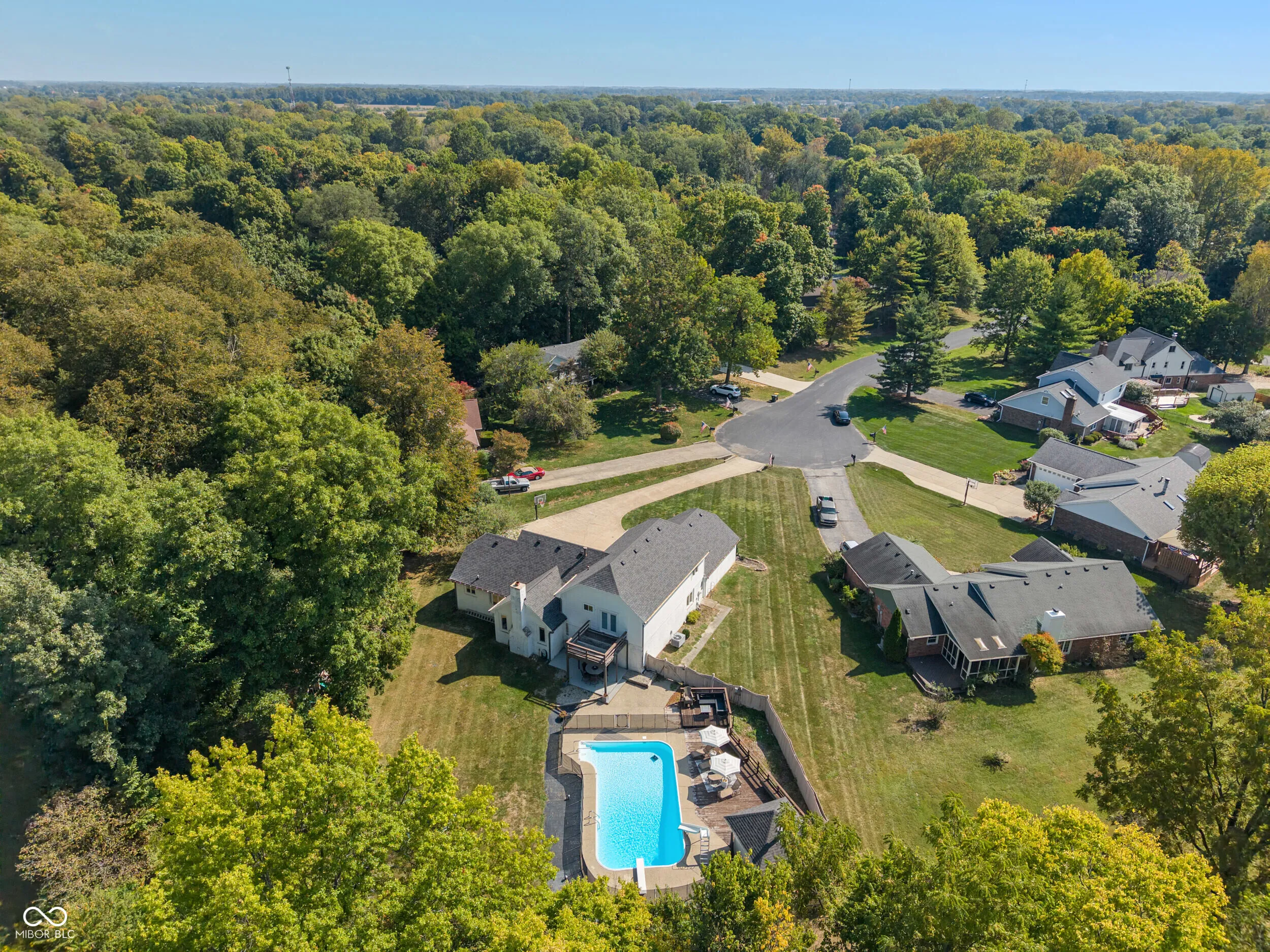 Nestled on a private .63-acre cul-de-sac lot, this modern retreat in secluded Schildmeier Woods awaits. A long driveway sweeps toward a whitewashed exterior, where a cozy front porch invites you inside. Step into nearly 3100 finished sq ft of thoughtfully updated space. A functional circular floorplan flows through generous rooms graced with LVP floors and contemporary fixtures. Bask in the family room beneath soaring cathedral ceilings, where a dramatic wood-burning stone fireplace creates an impressive focal point. The bright kitchen gleams with granite countertops, stainless steel appliances, subway tile backsplash. Versatile main level also hosts a large bonus room, flexible living/dining areas, a walk-out bar, and a convenient bedroom. Escape upstairs to the tranquil primary suite, a private oasis with a spa-like bath. It features custom dual vanities, two walk-in closets, and a huge, exquisitely tiled walk-in shower. Two other spacious bedrooms and another beautifully renovated bathroom complete the upper level. Unleash your vision in the 960 sq ft unfinished basement or utilize the 3-car garage for exceptional storage. Your backyard paradise unfolds with a sprawling lawn and a freshly sealed gunite pool, updated with a new pump and gas line for a heater. Dine on the covered patio, overlooking the lush, tree-lined yard-the perfect backdrop for making lasting memories. Enjoy peace of mind with newer roof and water heater. Don’t miss the opportunity for a home that can provide years of memories for you and your loved ones!