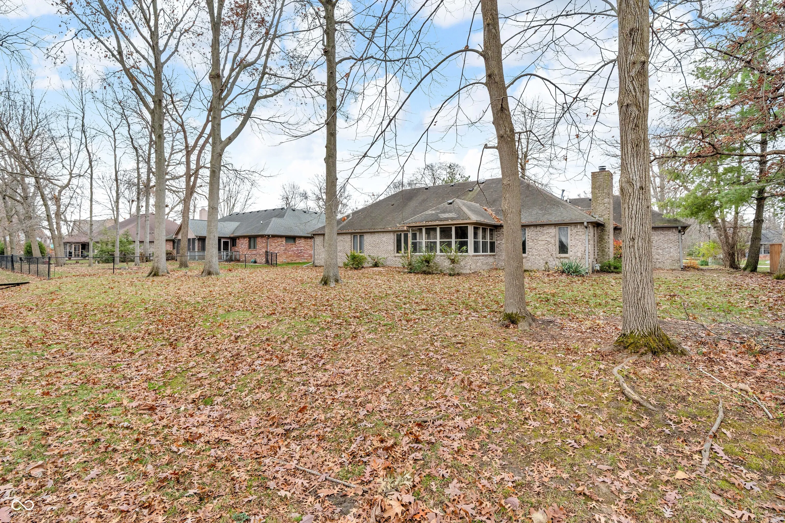 Handsome brick ranch home in a in a safe and desirable neighborhood awaits you. Big yard with mature 100 year old majestic trees provide a beautiful setting. Dramatic foyer with hardwood floor and handrail is a great place to meet. From there, go left to the formal dining room with tray ceiling and kitchen or step down into the sunken formal living room with cathedral ceiling. Gorgeous stained trim incls big baseboard and fluted door and window casing. Kitchen includes tasteful oak cabinets, breakfast bar w/ pendant lighting, SS appliances & fixtures, & pantry closet. Beyond the kitchen is a private family room with gas fireplace, a breakfast room, and a beautiful 3-season sunroom from which to enjoy the idyllic backyard view. Deluxe master suite includes walk-in closet, whirlpool tub with skylight for daytime bathing & dramatic track lighting for evening … separate shower, & W.C. room also. Convenient laundry room between kitchen and garage … washer & dryer stay too. 3-BR, 2-full bath, and a 3-car finished garage for cars and more. Big finished garage is 31’x24′ + 6’x6′ sink and storage area … water softener and garage refrigerator stay. Home warranty included. Close to all amenities that Plainfield has to offer including trails, parks, shopping & more … only 25 mins from downtown Indy. Welcome to the good life!