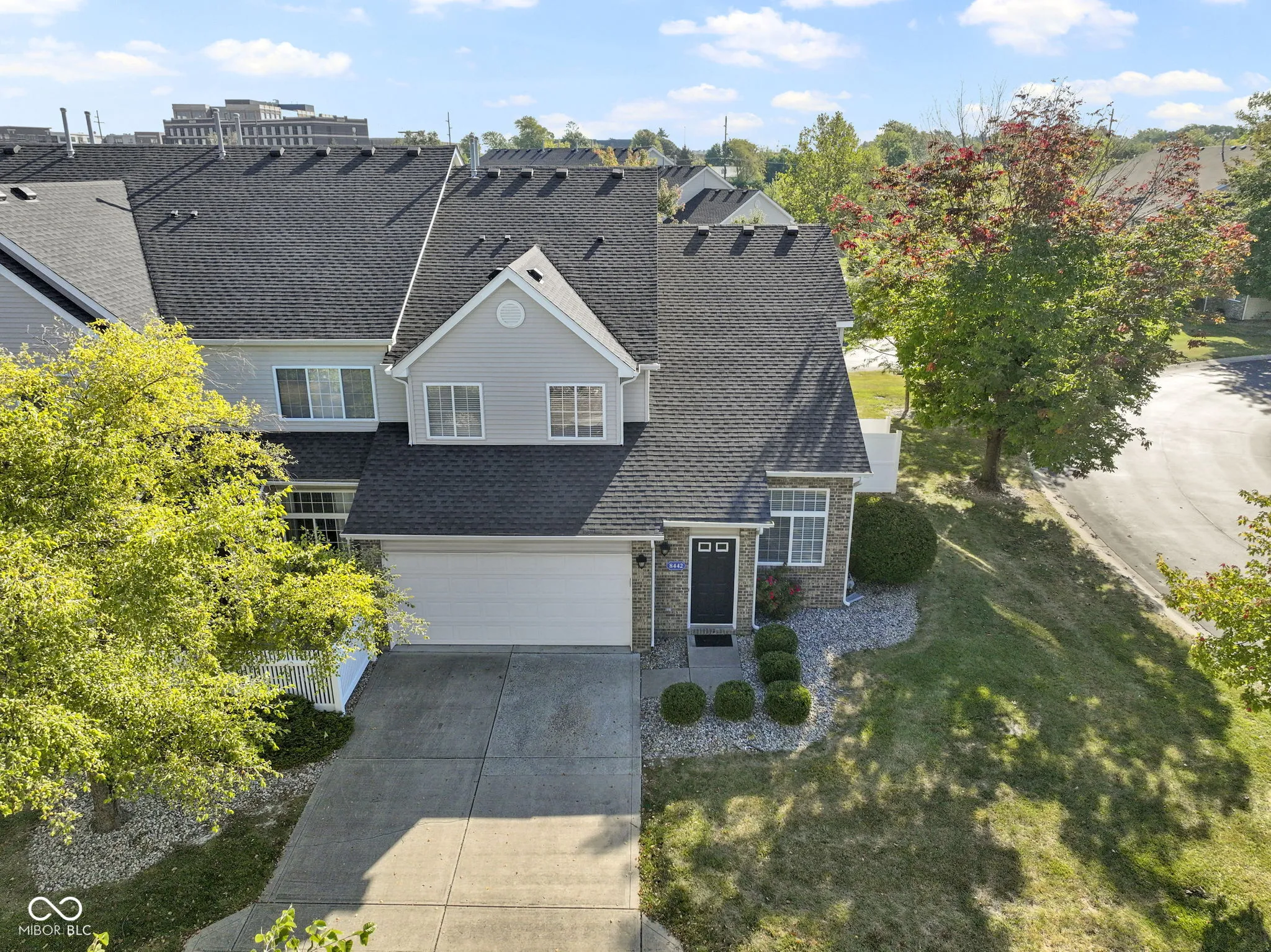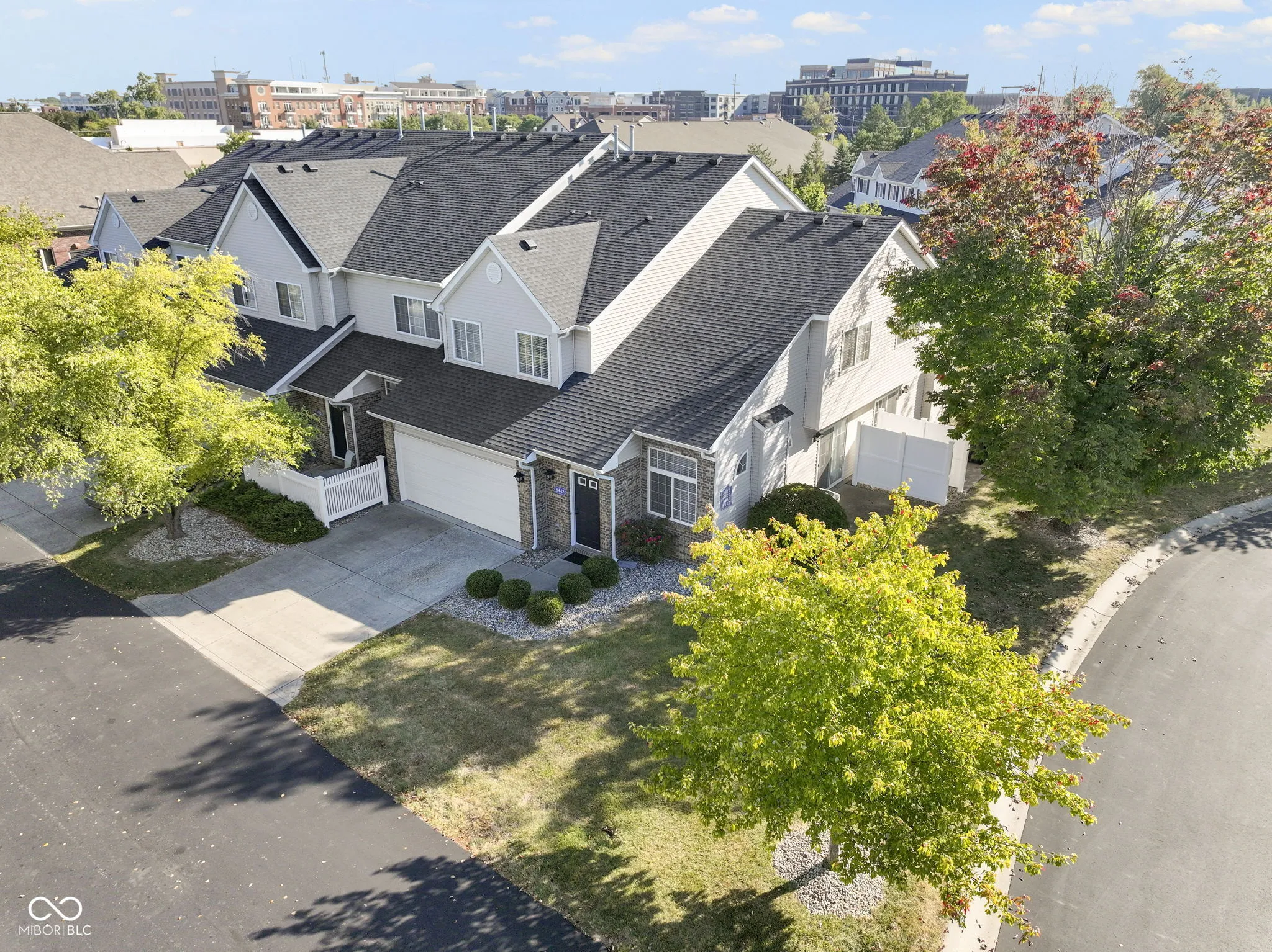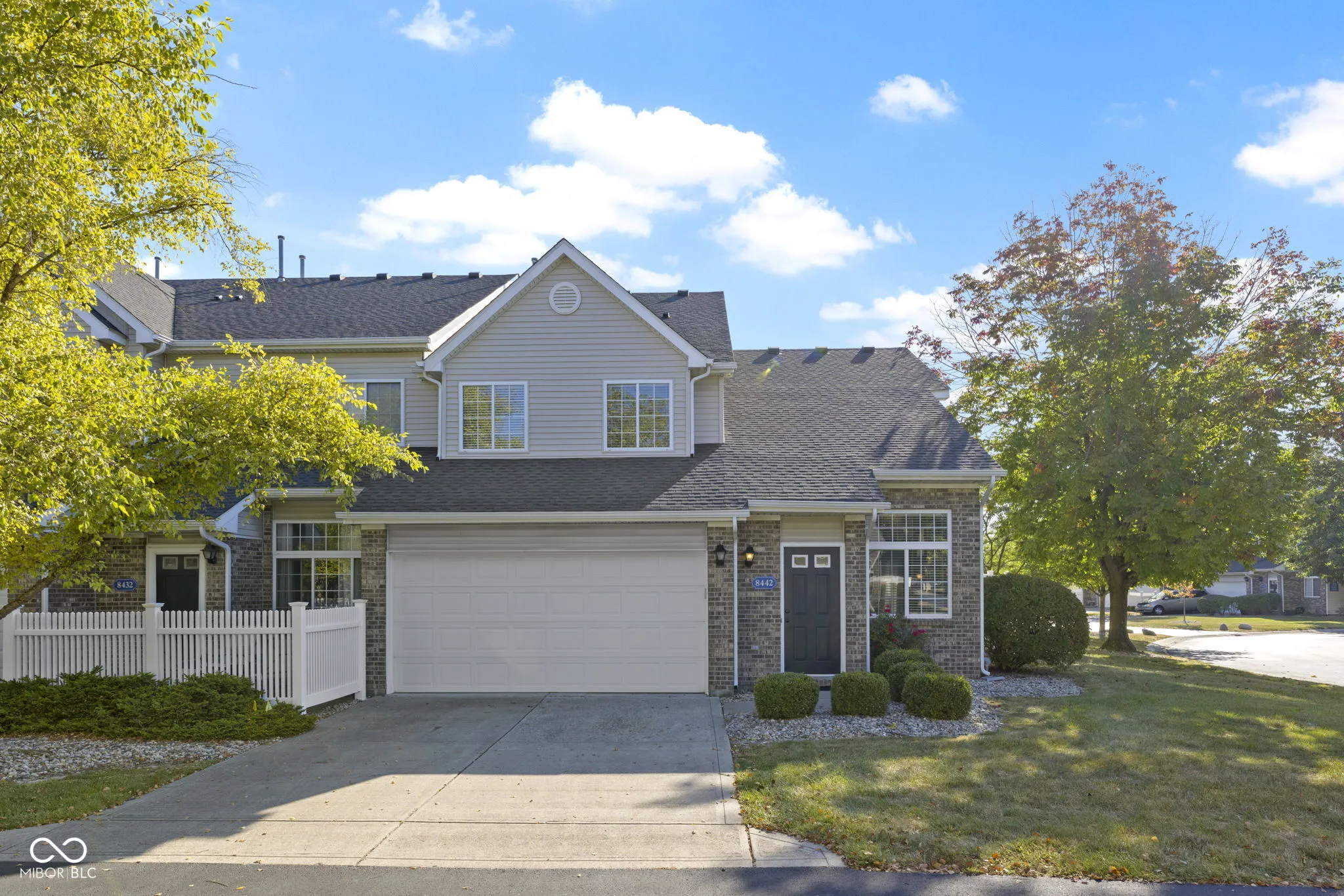 This delightful 2bedroom/2.5bath condo is in the perfect location in the middle of Fishers within walking distance to the Nickel Plate District Amphitheater and several restaurants! Walk to the Fishers Farmer’s Market on Saturday mornings plus take in the free concerts during the summers and walk home!! All Appliances are included with this unit plus washer/dryer AND water softener too! Water Heater was just replaced this summer and interior is freshly painted throughout so it’s ready to move in. Kitchen offers a breakfast bar area plus dining room space that walks out to a patio. Primary bedroom features private bath with walk-in shower and vanity. Hall bath has full tub/shower and second bedroom is a nice size too! Upstairs laundry closet is super convenient. Oversized garage offers storage space. No exterior maintenance as it’s all taken care of! Great room offers gas log fireplace plus plenty of windows on the end unit for fresh light throughout and privacy too. Property is vacant and easy to show and sell!