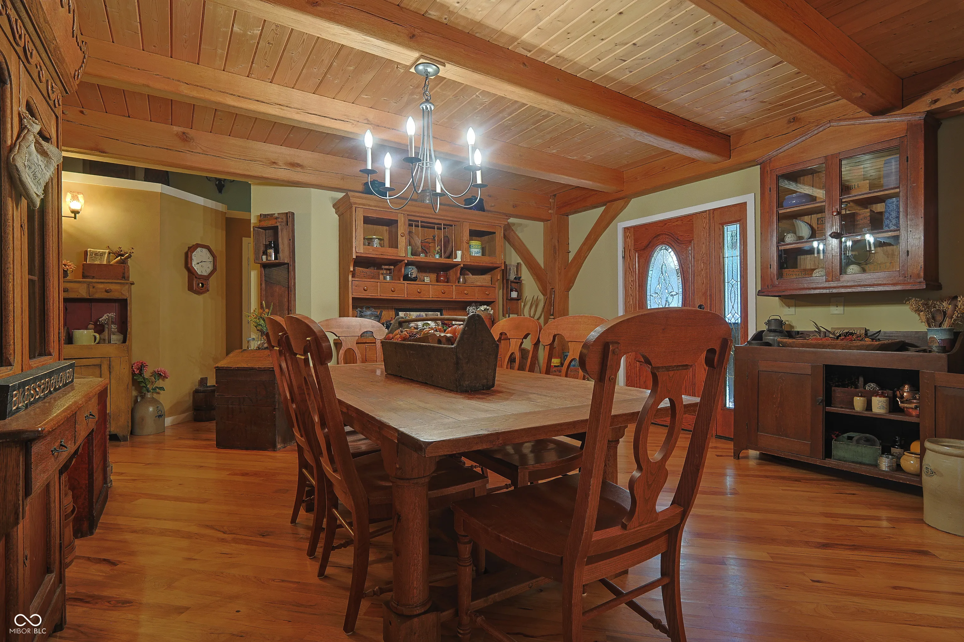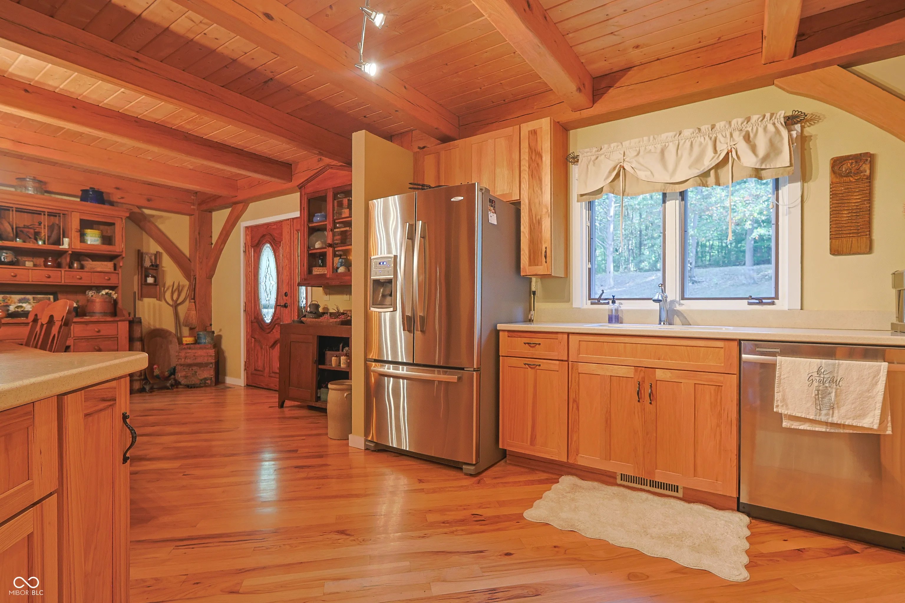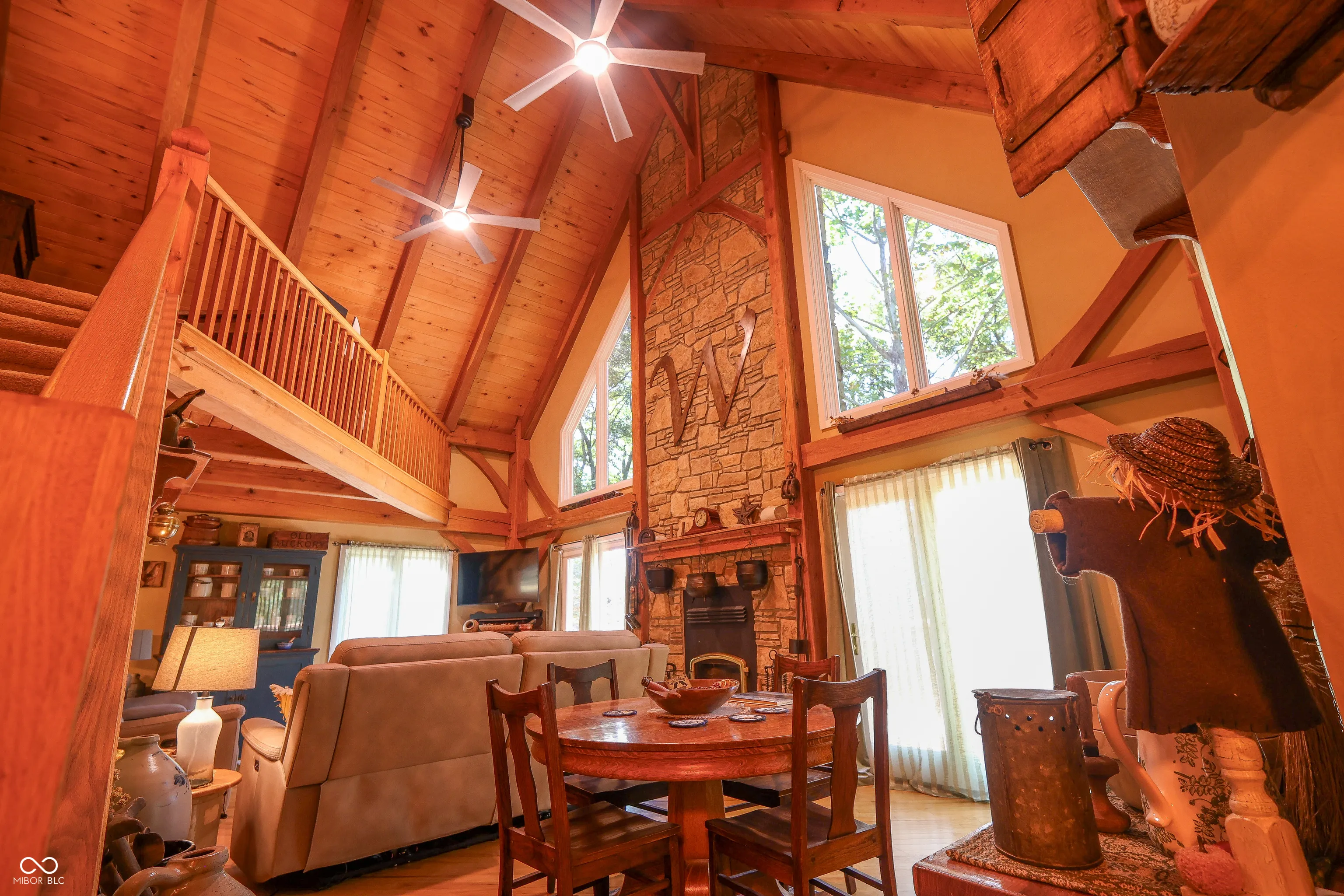 Custom red oak timber-frame home with Lake Monroe views, located in Salt Creek Estates this stunning post-and-beam home offers a rare blend of architectural character and easy access to Brown County’s most sought-after recreation. Inside, the home showcases soaring ceilings, exposed red oak timber framing, and a dramatic floor-to-ceiling stone wood-burning fireplace that anchors the two-story great room. Hickory hardwood flooring and natural materials create warmth throughout the open living space. The updated kitchen features quartz countertops, stainless appliances, and a breakfast bar, making it ideal for everyday living or entertaining guests. With over 3,400 square feet, 3 bedrooms, and 4 full bathrooms, the home offers flexibility and comfort across multiple levels. The finished walkout lower level includes additional living space, a family room and bedroom. Enjoy peaceful mornings and relaxing evenings with views of Lake Monroe, and take advantage of the community’s HOA boat-slip access, making time on the water simple and convenient. Includes Propane Standby Generator that automatically turns on. Located just minutes from downtown Nashville’s shops, restaurants, and art galleries, this property offers the perfect combination of natural beauty, craftsmanship, and lake-area living. Nature woods and sunsets are waiting for you!