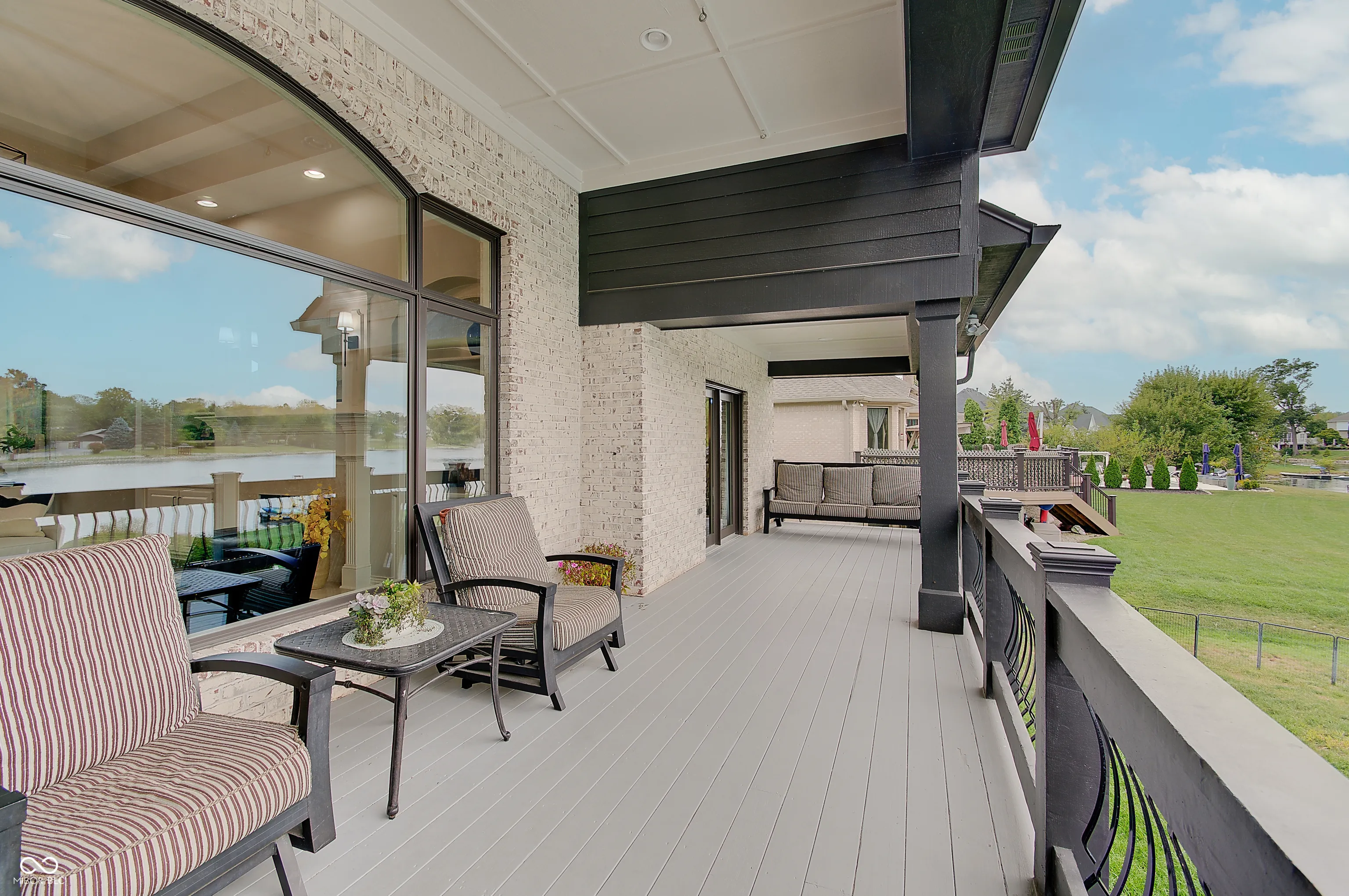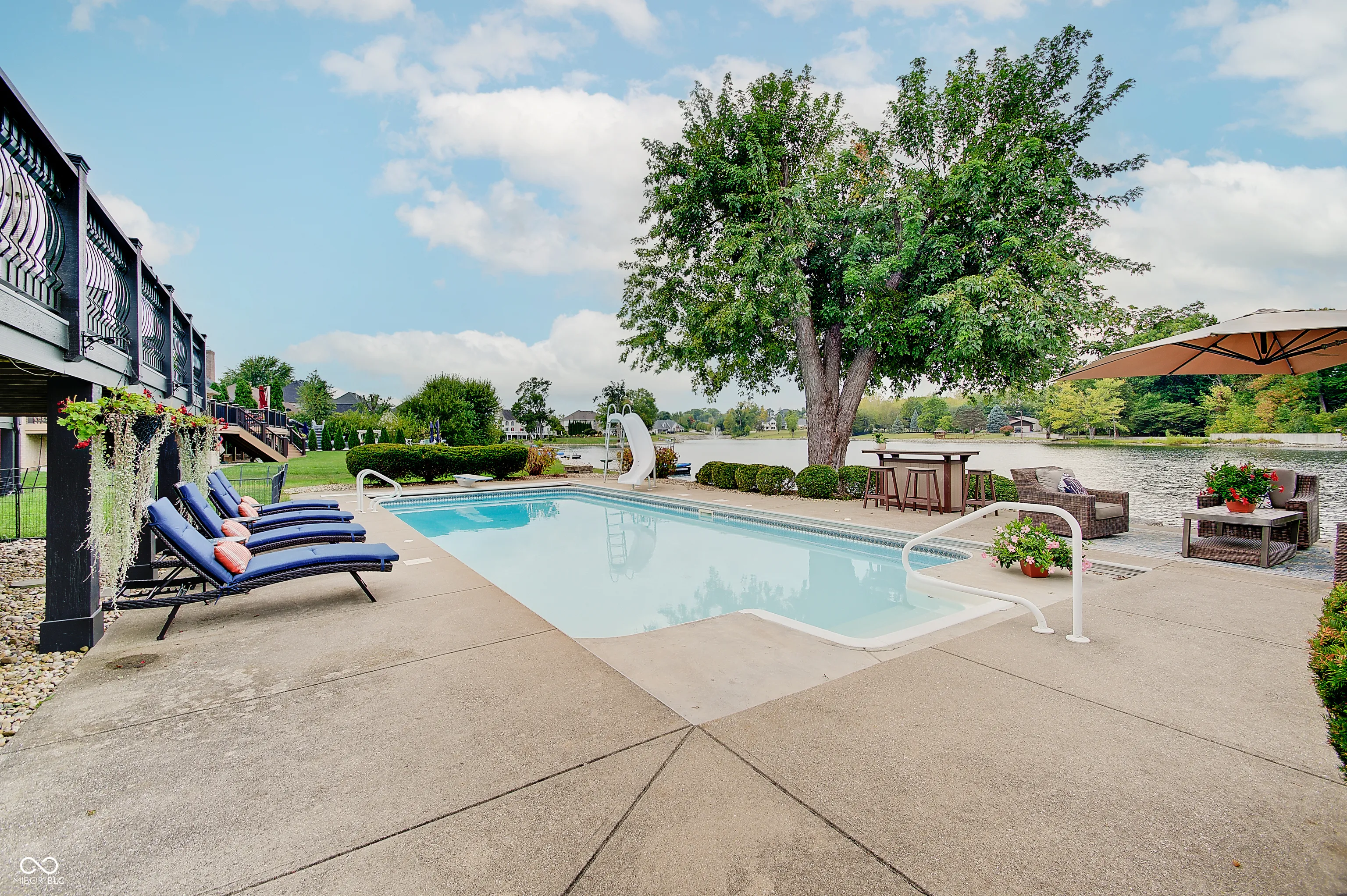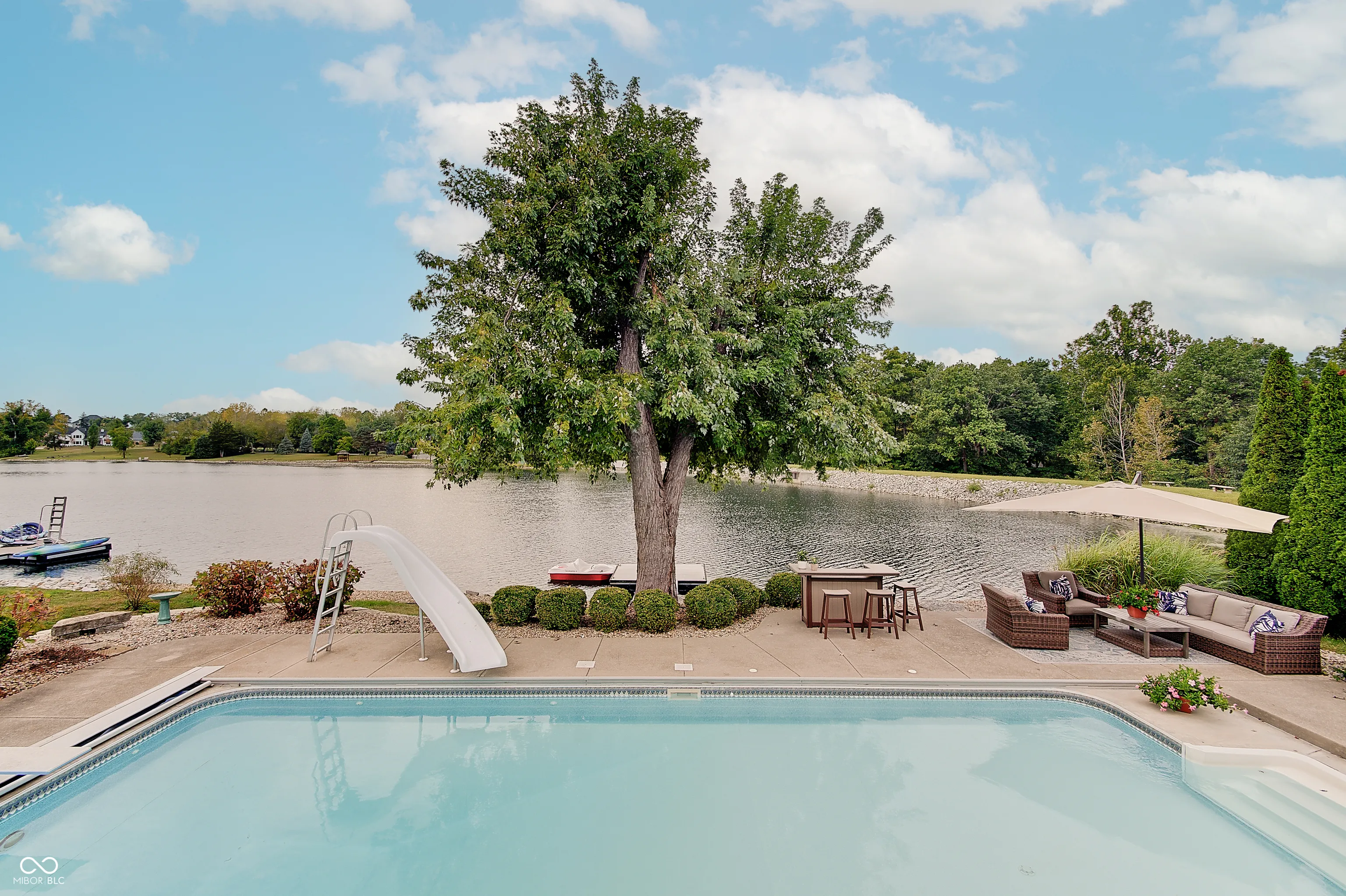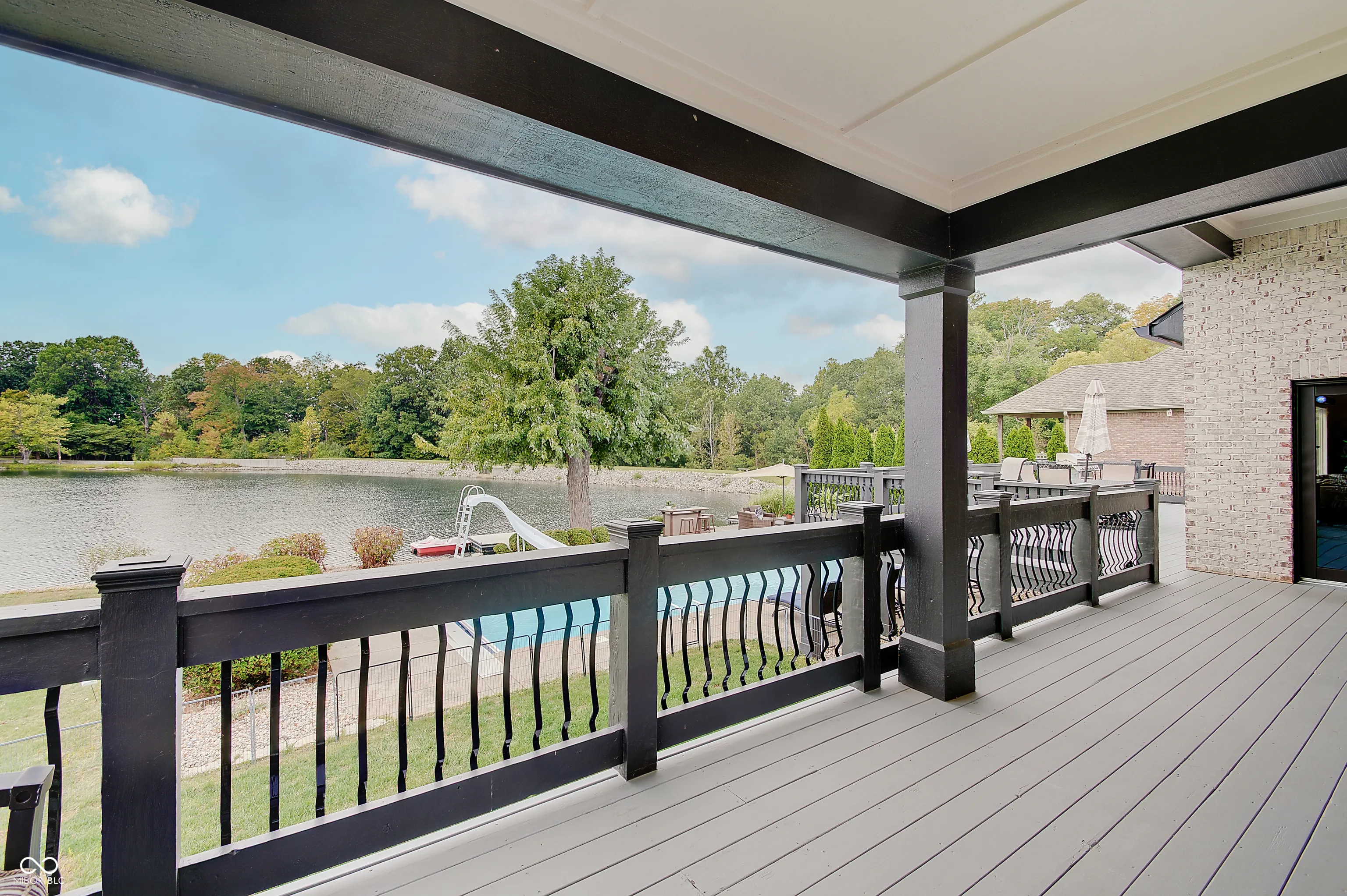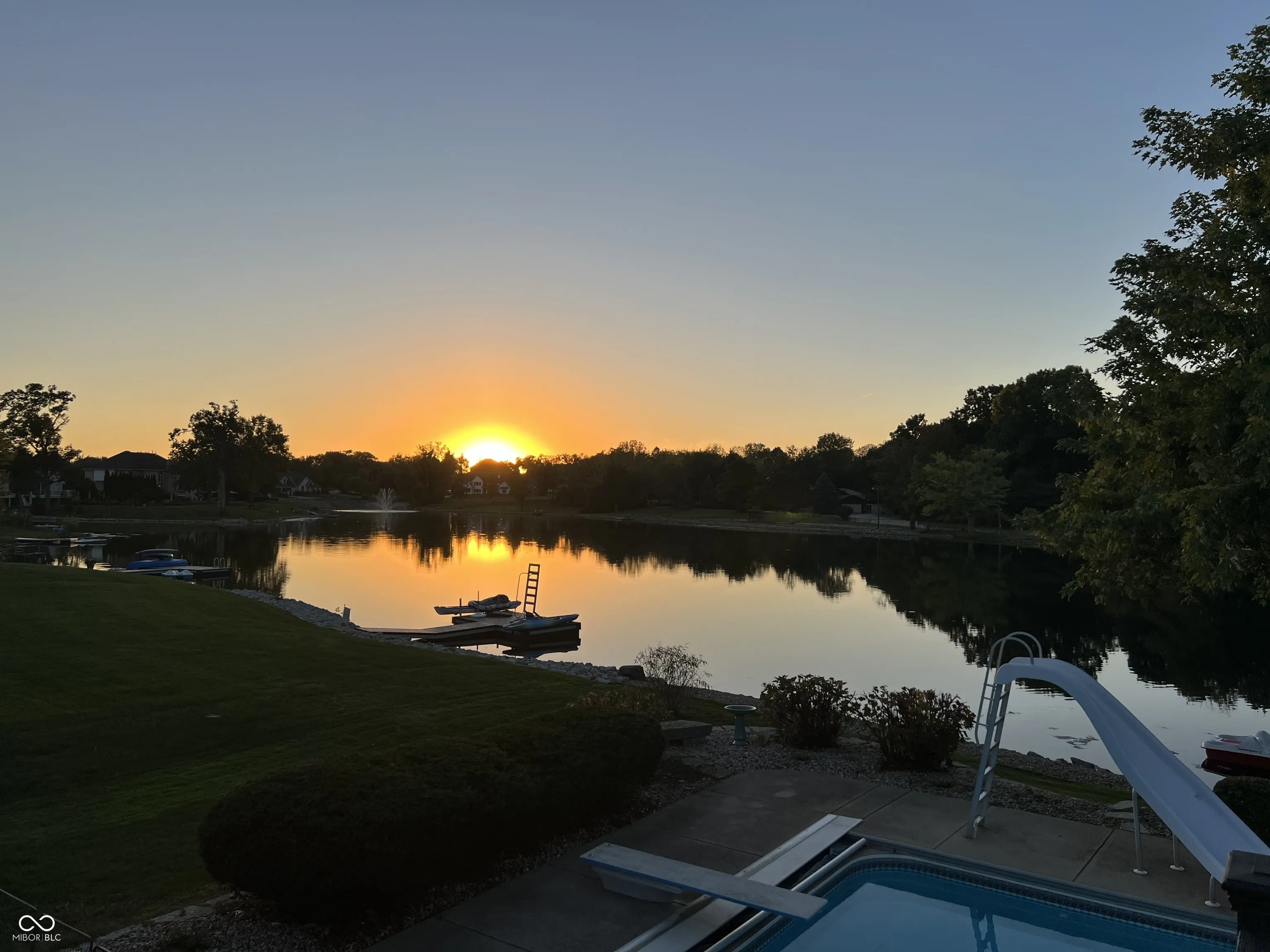Welcome to this stunning 4 bedroom, 4.5 bath custom brick ranch offering nearly 5,700 sq ft of luxury living with breathtaking lake views and private lake access w/ floating dock. Designed for both comfort and entertaining, this home boasts an impressive circular drive, heated in-ground pool and a spacious deck overlooking the water. Inside, you’ll find two main level bedrooms, Primary and In-law suite, and two addtl bedrooms in the fully finished basement, each w/ it’s own bath for privacy and convenience. Primary has water views w/ french doors leading to deck and en suite with dual walk in closets/vanities and a coffee bar. Elegant details include tray ceilings, formal living room with fireplace and built ins, formal dining room, private office w/ built ins and so much natural light. The expansive lower level is a retreat of it’s own, featuring a home theater, wet bar, exercise room w/ sauna, second laundry closet, bonus room, small office and ample storage throughout. Walls of windows in kitchen/family room & living room frame serene lake views creating a bright and inviting atmosphere. This home combines timeless craftsmanship with modern amenities, offering the perfect balance of luxury, functionality and lakeside living. Some recent Seller improvements include: Roof/gutters/air vents ’23, interior/exterior paint ’23, exterior canned lighting, interior lighting fixtures ’23, insulation ’23, pool cover ’25, pool filter ’21, gas cooktop ’22, Bosch dishwasher ’22, gas water heater ’20, carpet main basement ’23, 1080P HD Projector ’25, 10′ screen ’22, bar fridge ’25, wine fridge ’25.