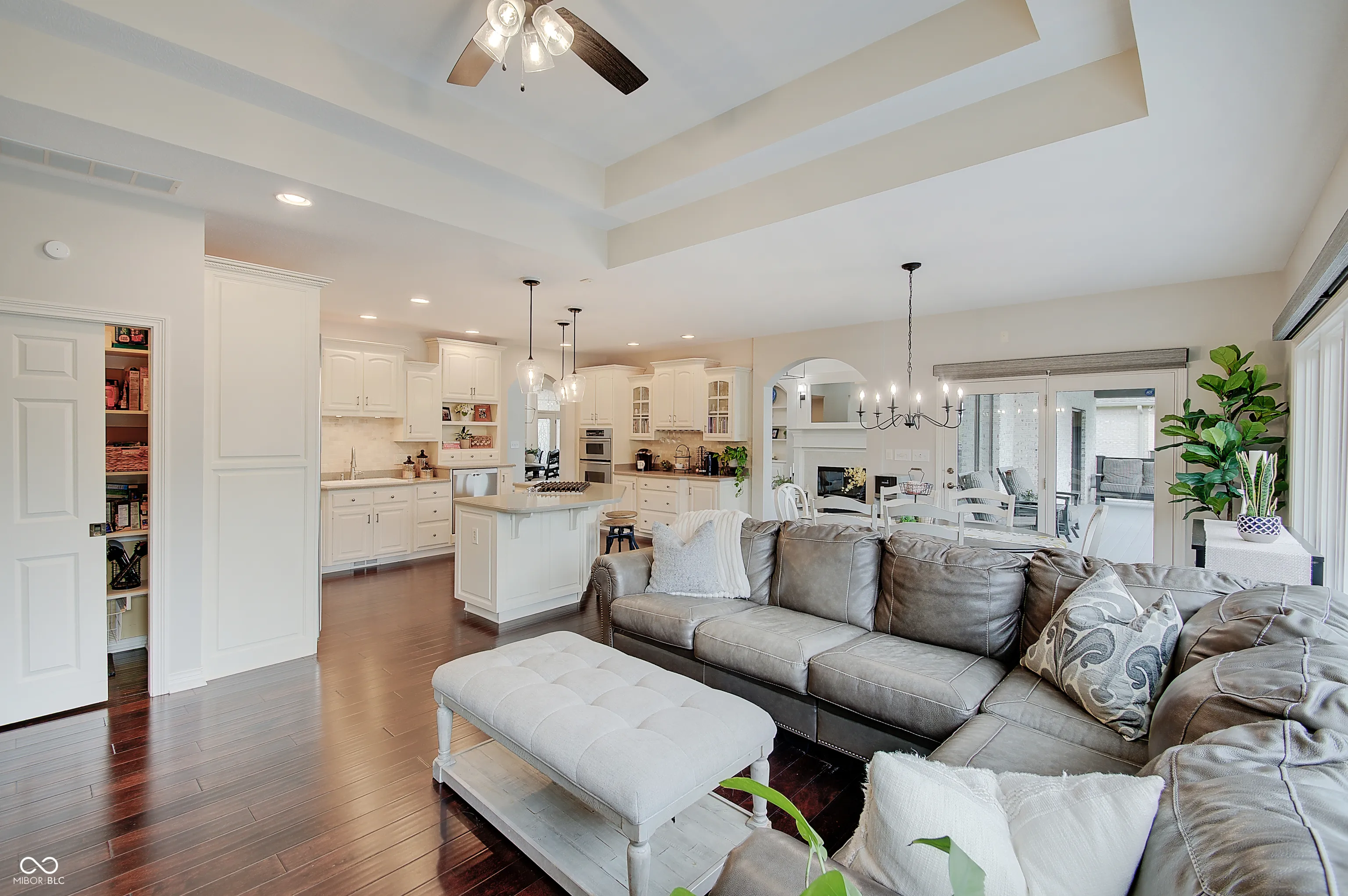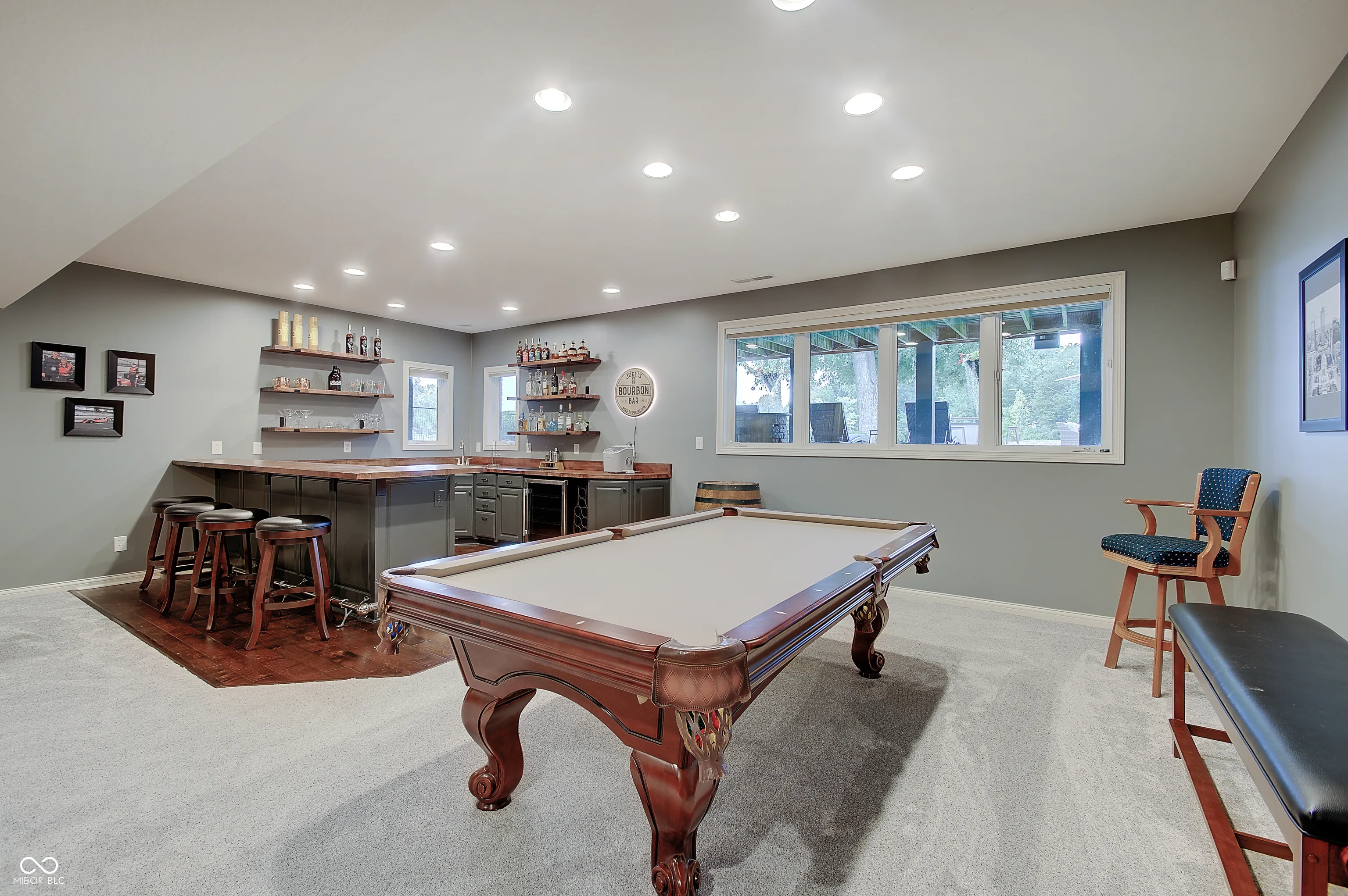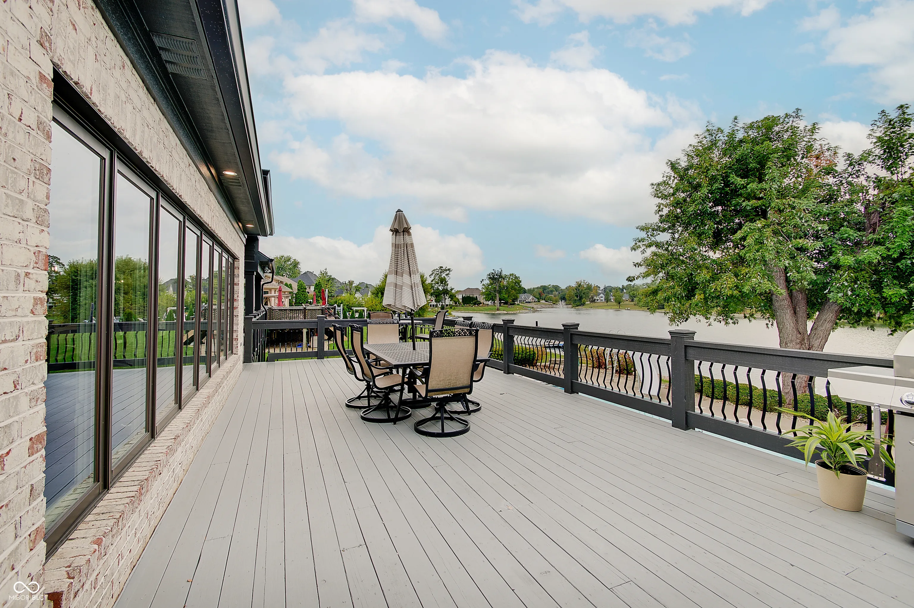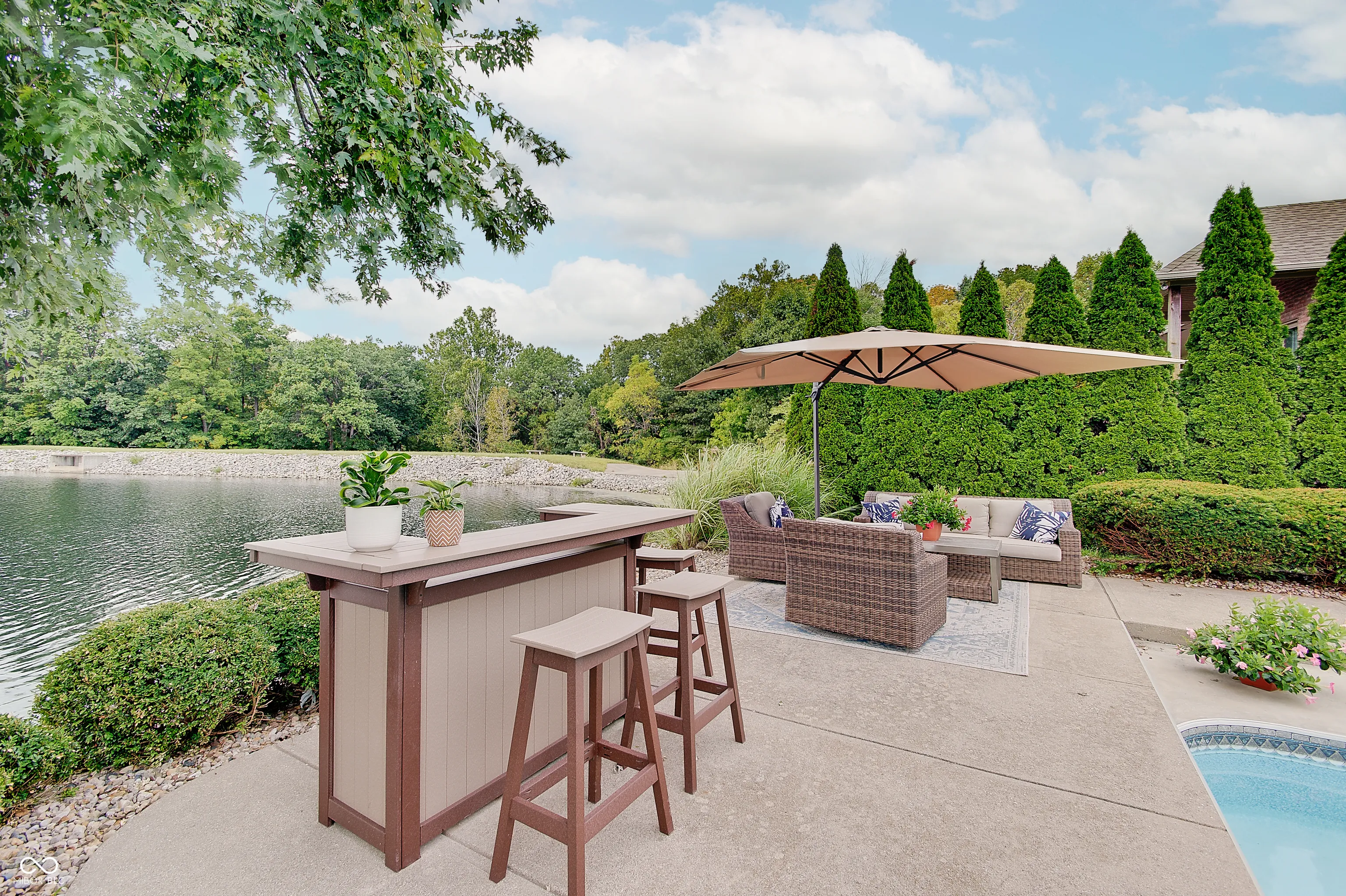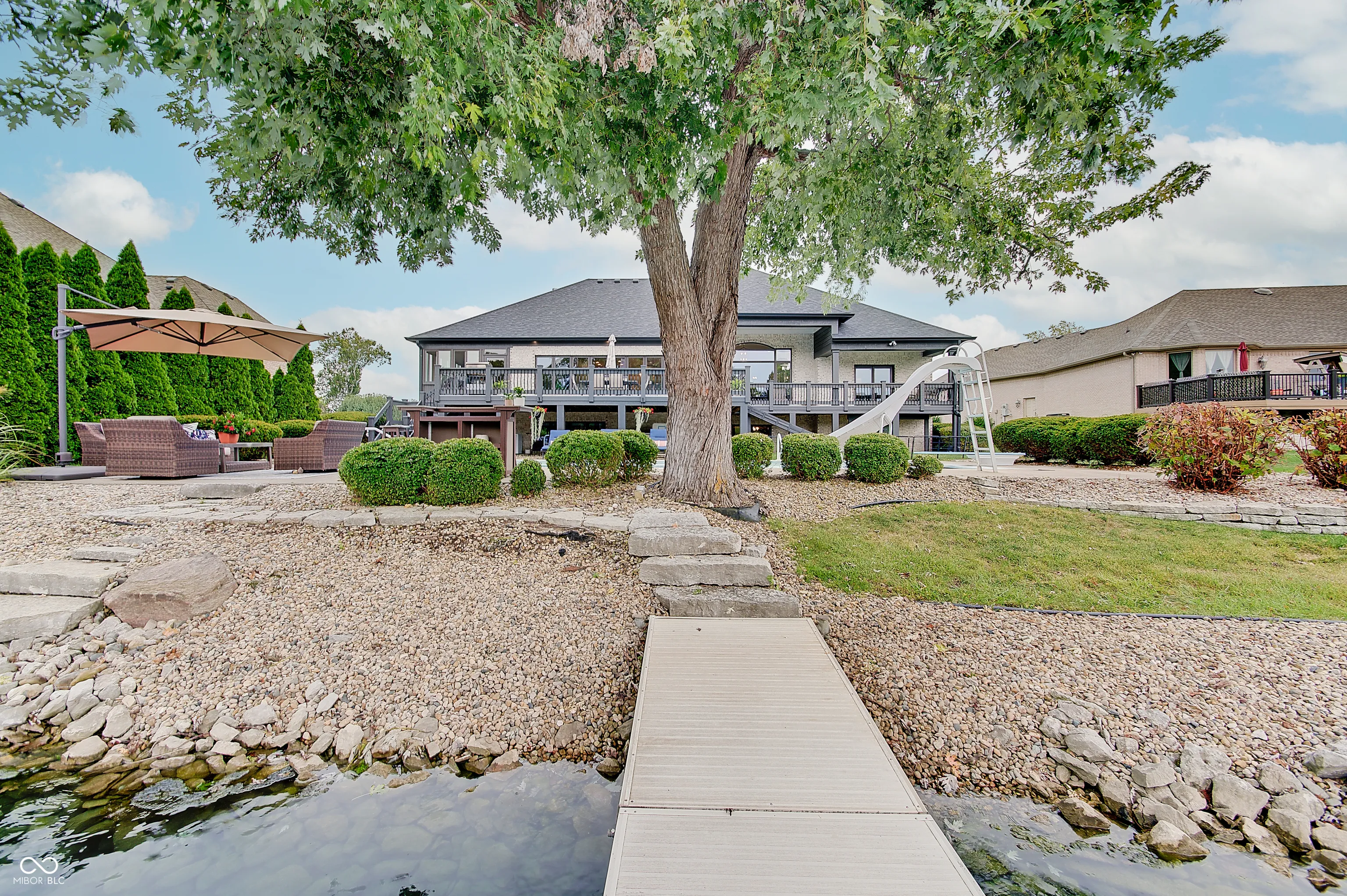 Welcome to this stunning 4 bedroom, 4.5 bath custom brick ranch offering nearly 5,700 sq ft of luxury living with breathtaking lake views and private lake access w/ floating dock. Designed for both comfort and entertaining, this home boasts an impressive circular drive, heated in-ground pool and a spacious deck overlooking the water. Inside, you’ll find two main level bedrooms, Primary and In-law suite, and two addtl bedrooms in the fully finished basement, each w/ it’s own bath for privacy and convenience. Primary has water views w/ french doors leading to deck and en suite with dual walk in closets/vanities and a coffee bar. Elegant details include tray ceilings, formal living room with fireplace and built ins, formal dining room, private office w/ built ins and so much natural light. The expansive lower level is a retreat of it’s own, featuring a home theater, wet bar, exercise room w/ sauna, second laundry closet, bonus room, small office and ample storage throughout. Walls of windows in kitchen/family room & living room frame serene lake views creating a bright and inviting atmosphere. This home combines timeless craftsmanship with modern amenities, offering the perfect balance of luxury, functionality and lakeside living. Some recent Seller improvements include: Roof/gutters/air vents ’23, interior/exterior paint ’23, exterior canned lighting, interior lighting fixtures ’23, insulation ’23, pool cover ’25, pool filter ’21, gas cooktop ’22, Bosch dishwasher ’22, gas water heater ’20, carpet main basement ’23, 1080P HD Projector ’25, 10′ screen ’22, bar fridge ’25, wine fridge ’25.