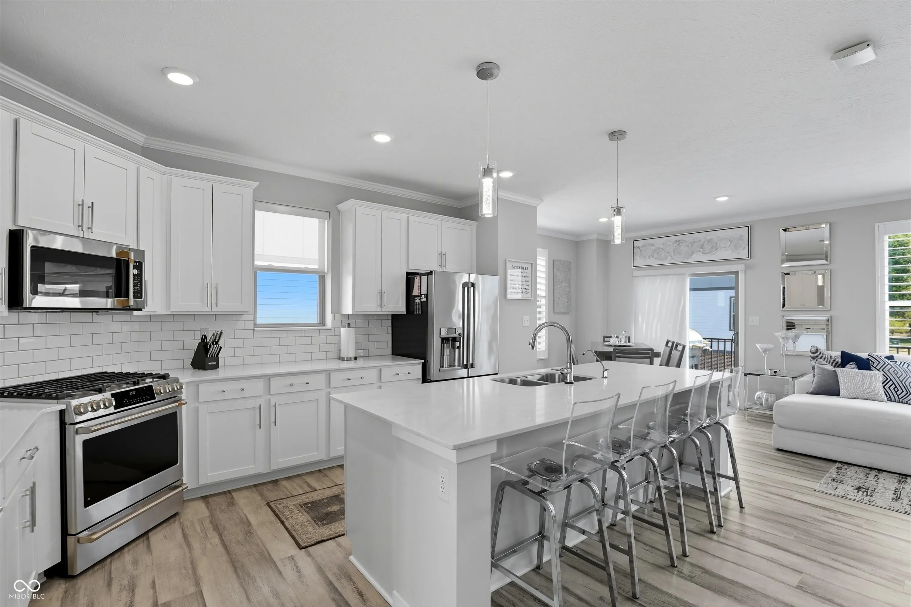 Gorgeous 3BR/2.2BA End-Unit Townhome in Popular SAXONY! Nearly 2,300 sq ft of luxury living with tons of upgrades in this “barely lived in BEAUTY!”-premium lighting, Bali motorized shades, plantation shutters, Delta fixtures, and custom California Closets throughout. The lower level boasts a full bar, half bath, and theater/rec area. The main level features a stunning open-concept design with gourmet kitchen, quartz counters, huge island, and all SS appliances included, plus flex room, family room with gas fireplace, and deck. Upstairs offers 3 bedrooms, a pristine primary suite with spa-like bath & walk-in closet, and laundry with built-ins (front-loaders stay!). Light-filled, pristine, and move-in ready-this one is a must-see!