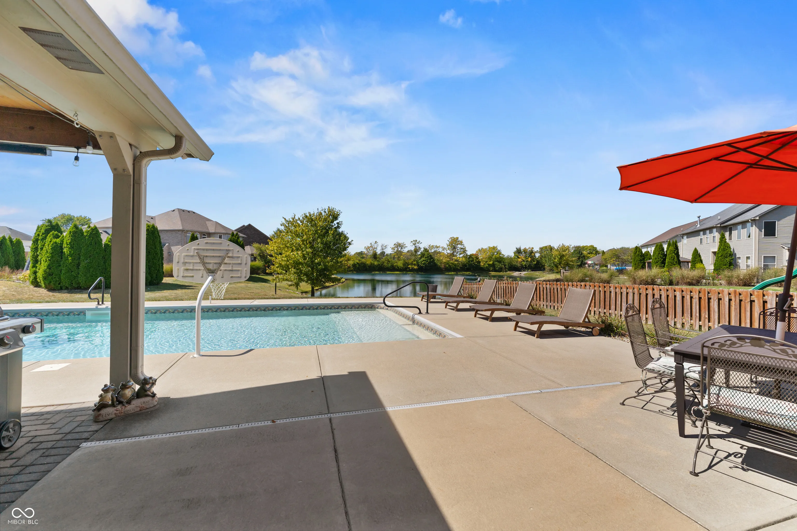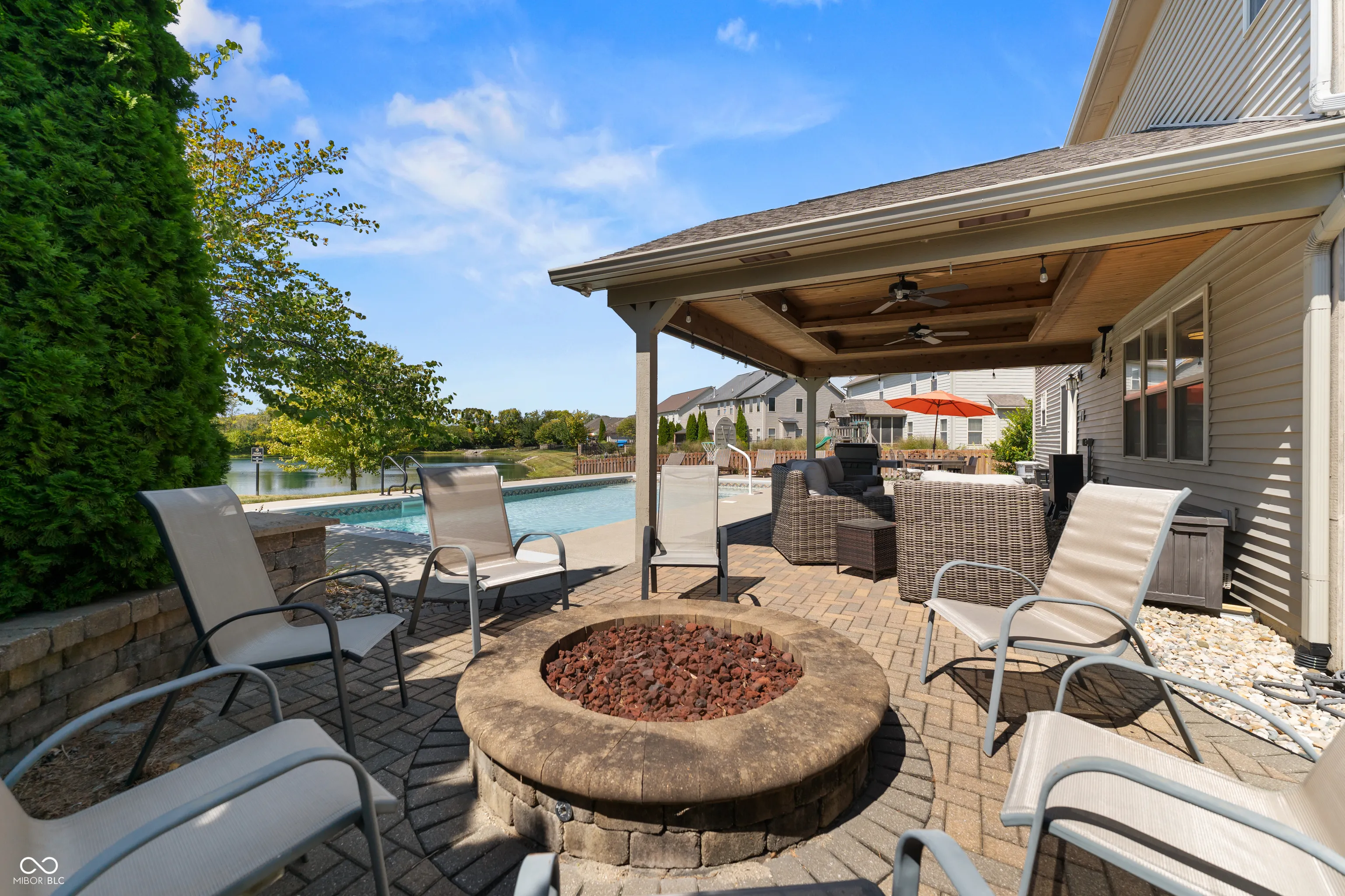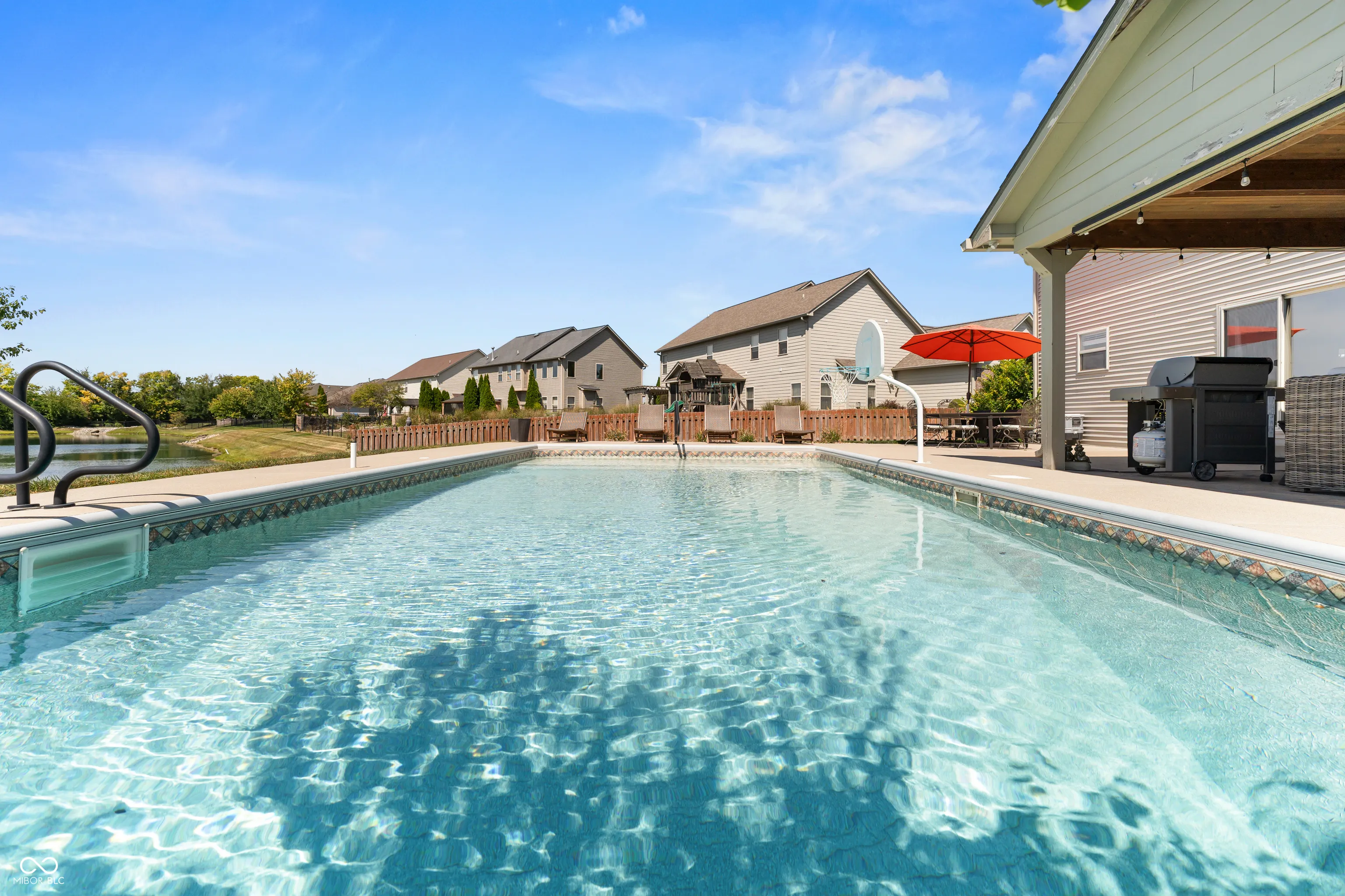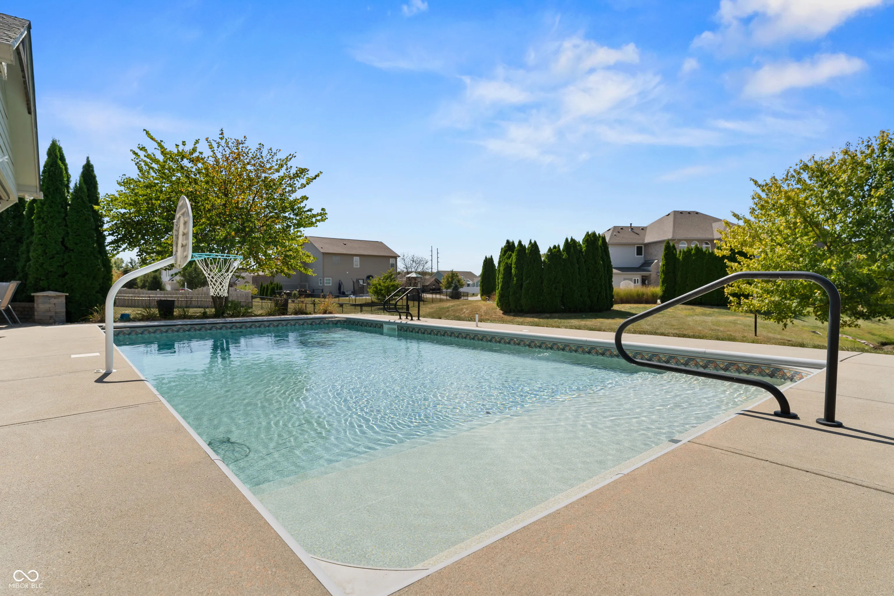 Located at 2086 Woodfield Dr., Greenwood, this single-family residence in great condition offers an exceptional opportunity for refined living. The heart of this home resides in its thoughtfully designed kitchen, where culinary aspirations take center stage; imagine preparing gourmet meals atop the stone countertops, with the backsplash adding a touch of elegance, while guests gather at the kitchen bar or peninsula, creating an inviting atmosphere for conversation and connection. In the living room, a fireplace provides a natural focal point, offering warmth and ambiance, perfect for quiet evenings spent in contemplation or lively gatherings with friends. The primary bathroom is a sanctuary, a private retreat featuring a tiled walk-in shower, where you can rejuvenate and refresh. For entertaining, the bar in the basement offers a dedicated space to craft and enjoy your favorite beverages. Beyond the main residence, the property extends into a private outdoor oasis, where a heated pool shimmers under the sun, inviting refreshing dips on warm days. The patio and outdoor dining area create a seamless extension of the living space, perfect for al fresco meals and entertaining. The outdoor living space offers a spot to relax and unwind, while the fire pit promises cozy evenings spent under the stars. An invisible fence allows for the safety of pets to be contained to the yard. The five bedrooms offer ample space for rest and rejuvenation, with the added luxury of an ensuite bathroom in one of the bedrooms. The home features a new water softener and a new sump pump with battery backup. Further enhancing the home’s appeal is a walk-in closet, providing generous storage. With three full bathrooms and one-half bathroom, convenience is paramount. Located in the highly desirable Center Grove School District.