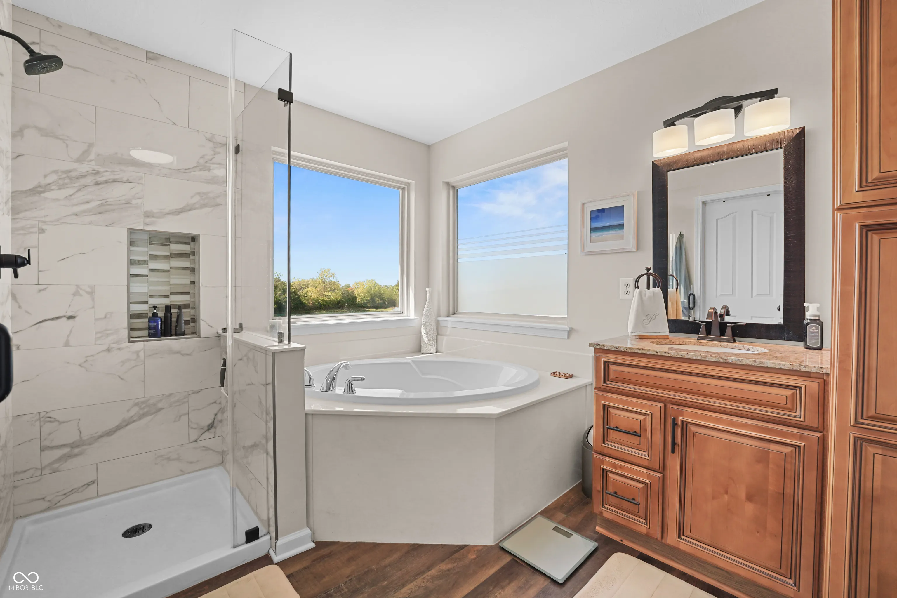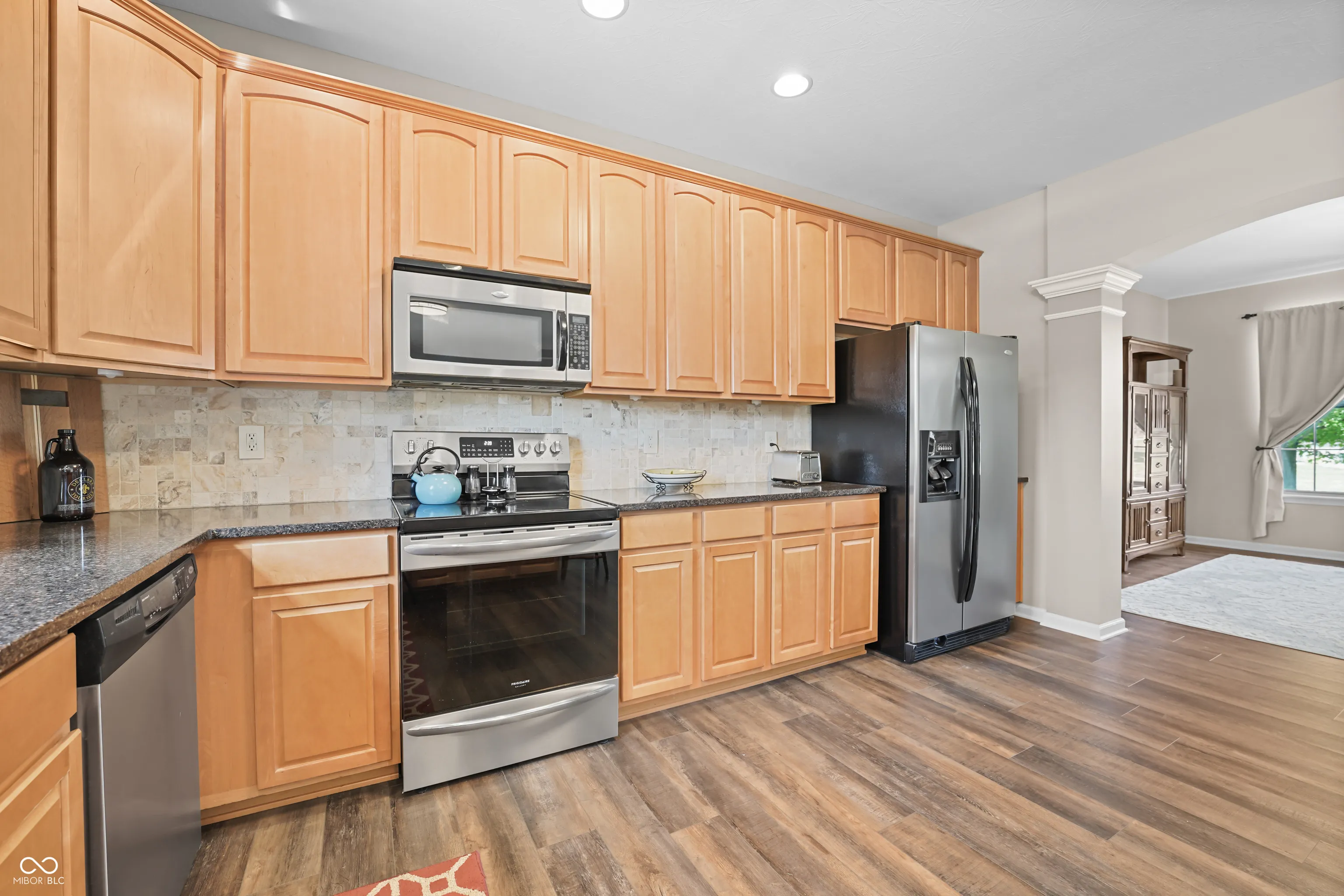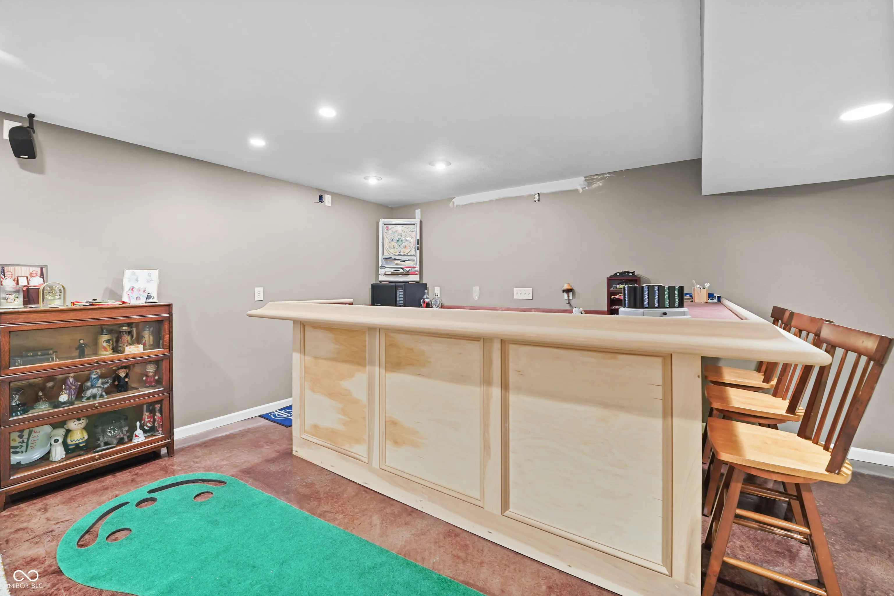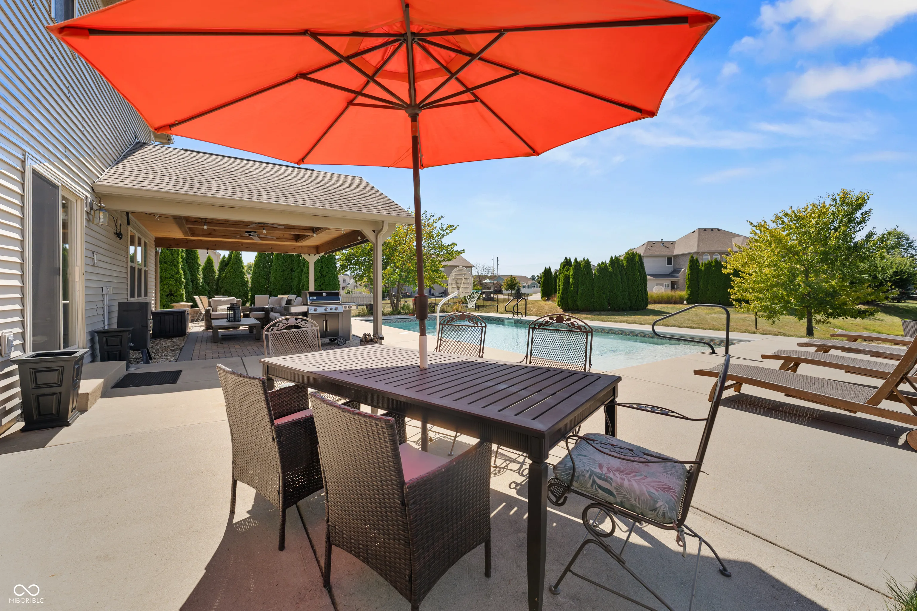Located at 2086 Woodfield Dr., Greenwood, this single-family residence in great condition offers an exceptional opportunity for refined living. The heart of this home resides in its thoughtfully designed kitchen, where culinary aspirations take center stage; imagine preparing gourmet meals atop the stone countertops, with the backsplash adding a touch of elegance, while guests gather at the kitchen bar or peninsula, creating an inviting atmosphere for conversation and connection. In the living room, a fireplace provides a natural focal point, offering warmth and ambiance, perfect for quiet evenings spent in contemplation or lively gatherings with friends. The primary bathroom is a sanctuary, a private retreat featuring a tiled walk-in shower, where you can rejuvenate and refresh. For entertaining, the bar in the basement offers a dedicated space to craft and enjoy your favorite beverages. Beyond the main residence, the property extends into a private outdoor oasis, where a heated pool shimmers under the sun, inviting refreshing dips on warm days. The patio and outdoor dining area create a seamless extension of the living space, perfect for al fresco meals and entertaining. The outdoor living space offers a spot to relax and unwind, while the fire pit promises cozy evenings spent under the stars. An invisible fence allows for the safety of pets to be contained to the yard. The five bedrooms offer ample space for rest and rejuvenation, with the added luxury of an ensuite bathroom in one of the bedrooms. The home features a new water softener and a new sump pump with battery backup. Further enhancing the home’s appeal is a walk-in closet, providing generous storage. With three full bathrooms and one-half bathroom, convenience is paramount. Located in the highly desirable Center Grove School District.