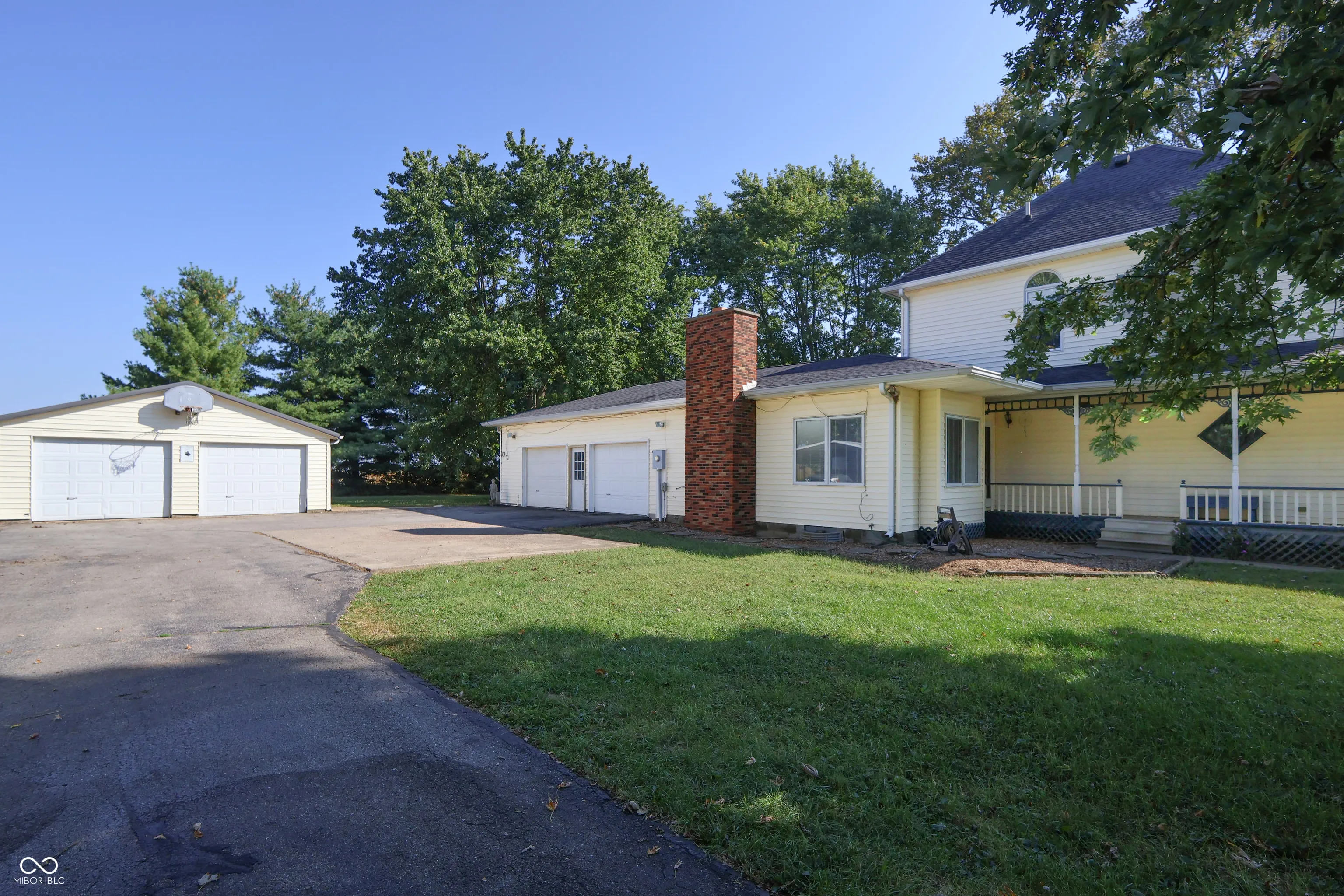 Lovingly maintained farmhouse on 2 acres with multiple outbuildings. Originally built in 1910, this home was taken down to the studs and fully renovated in 1992, with an expansion to its current size. The spacious, fully applianced kitchen includes a casual dining area, complemented by a formal dining room and a formal living room. A large family room with fireplace and ceiling fan offers the perfect space for entertaining or gatherings. The main-level primary suite features a walk-in closet plus an additional closet for ample storage. A beautifully refurbished original oak staircase leads upstairs to three additional bedrooms and a full bath. Relax year-round in the heated sunroom with hot tub or enjoy the inviting wrap-around porch. The oversized attached garage (23×30) includes its own furnace, while the property also offers an additional detached 2-car garage with openers, a carport, plus an extra garage and a storage shed, for storage, hobbies, or workshop space. Geo-thermal HVAC. This home is on well and septic. Hi-speed internet installed at road and available soon. Sold AS-IS