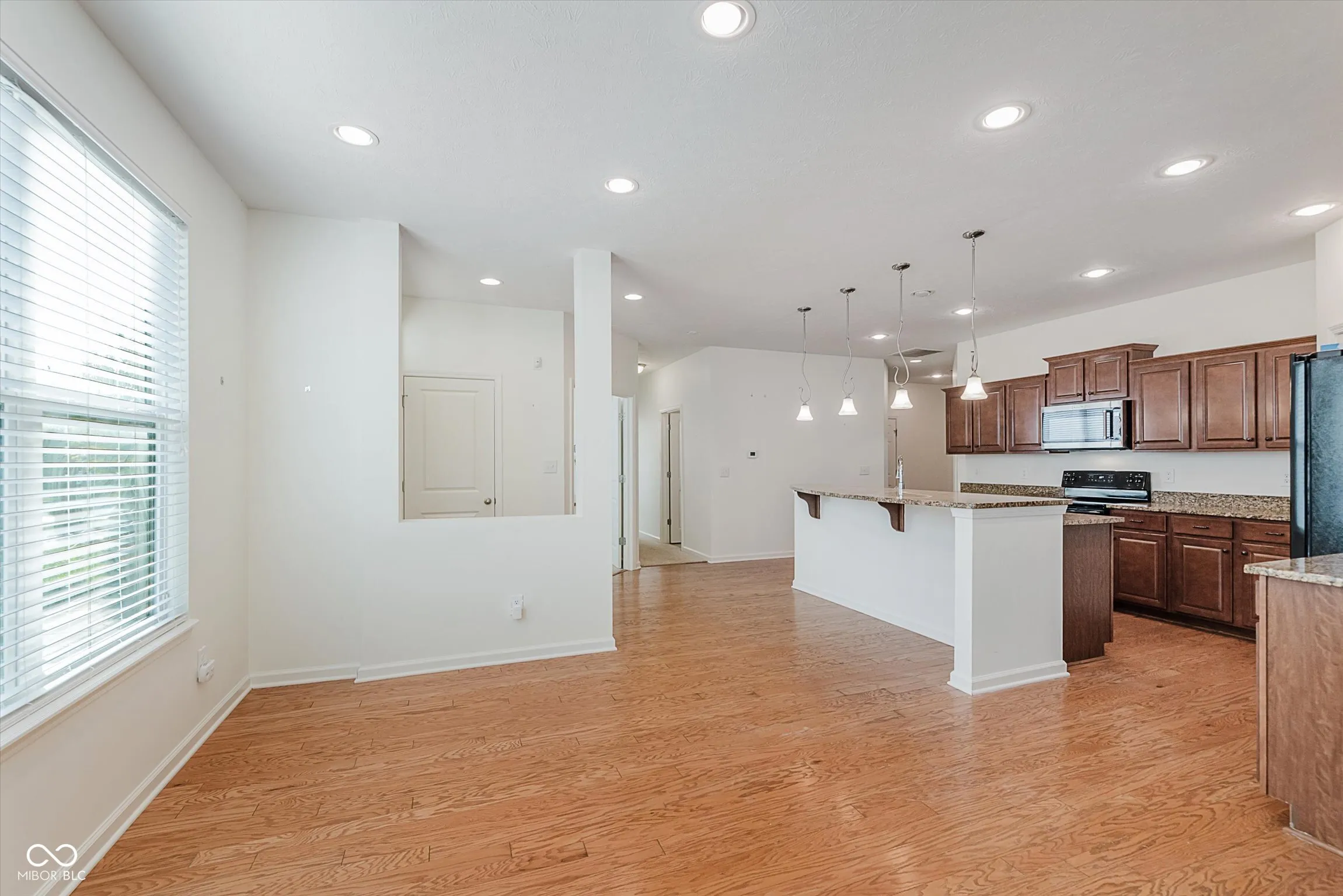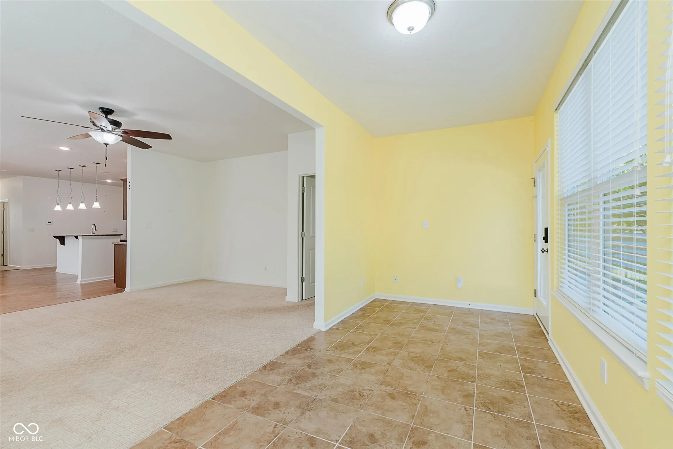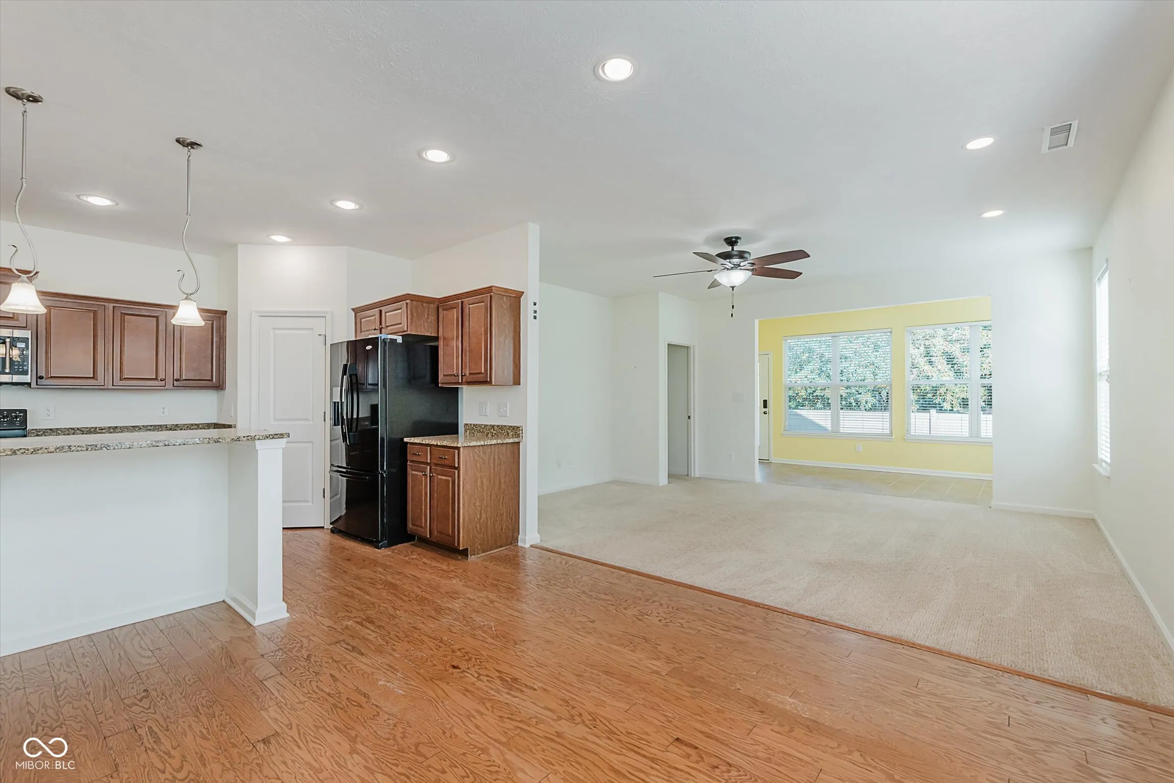 Welcome to this thoughtfully designed ranch-style home in the Highlands at Stony Creek, offering a blend of comfort and convenience. With over 2,000 square feet on one level, this residence provides an inviting layout enhanced by natural light and well-appointed finishes. The updated kitchen serves as the centerpiece, featuring hardwood floors, a center island with sink, breakfast bar, granite countertops, and stylish pendant lighting. An open dining area flows seamlessly to the living room, which includes recessed lighting and a ceiling fan for year-round comfort. A sunroom with tile flooring extends the living space and provides a relaxing spot to enjoy backyard views. The primary suite includes a spacious walk-in closet and a full bath with a double vanity and walk-in shower. A second bedroom, den, and full hall bath add versatility for guests or a home office. Additional highlights include an entrance foyer, hardwood and carpet flooring throughout, and a main-level laundry with utility sink. Fenced backyard with a patio offers space for recreation and gatherings. The community features a clubhouse, pool, tennis courts, sport courts, playground, and walking-friendly sidewalks. A finished two-car, heated garage with storage completes this low-maintenance home. Located within Hamilton Southeastern Schools, this home combines modern updates, practical design, and neighborhood amenities in a convenient Noblesville setting.