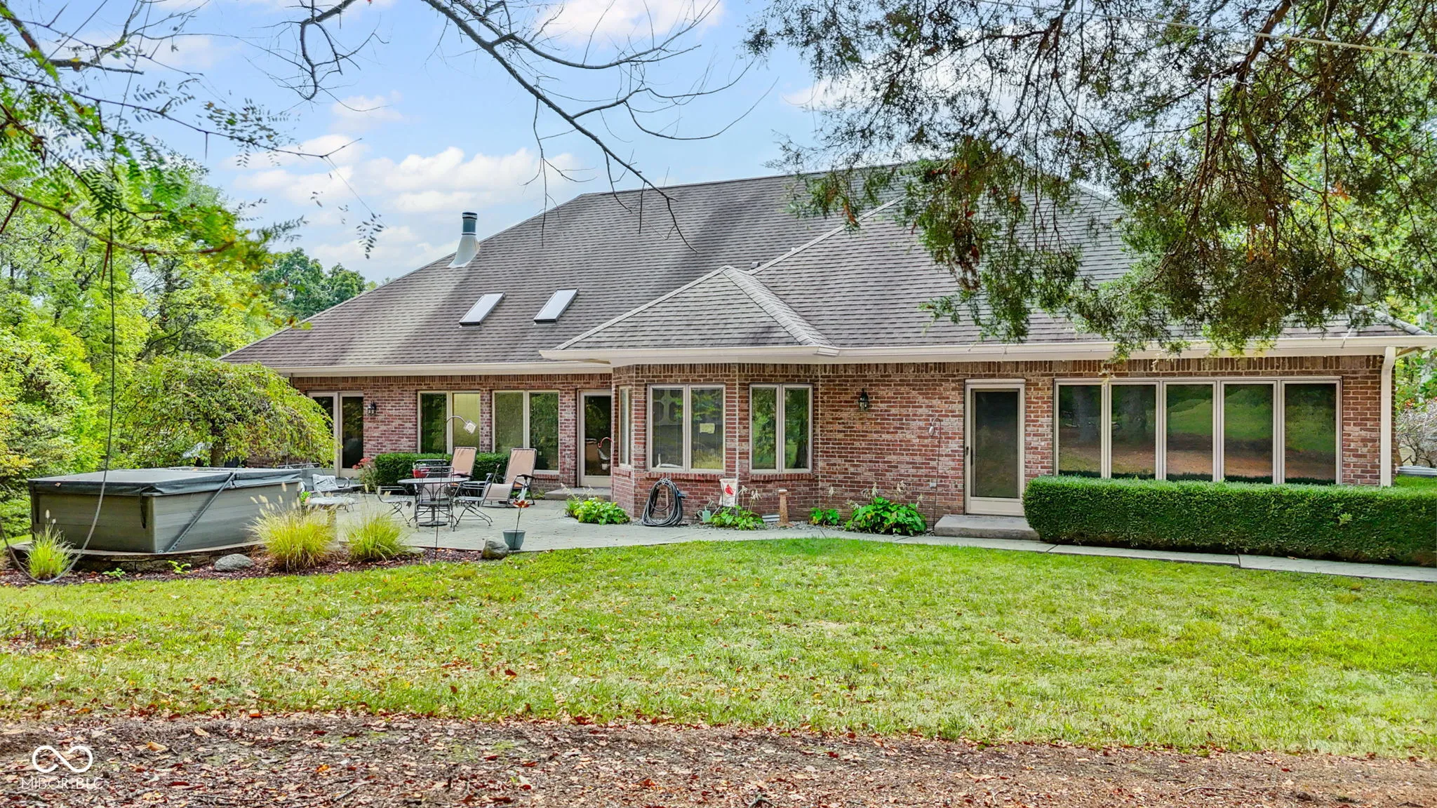 Beautiful Custom all brick ranch nestled in the woods and backing up to 912 Acres of Atterbury Fish & Wildlife land! Private drive leads you to this hidden paradise. Great room is huge with raised ceiling & a gas fireplace flanked by built-in bookshelves. Solid honey oak flooring throughout the home & Pella Windows w/Blt-in blinds give you the custom home feel. Kitchen has tons of cabinets, new over & microwave and tons of counter space. And down miss the 8×5 walk-In Pantry. Primary suite with vaulted ceiling and fireplace. Primary bathroom is large & has jetted tub & large walk-in shower & skylight. Primary walk-in closet has access to the laundry room. Front bedroom would also make great office. The other 2 bedrooms & full bath are on the other side of the house. Sun room has 2 full walls of windows to enjoy the beautiful setting or to observe the wildlife. Exterior has a wonderful, stamped patio with a Royal Spa hot tub (included)and a built-in Grill with a hard-line gas line. Home has a 26×24 attached garage with a 16×6 separate storage area (new garage door 2023) and then a 36×24 Detached garage. The northside of the property butts up to a private pond. Improvements: HVAC 2019 Evolution System, Exterior paint 2023, Wtr. Htr 5yr, Wtr. Softener 7yr, all recessed lights are LED. Enjoy the peace and quiet of nature from your backyard where deer roam on the property as your backyard neighbor is the Atterbury wildlife area. This home has built with no transitions on the flooring and 36″ doors for handicap accessibility as well.