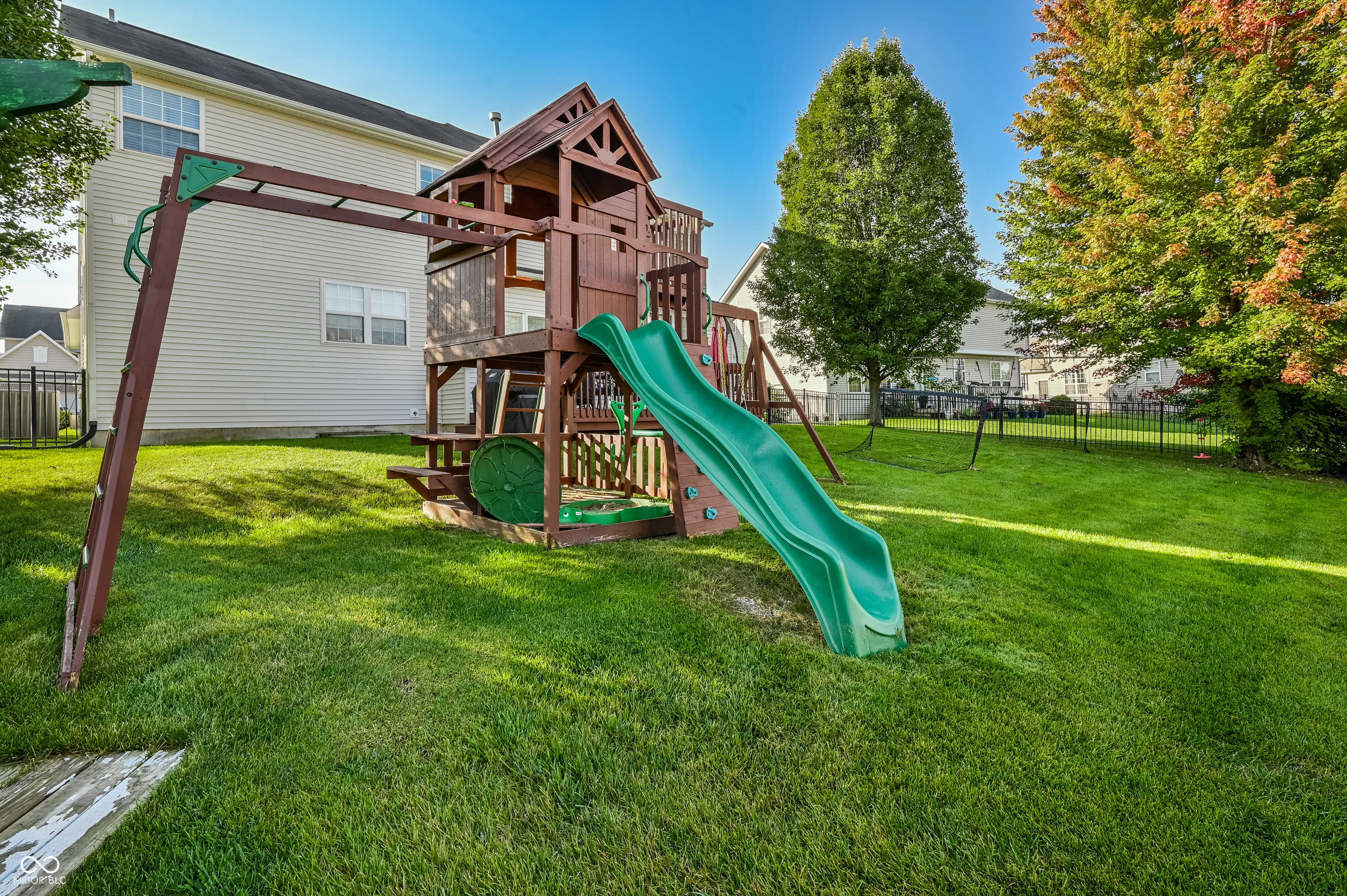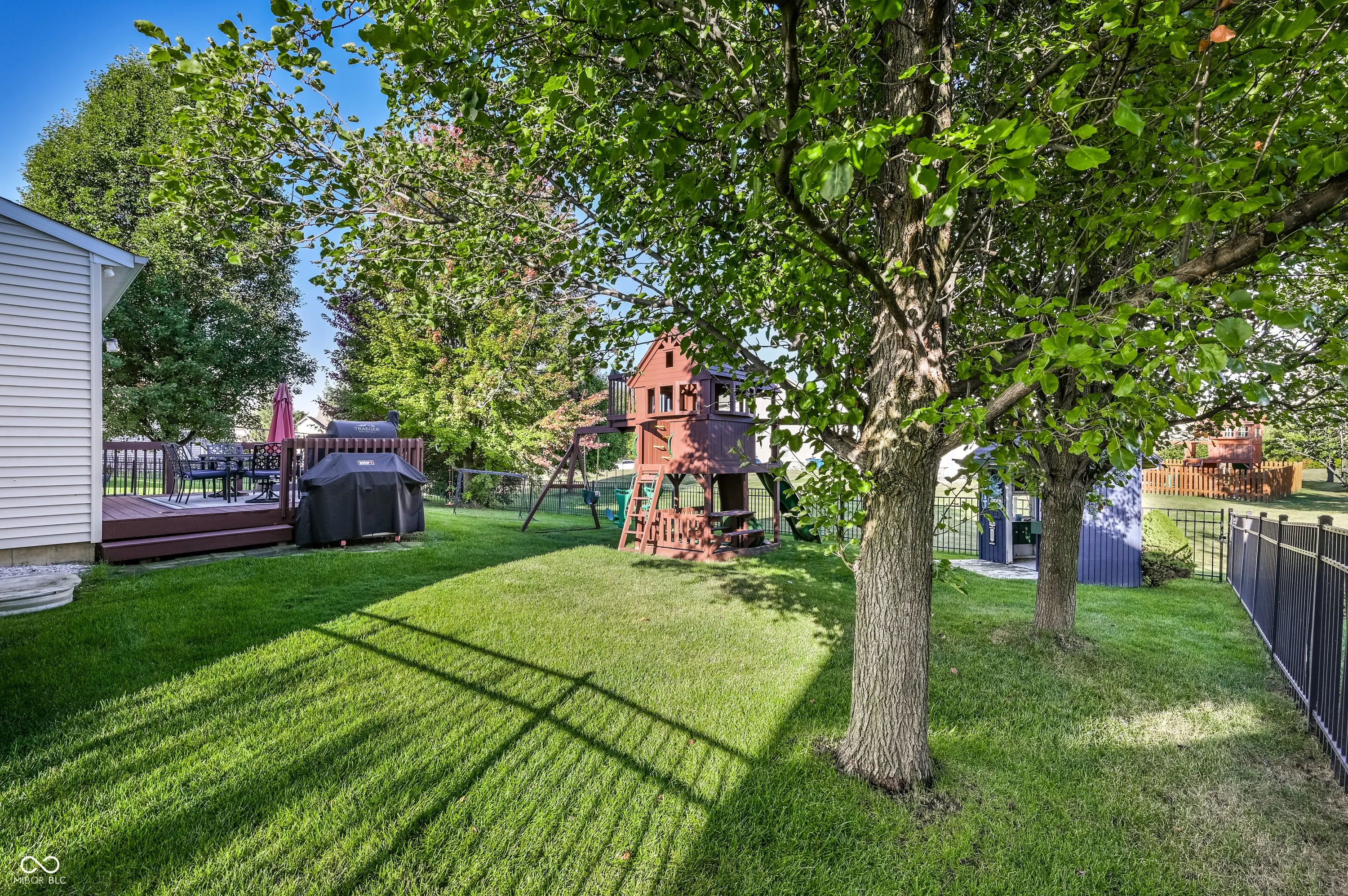 Welcome to this beautifully maintained four-bedroom home in the highly sought after Tanglewood neighborhood. From the inviting covered front porch, step inside to a bright two-story foyer that sets the tone for the rest of this stunning residence. Just off the entry, a private main-level office with double doors provides the perfect space for work or study. The spacious great room features a cozy gas fireplace-ideal for relaxing evenings-and flows effortlessly into the eat-in kitchen. Here you’ll find pristine white cabinets, stainless steel appliances, a center island, and plenty of space for casual dining. For special occasions, enjoy meals in the formal dining room. Throughout the interior, fresh new paint adds a bright, move-in-ready feel. Essential systems have also been updated within the past three years, including a tankless gas water heater, furnace, A/C, and sump pump. The main-level laundry room comes equipped with a washer and dryer. Upstairs, retreat to the expansive primary suite featuring vaulted ceilings and a spacious walk-in closet. The en-suite bath offers a spa-like experience with a relaxing garden tub, double sinks, and a separate shower. Three additional bedrooms and a full guest bath complete the upper level. The finished basement is designed for both fun and functionality, offering a family room with a warm stone fireplace, a recreation/playroom, a bar area, a bonus room currently used as a fifth bedroom, and a full bath-perfect for entertaining or hosting guests. Step outside to your fully fenced backyard, complete with a large deck. The irrigation system keeps the lawn lush and green, and the playset and playhouse add extra enjoyment for families. Located just a short stroll from the neighborhood pool and close to local shops and restaurants, this home perfectly combines comfort, style, and convenience.