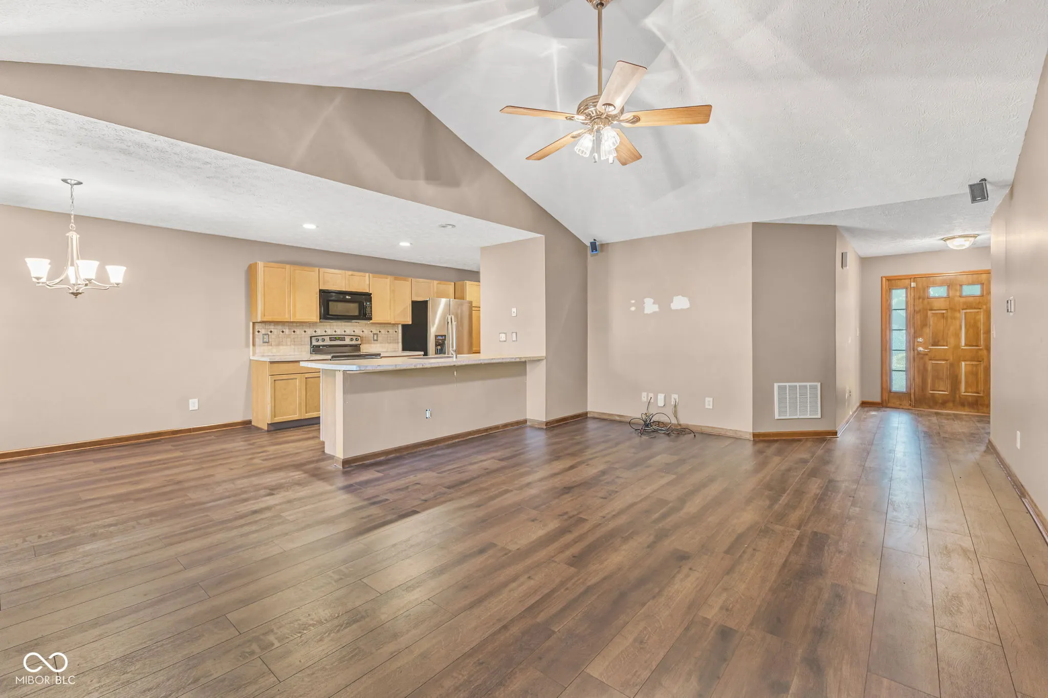 Welcome to this beautifully updated 3-bedroom, 2-bath ranch in the desirable Tracy Ridge neighborhood of Whiteland. Offering 1,418 sq. ft. of living space and a spacious 2-car garage, this home combines comfort, style, and convenience. Step inside to find an open-concept living area with vaulted ceilings, fresh paint, and brand-new flooring that flows through the main spaces. The updated kitchen shines with new stainless steel appliances, plenty of cabinetry, and a breakfast bar that opens into the dining and living areas – perfect for entertaining. The primary suite is a true retreat with a walk-in closet, dual-sink vanity, soaking tub, and separate shower. Two additional bedrooms and a second full bath offer plenty of space for family, guests, or a home office. Outside, enjoy a private backyard with a concrete patio and mature tree for shade – an ideal spot for relaxing or hosting gatherings. The exterior is low-maintenance with attractive landscaping and a newer roof for peace of mind. Located just minutes from Greenwood and Franklin, with easy access to shopping, dining, and entertainment, this move-in ready home offers the perfect blend of modern updates and prime location.