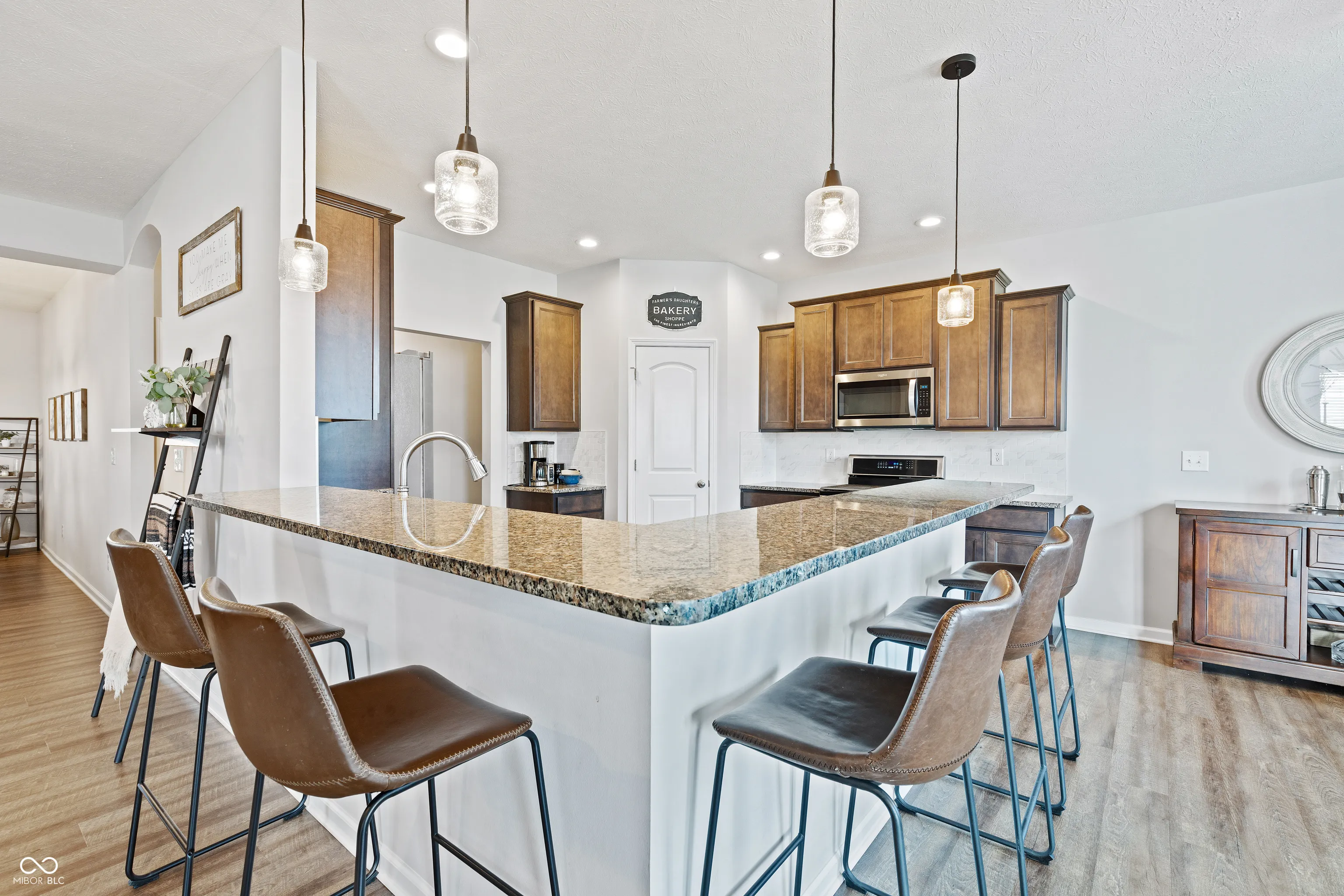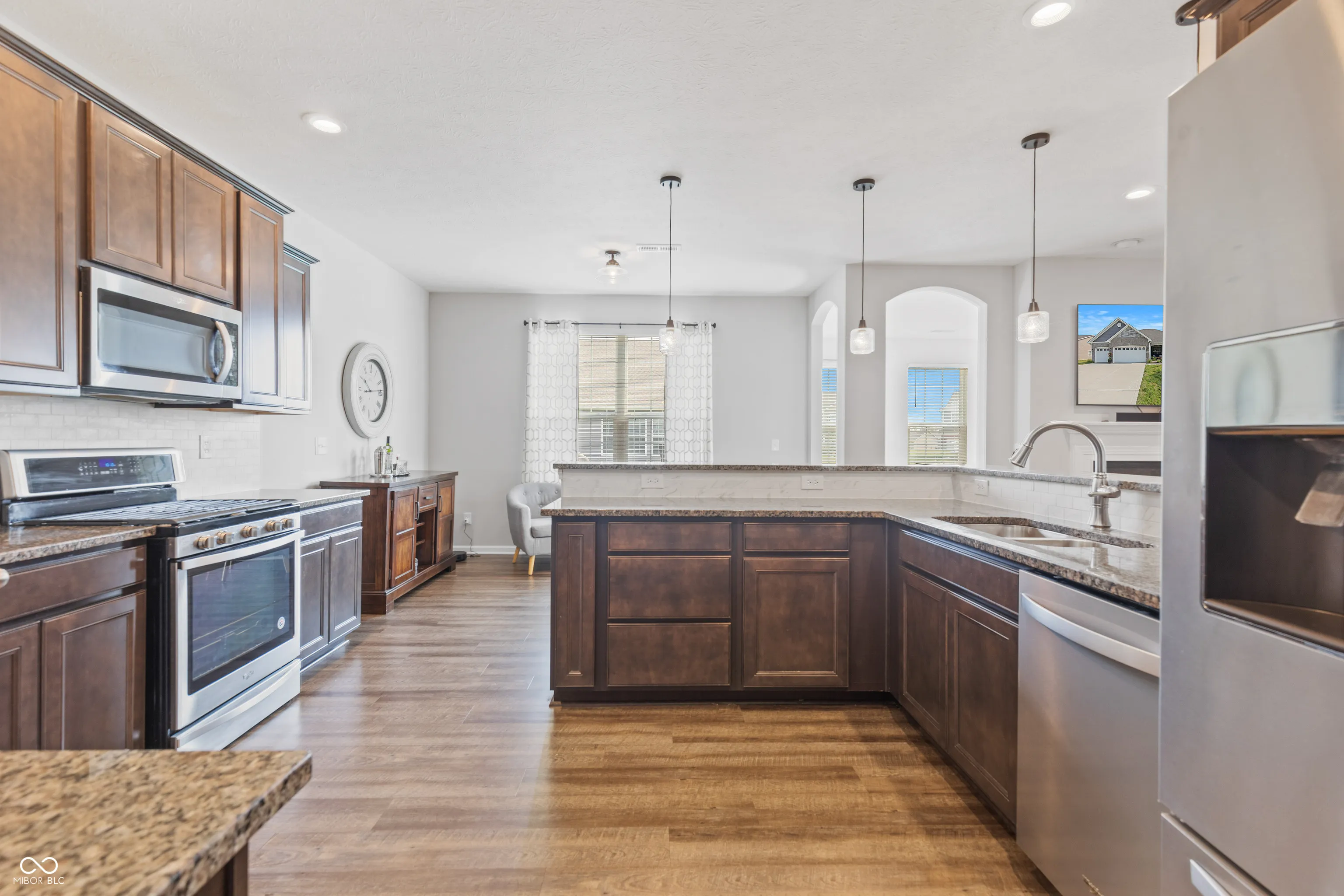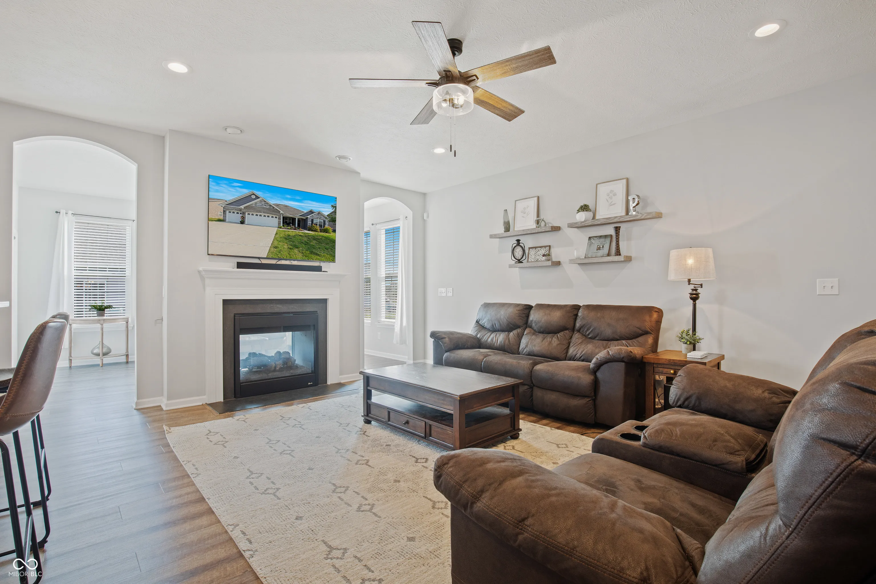 Welcome to this exceptional single-level residence offering over 2,500 square feet of meticulously maintained living space, ideally located on the north side of Avon. This thoughtfully designed home combines timeless elegance with modern conveniences, providing both comfort and functionality. The open and airy floor plan is enhanced by laminate flooring throughout the main living areas, with carpeted bedrooms for added comfort. A striking double-sided gas fireplace serves as a sophisticated centerpiece, seamlessly connecting the spacious great room to the inviting sunroom-perfect for year-round enjoyment. The gourmet kitchen is well-appointed with granite countertops, stainless steel appliances, a generously sized pantry, and abundant cabinetry, making it ideal for everyday living and entertaining alike. A dedicated office/den provides a quiet and private space, ideal for remote work or study. The luxurious primary suite offers a true retreat, featuring a massive walk-in shower, dual sinks, a private water closet, and extensive closet space, all thoughtfully designed to meet the highest expectations of comfort and style. Additional features include: Three-car attached garage providing ample storage and convenience, Split-bedroom floor plan offering privacy and versatility, Quality finishes and custom touches throughout. Situated in a quiet, well-maintained community with easy access to shopping, dining, and major thoroughfares, this home presents a rare opportunity to enjoy single-level living in a premier location. Hurry in before it’s too late!
