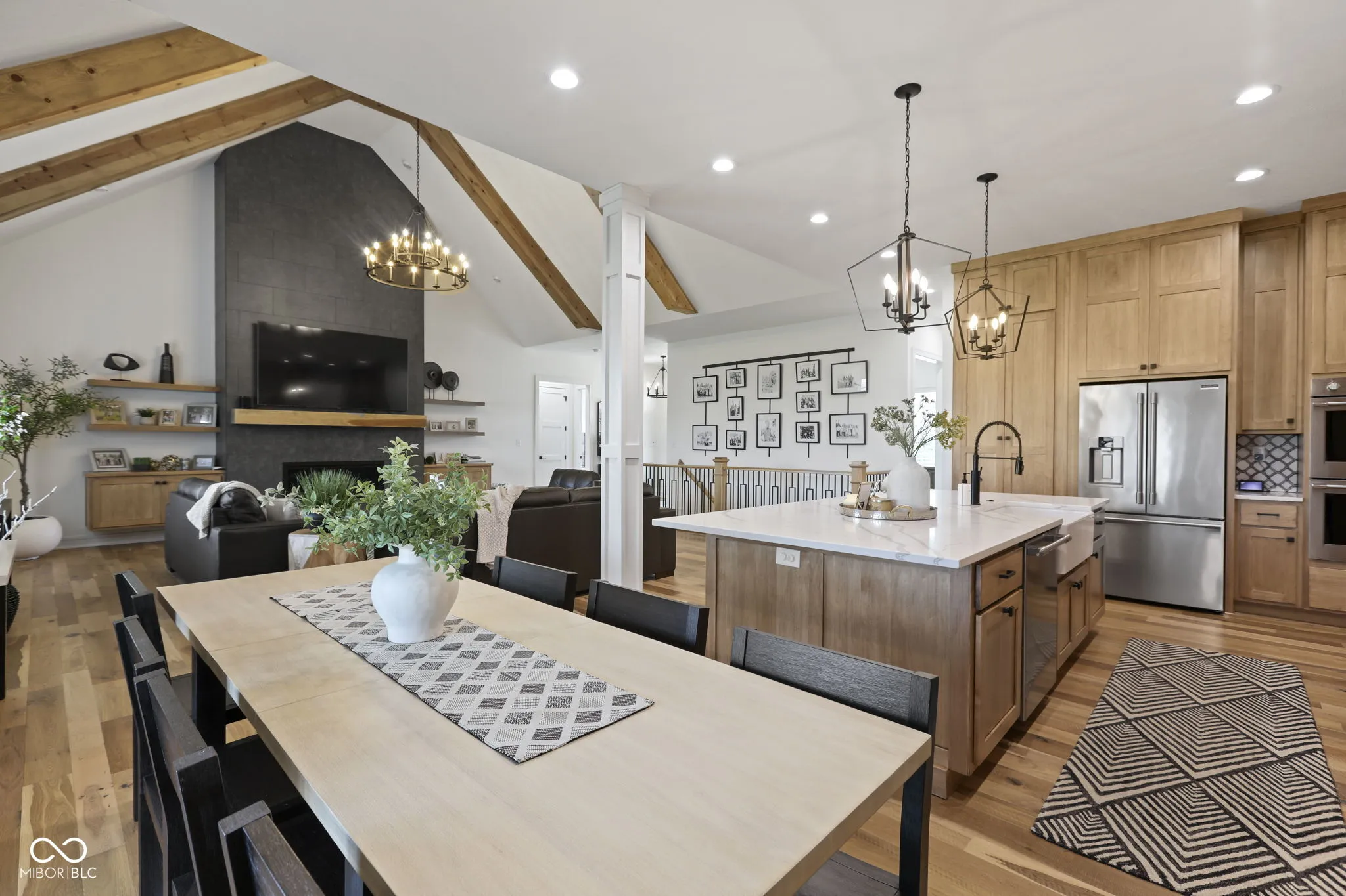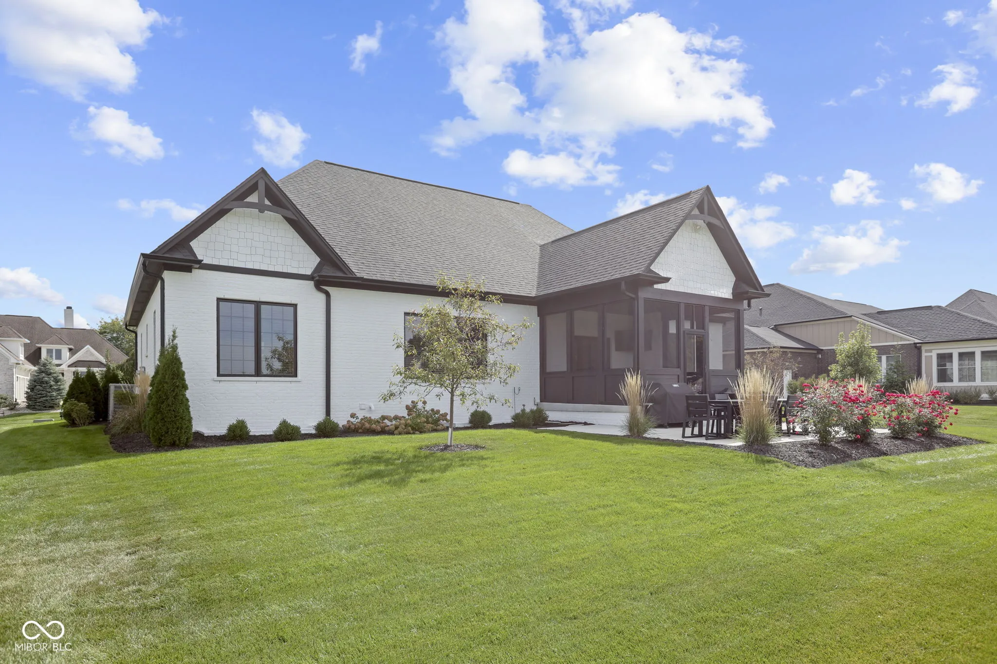 This stunning next to new custom-built ranch on a finished basement in popular Sagamore is a real showstopper! Built in 2023, this home with a brick and stone exterior has 5 bedrooms and 3.5 baths, along with an open layout and split bedroom design. Beautiful french oak hardwood flooring is featured throughout most of the main floor. Custom cabinetry in the kitchen and bathrooms, as well as the cabinets flanking the great room gas fireplace. Kitchen with a large island and farm sink, professional appliances, a wine and beverage cooler and walk-in pantry – don’t miss it behind the custom cabinet door! The great room has a cathedral ceiling and the formal dining room located at the front of the home could also be used as an office/den. Primary suite includes a bathroom with a walk-in shower and freestanding tub. Laundry room with cabinets and a laundry sink. Finished basement with a family room and bar area, bedrooms 4 & 5, a full bathroom and unfinished space for storage. Plenty of great outdoor living opportunities with the screened porch, open patio and beautiful landscaping overlooking Sagamore common area!