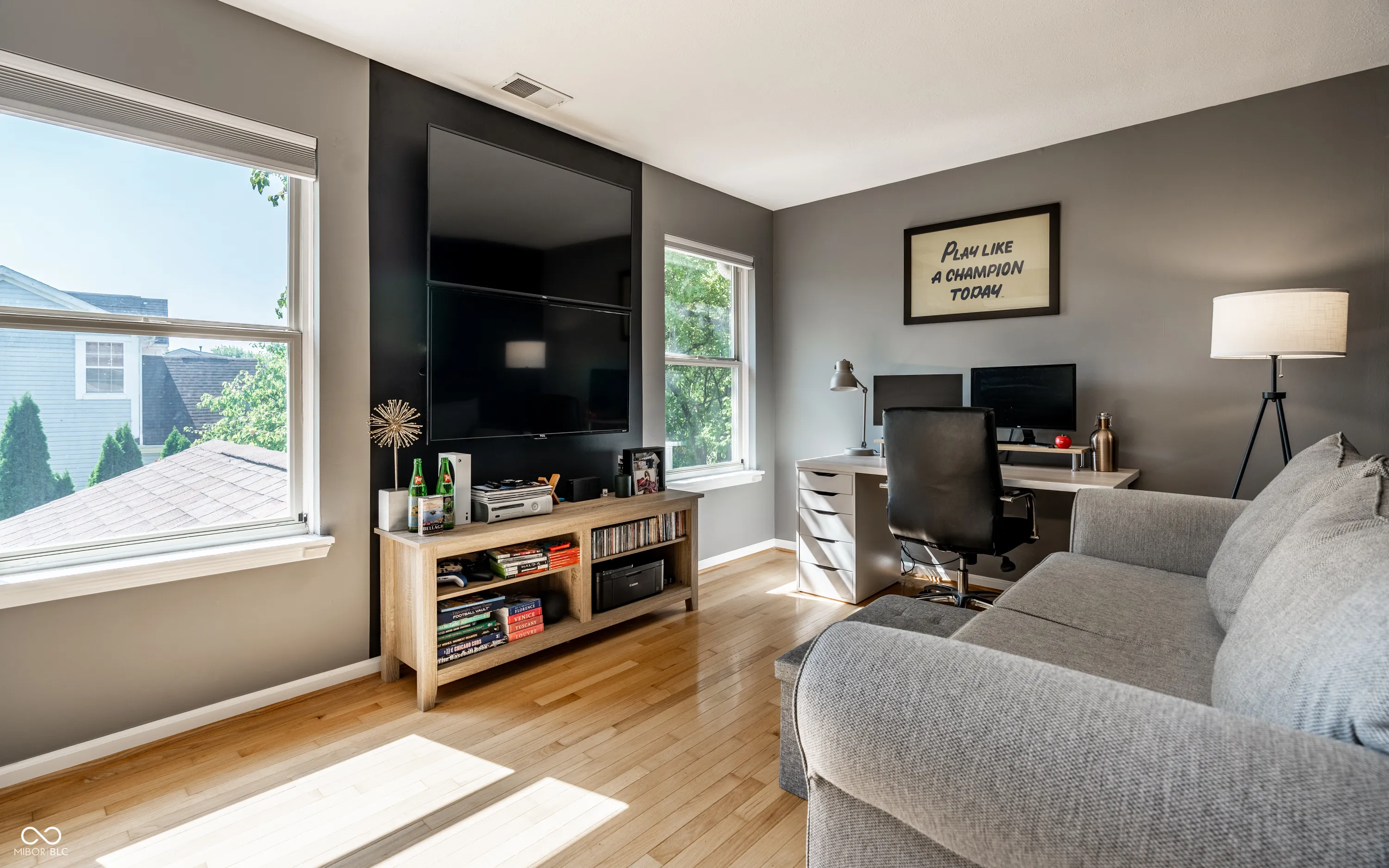 A stunning three bedroom family home, positioned in a sought after and peaceful neighborhood, complete with an array of considered updates. The property extends in excess of 2000sq ft, with gorgeous hardwoods spanning the entirety of the home, ensuring a wonderful and effortless flow throughout. The main level has 9ft ceilings and a beautifully updated kitchen that includes quartz countertops and stainless steel appliances. The living room has vaulted ceilings, whilst the family room boasts a wood burning fire place and access into the fully screened rear porch. Upstairs, the primary suite is equally impressive, with vaulted ceilings in the bedroom and an exquisitely renovated bathroom that includes striking quartz countertops, glass shower and access into the custom closet. The excellently maintained yard is complete with wonderfully mature landscaping and is fully fenced and ready to enjoy. The neighborhood is within walking distance of the beautiful Fort Harrison State Park, which is home to 18 hole golf course, fishing lakes and hiking and biking trails. A terrific home, with high levels of interest anticipated.