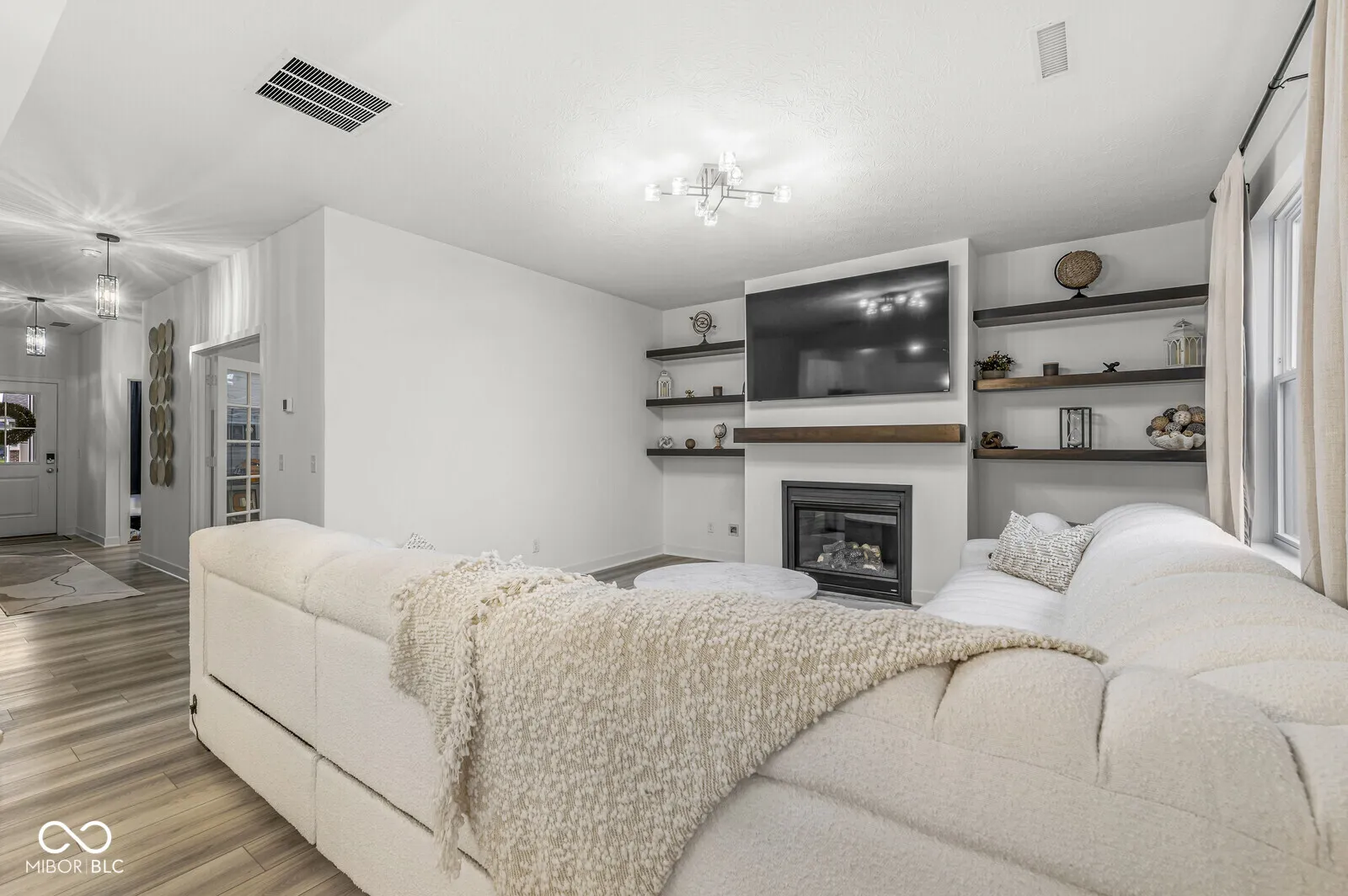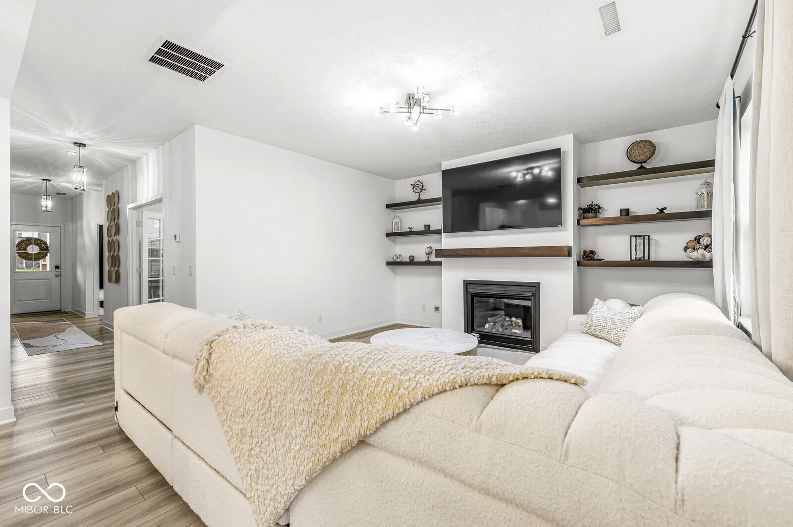 Experience refined living in this nearly new Lennar-built residence, perfectly situated in the highly desirable Cardinal Pointe community of Whitestown. Offering 5 bedrooms, 3 full baths, and over 2,850 square feet, this home combines modern sophistication with everyday comfort. The open-concept main level is designed to impress, showcasing a chef’s kitchen with quartz countertops, stainless steel appliances, a gas range, and a sunlit morning room. The great room is anchored by a cozy gas fireplace with custom built-in shelving, an ideal setting for both relaxed evenings and elegant entertaining. Completing the main level are a private glass-enclosed study, a guest bedroom, and a stylish drop zone with cubbies for effortless organization. Ascending to the upper level, retreat to the luxurious primary suite with its spa-inspired tile shower, accompanied by three additional bedrooms, a versatile loft, and a convenient laundry room. A 3-car garage and manicured landscaping enhance the home’s curb appeal and functionality. Life at Cardinal Pointe is enriched by resort-style amenities, including a sparkling pool, pickleball courts, playground, and a social membership at the Golf Club of Indiana. Spectrum high-speed internet is also included through the HOA, ensuring both connectivity and convenience. With shopping and dining at Anson just minutes away and downtown Indianapolis less than a half-hour drive, this home offers the perfect balance of luxury, lifestyle, and location.