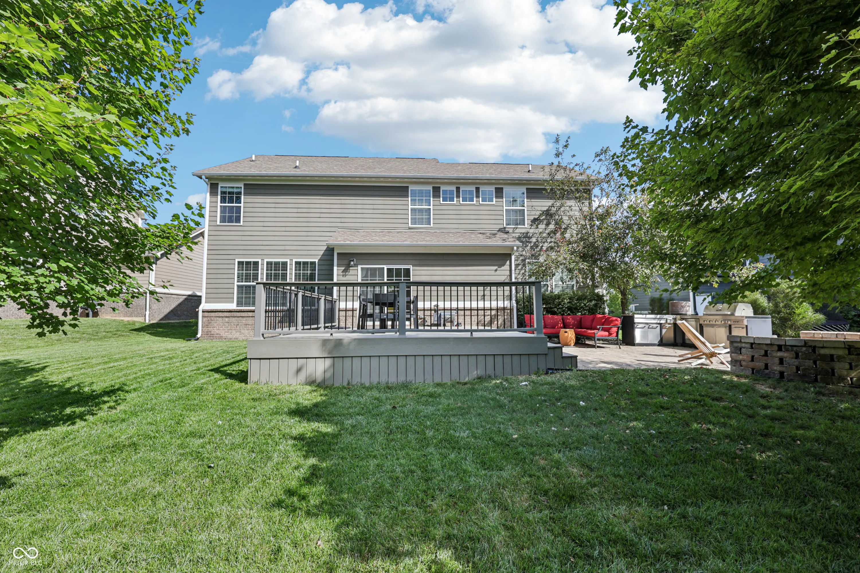 Welcome to this beautiful 5-bedroom home in the sought-after Villages at Bridgewater, where comfort meets convenience. Inside, the main level is thoughtfully designed for all lifestyles- a private home office with French doors, a formal dining room for special gatherings, and a large living room with a fireplace. The gourmet kitchen boasts modern appliances, ample counter space, and a breakfast bar for those casual meals. The sunroom/bonus room is a versatile area which is perfect for your family needs. The boot bench cubby area is great for organization. Upstairs, the spacious primary suite has tray ceilings, a relaxing sitting area, and a private en-suite bath which boasts dual sinks, a garden soaking tub, and a tile shower. Three additional bedrooms and a convenient laundry room complete the upper level. The finished basement expands your living space with a versatile recreation area, a full bath, and a fifth bedroom-perfect for guests or extended family. The backyard is a peaceful retreat with mature trees and privacy. You can relax or entertain with a large deck, patio, outdoor kitchen, and cozy firepit. The social membership to The Bridgewater Club allows you to experience resort-style amenities such as indoor and outdoor pools, fitness center, dining options, tennis and pickleball courts, walking paths, and even a 9-hole golf course. Luxury vinyl plank throughout main and upper levels. New carpet throughout basement and on stairs.