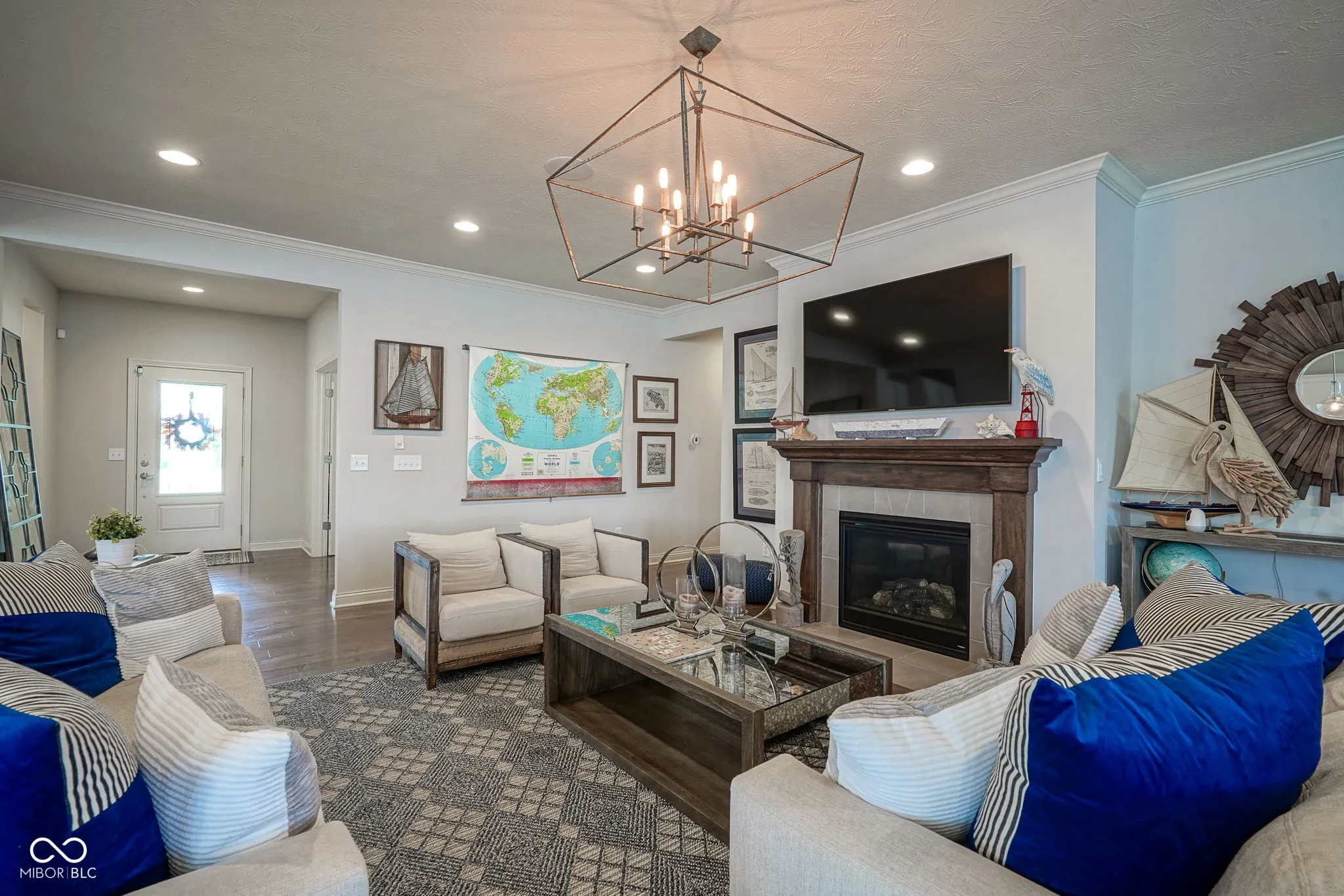 This stunning, like-new former model home offers the ease of one-level living with thoughtful design and exceptional upgrades throughout. Boasting 3 bedrooms, 3 full baths and over 2,700 sq. ft. of living space, this home is designed for both comfort and style. Step inside to find engineered hardwood floors, crown molding in the main areas, and deluxe finishes at every turn. The light-filled sunroom creates the perfect spot to relax while the upgraded gourmet kitchen impresses with stainless steel appliances and granite countertops. The spacious primary suite is a true retreat with a tray ceiling, in-ceiling speakers, a shiplap accent wall and elegant crown molding. Additional highlight include full-yard irrigation, custom blinds throughout and beautifully appointed bathrooms. Located in the award-winning Carmel Clay School District, this home blends convenience, sophistication and modern living in one of the area’s most sought-after communities.