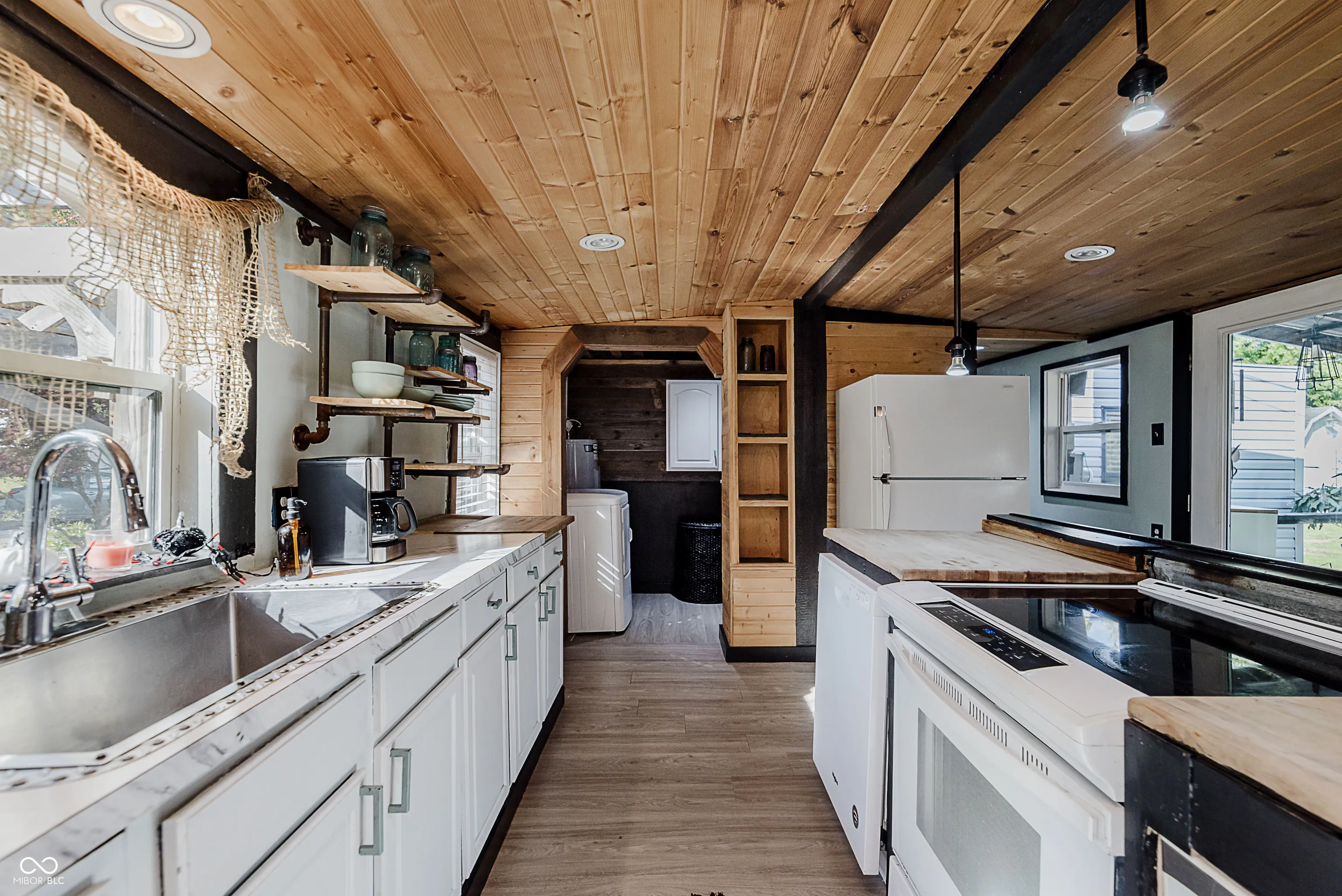 This charming 2 bedroom home offers a spacious open concept kitchen/living room with an inviting wood burning stove to enhance the cozy atmosphere. The woodwork throughout offers warmth and character. Kitchen offers a large island and newer appliances, including a new dishwasher. New waterproof vinyl plank flooring throughout. The large primary bedroom comes complete with a walk in closet. Private fenced in backyard is a gardeners paradise with a variety of fruit and ornamental trees, grasses, flowers and berry bushes. Home has 3 lots! Relax on the covered back porch and enjoy this magical home. New gutters, furnace, central air, water heater, updated electrical and more. Extra large driveway! All appliances included, plus a washer & dryer, 2 sheds, workbench, and the chicken coop stay! Walk to the park and shopping. Pendleton schools