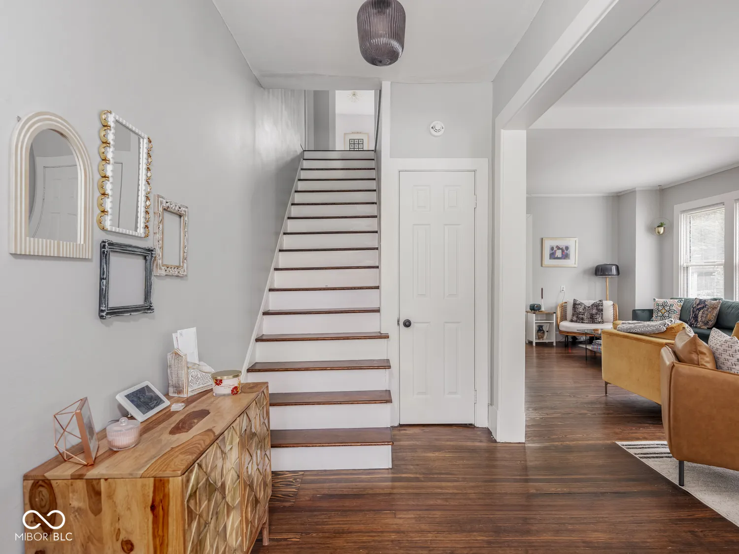 Step into this historic Irvington Arts & Crafts home. Built in 1910, this 4-bedroom, 2-bath residence showcases original hardwood floors, wide wood trim, raised ceilings, and a welcoming foyer that set the tone from the moment you arrive. The unique full cobblestone front porch creates a memorable first impression. The massive front door alone should impress. Inside, you’ll find an updated kitchen and bathrooms, a dedicated laundry room, and a spacious dining room that flows easily into the large great room with fireplace. The upstairs layout offers flexibility with four bedrooms plus a bonus room that could serve as a home office, workout area, or playroom. The primary bedroom includes a walk-in closet, a rare feature for homes of this era. The home sits on a generous lot with a huge backyard-perfect for entertaining, gardening, or simply enjoying the mature trees. All of this in a prime location that’s just a short stroll to Irvington’s parks, shops, and restaurants. Find yourself nestled among some of Indianapolis’ most beautiful historic neighborhoods. A true blend of history and livability, this home is ready for its next chapter.