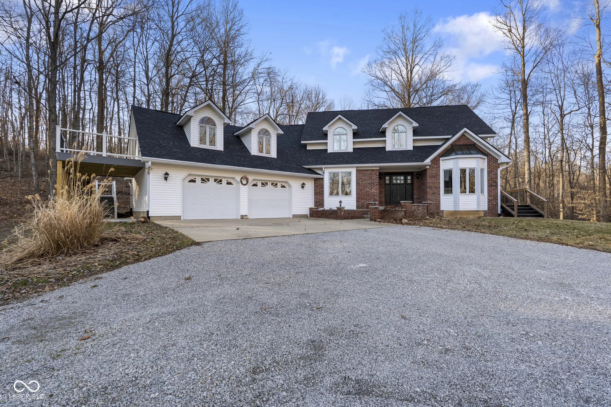 Beautifully Remodeled 2-Story on 9.42 Acres in Trafalgar Schools! Enjoy peace and privacy in this stunning 3-bedroom, 2.5-bath home nestled on a park-like 9.42-acre setting across two parcels-complete with woods, trails, and a creek! The spacious floor plan includes a large living room with gas fireplace, dining area, and an updated kitchen featuring granite countertops and stainless-steel appliances. The main level also offers an office, while upstairs you’ll find a versatile bonus room over the garage with separate entrance, new deck and stairs. The partially finished walk-out basement has a large Rec/Play Rm. Relax outdoors with a covered patio, updated deck, stone patio off the basement, and cozy firepit area-all surrounded by beautiful mature trees. Additional highlights include a freshly painted interior, updated baths, new carpet, city water and laundry hookups for gas or electric. Mechanical updates, newer sump pump (2024), and septic pumped and inspected (2025). A huge pole barn with built-in car lift, circular driveway, and utility barn complete this incredible property. This private retreat offers the perfect blend of modern updates, functionality, and scenic beauty – truly a must-see!