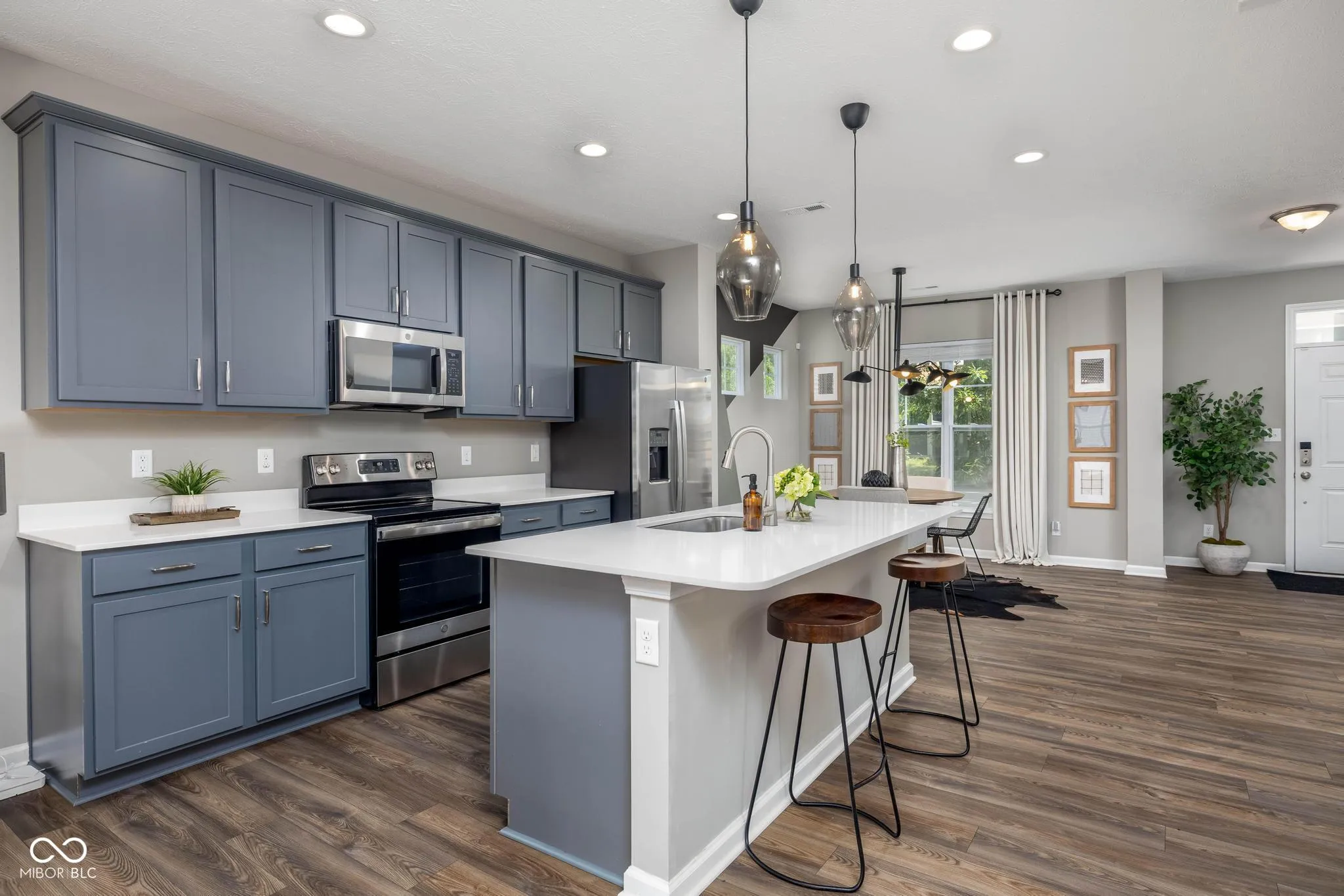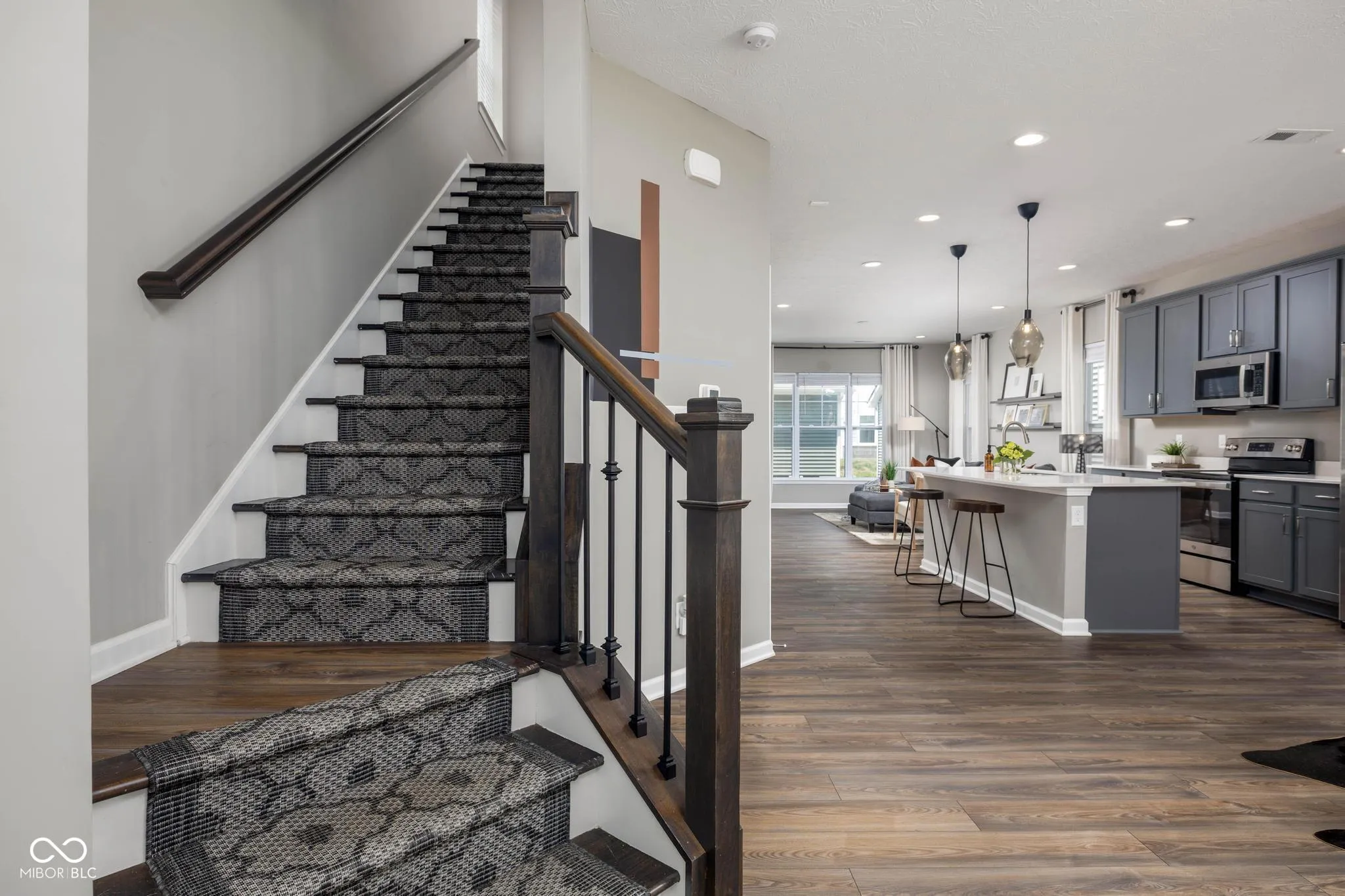 Welcome to this stunning newly constructed home, built in 2022, located in the vibrant community of Bolton Square at Central State in Indianapolis. This beautiful 3 bedroom, 2.5 bath home offers modern living with an open-concept main floor, perfect for both relaxing and entertaining. Step inside to luxury vinyl plank flooring that flows seamlessly throughout the main level. The spacious kitchen features stylish cabinetry, a large island with seating, stainless steel appliances, and gorgeous lighting that highlights the abundant natural light. The kitchen opens to the dining area and living room, creating an inviting space for gatherings. A convenient half bath and laundry area complete the main floor. Upstairs, the primary suite is a true retreat with a generous walk-in closet and an elegant ensuite bathroom featuring dual sinks and a tiled shower. Two additional bedrooms and a full hall bathroom provide comfortable accommodations for family or guests. Enjoy outdoor living on the back patio, offering plenty of room for entertaining or simply relaxing. A two-car garage provides secure parking and additional storage. Located close to shopping, dining, university, hospital, and entertainment options, this home combines style, comfort, and convenience. Don’t miss the opportunity to make this must-see home yours!