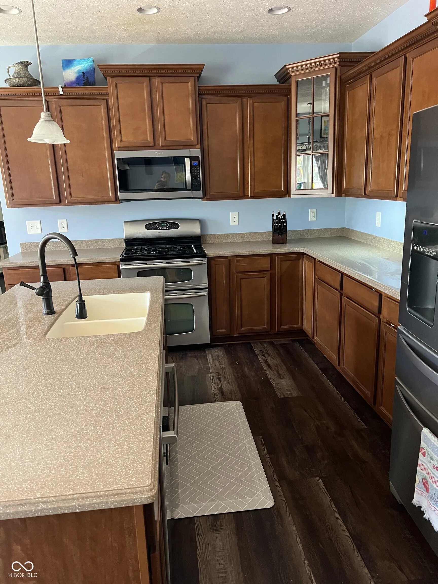 Welcome to this stunning Estridge home, offering over 3,500 sq. ft. of beautifully designed living space, including a spacious finished lower level with 9′ ceilings and a full bath rough-in. Perfect for entertaining and everyday living, the main level features durable vinyl flooring, a large kitchen island, breakfast bar with sink, and stylish pendant lighting. The open-concept design flows effortlessly into a family foyer complete with built-in bench, cubbies, and a convenient PDA station. Step outside into your private Backyard Oasis, showcasing a large in-ground pool with diving board, an expansive sun deck, and a custom outdoor kitchen under a charming pergola and privacy with vinyl fencing- ideal for summer gatherings and relaxation. Unwind in the luxurious master bath featuring a corner garden tub, oversized walk-in shower, double bowl vanity, and a spacious walk-in closet. Enjoy peaceful evenings on the covered front porch with a classic porch swing. Additional highlights include a 3-car garage with openers and thoughtful details throughout. This is more than a home – it’s a lifestyle.