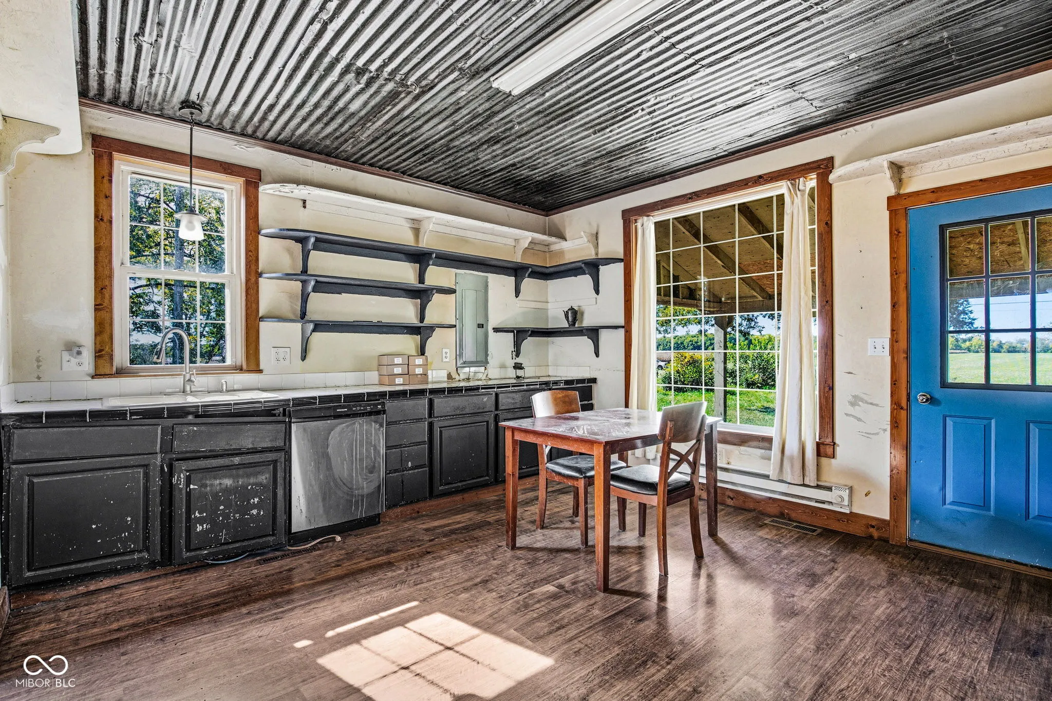 Bring your vision and imagination to this unique rural property set on 3.73 acres of peaceful countryside, surrounded by beautiful open farmland and endless possibilities. The home itself offers great bones, exposed wood beams, and charming original woodwork that could be the foundation for something special. This home has a Morristown address but is in Eastern Hancock School District. Inside, you’ll find 1 bedroom, 1.5 bathrooms, and a loft area that could easily serve as an additional bedroom, home office, or cozy retreat. A flex space off the living room provides even more options for customization. If you’ve been searching for a project with character, really nice acreage, and privacy, this is your opportunity to bring new life to a solid structure in a beautiful rural setting. Whether you envision a farmhouse restoration, weekend getaway, or small hobby farm – this property offers the space and serenity to make it happen. Garage was converted to storage space… Could be converted back to garage. Home has propane hookup.. Tank was located 30 feet North/Rear of home, but was removed when converted to electric heat. Water Heather and Softener are in cellar.