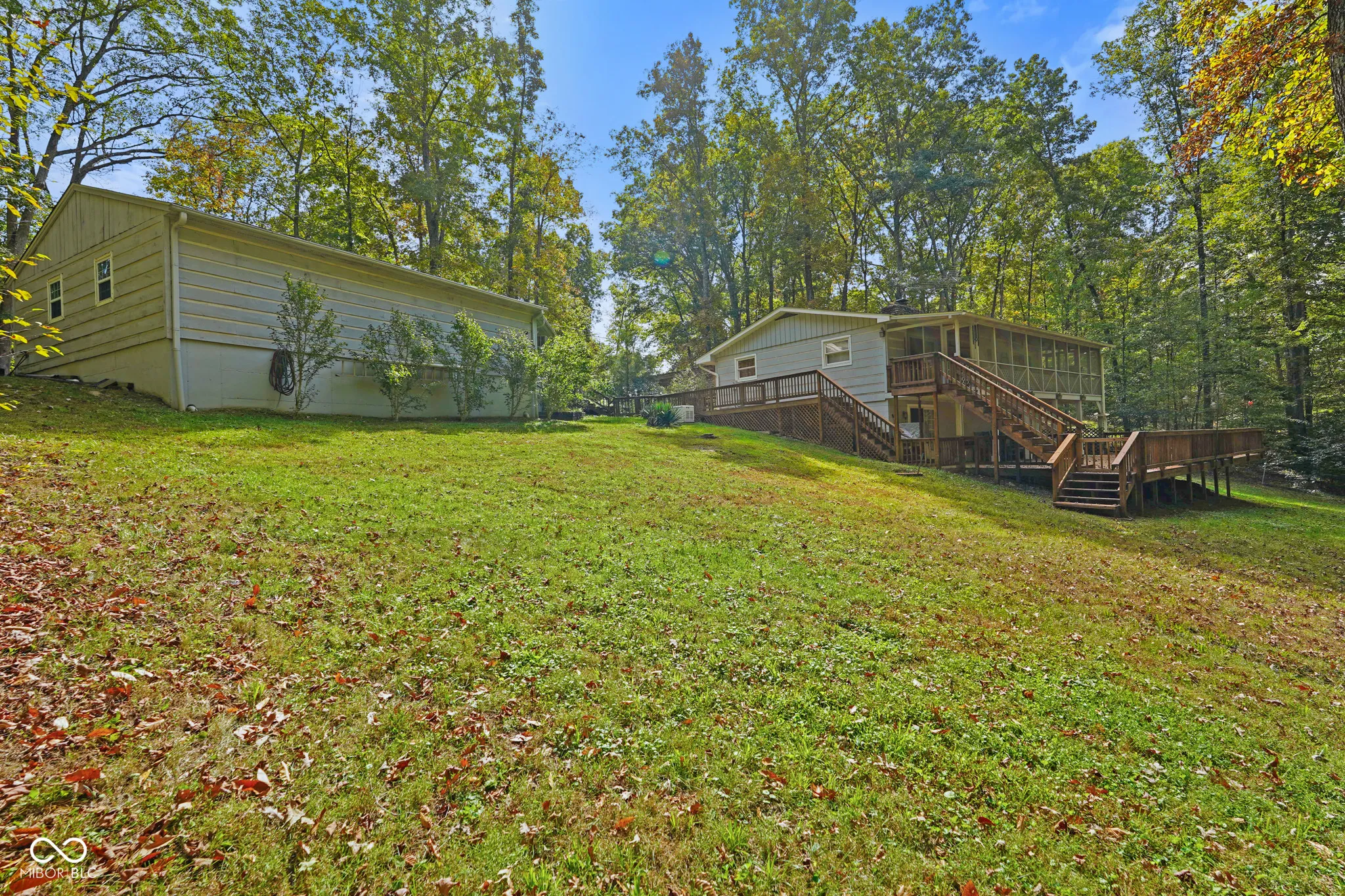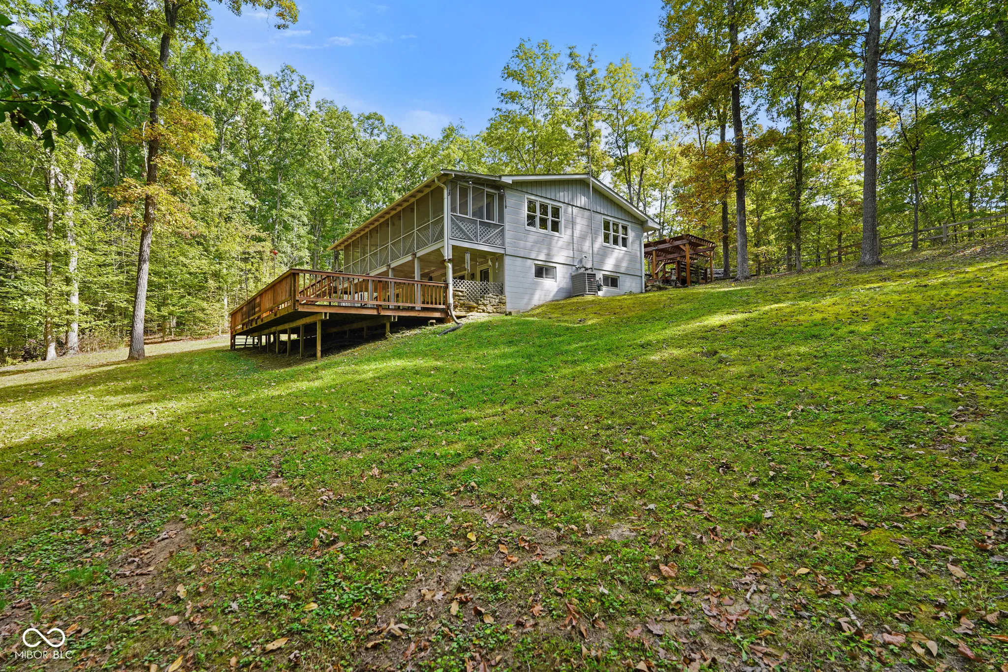 This beautifully maintained three-bedroom, two-bath home in the peaceful Fair Oaks subdivision, just across from Salt Creek Golf Course and minutes from Brown County State Park and downtown Nashville. Set on a wooded lot surrounded by mature trees, this property offers the perfect combination of comfort, privacy, and convenience in one of Brown County’s most desirable settings. Inside, natural light from brand-new skylights fills the open living spaces, highlighting the warmth of a cozy wood-burning fireplace at the heart of the home. A newly installed roof provides lasting peace of mind, while the open layout connects the kitchen, dining, and living areas seamlessly for comfortable living and entertaining. Large windows frame the wooded views outside, creating a tranquil connection with nature year-round. The finished basement adds valuable flexibility, featuring a spacious studio or second living area ideal for a creative workspace, media room, or home gym. Outdoors, expansive decks and a peaceful koi pond and water feature, create a private oasis for relaxing or hosting guests. Beautiful garden spaces provide room for flowers, herbs, or vegetables and blend perfectly with the surrounding trees and natural landscape. A heated four-car garage offers exceptional space for vehicles, tools, or hobbies, while a whole-house generator ensures comfort and security through every season. Snow removal for subdivision access roads makes winter living easy and carefree. This home’s location offers the best of Brown County living-peaceful and scenic yet close to recreation, shopping, and entertainment. Enjoy golf across the road at Salt Creek, explore nearby trails at Brown County State Park, or visit Nashville’s art galleries and restaurants just minutes away. With its new roof, new skylights, wood-burning fireplace, finished basement studio, koi pond, whole-house generator, and heated four-car garage, this Fair Oaks retreat blends rustic warmth with modern comfort.