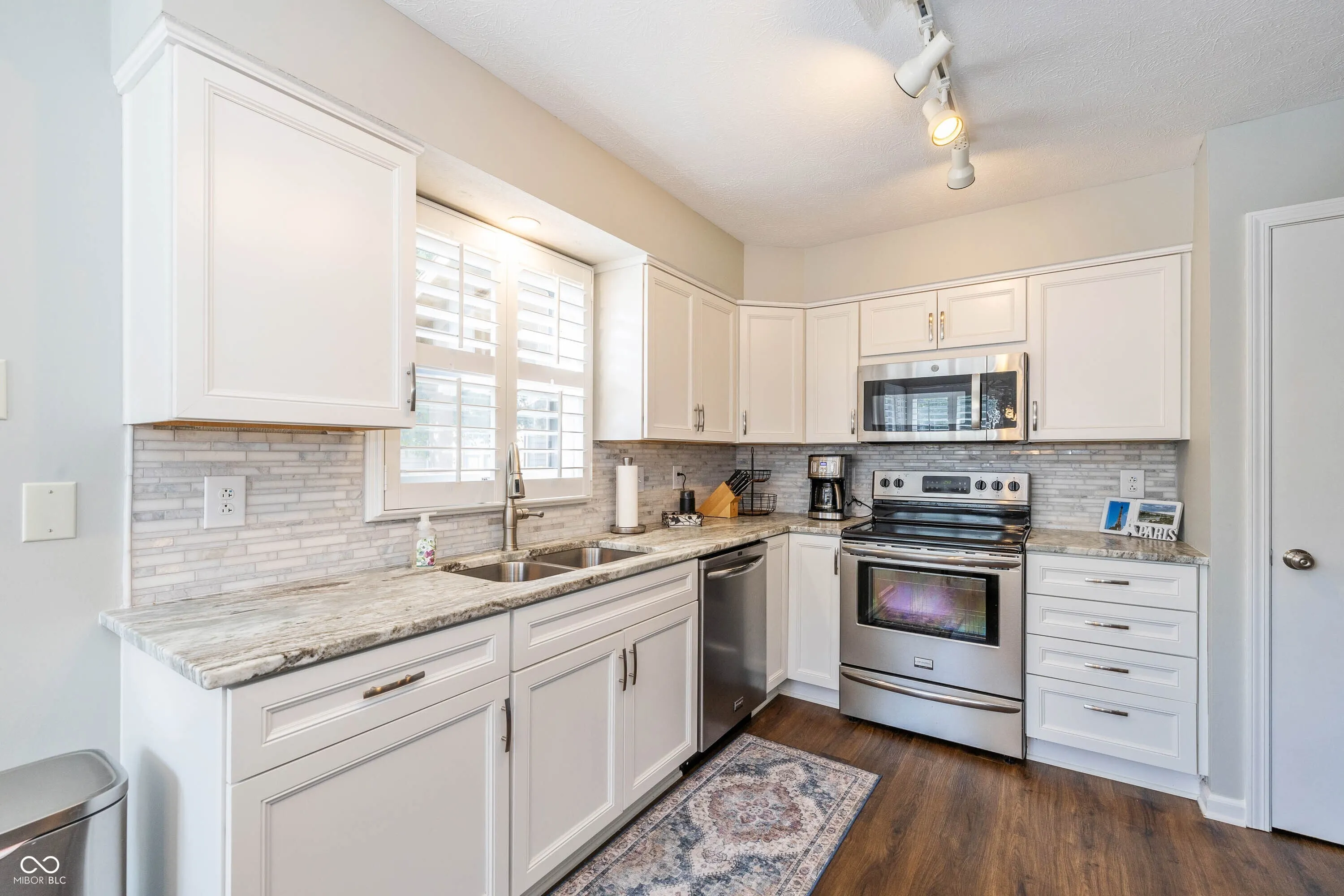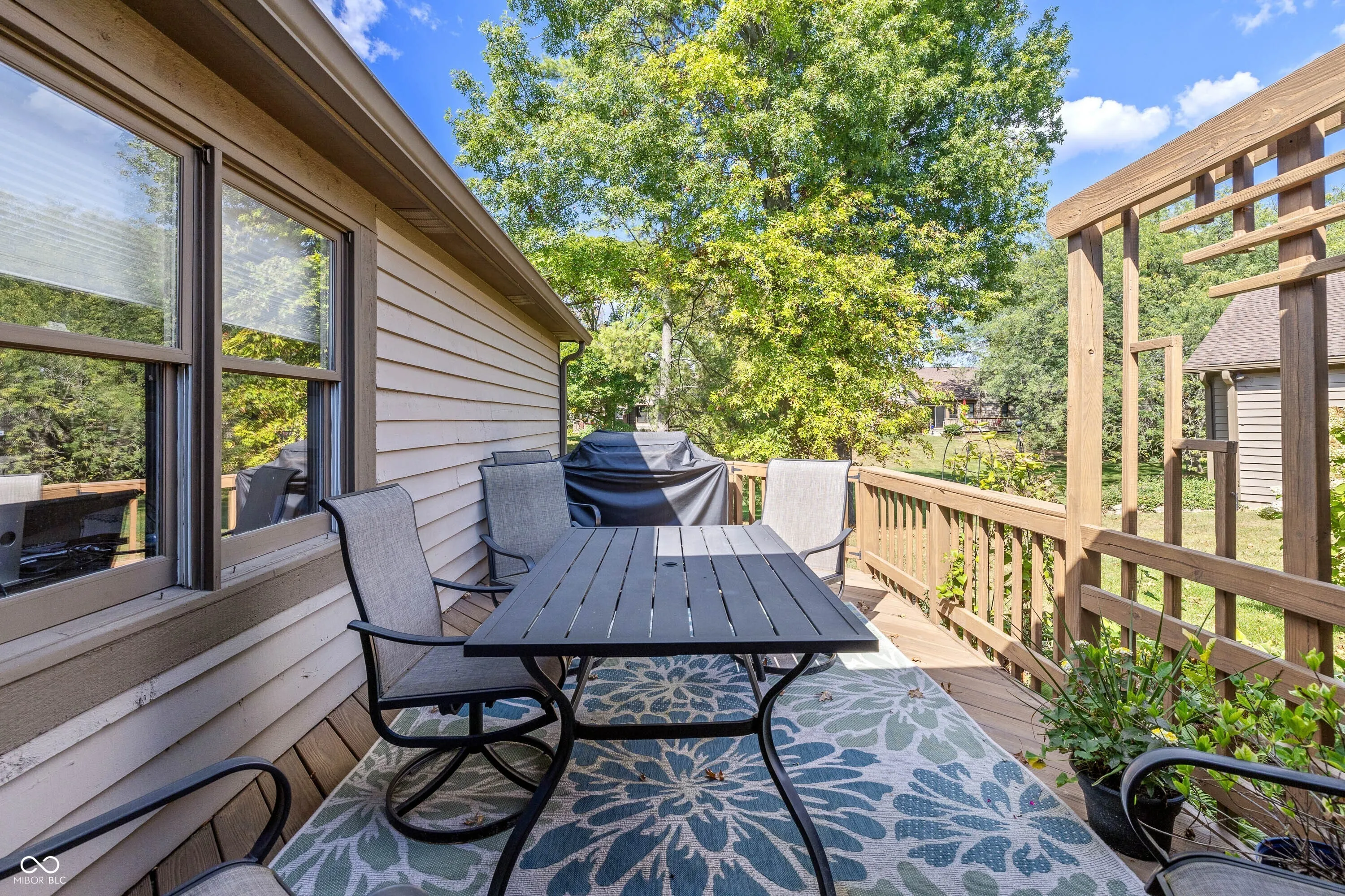 Immaculate ranch in popular Muir Woods! Updated kitchen with soft close cabinets, quartz countertops, stainless appliances and plantation shutters! Great room features vaulted ceiling, gas fireplace and doors to rear deck and is open to dining room! Primary bath has two sinks, garden tub and separate shower and tile is all in excellent condition. Updated flooring and lighting throughout. Washer and dryer remain. Pull down stairs in two car garage for extra storage. Updated blinds in 3rd bedroom/office which overlooks the deck. Kinetico water system. Radon system. One common wall. HOA maintains yard and exterior of property and handles snow removal. Unbelievable location close to schools, restaurants and shopping at Keystone at the Crossing!