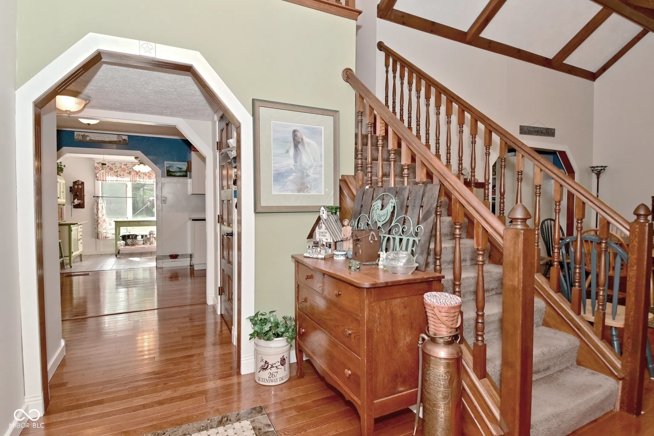 Nestled at 267 Queensway DR, AVON, IN, this single-family residence in Hendricks County presents an attractive property in great condition. Prepare to be captivated by a home designed for both refined living and tranquil relaxation. The living room serves as a focal point, boasting a fireplace that invites cozy evenings and conversation, a high ceiling and vaulted ceiling which elevates the sense of space, a beamed ceiling and skylight that adds architectural interest, and crown molding that brings a touch of elegance. Culinary dreams come to life in the kitchen, featuring a large kitchen island, an island range hood, stone countertops that offer both beauty and durability, shaker cabinets that provide ample storage, a kitchen bar perfect for casual dining, a stovetop ready for gourmet creations, and crown molding that ties the space together. The bathrooms offer a walk in shower, designed to be a serene space for rejuvenation. Outside, a patio and outdoor dining area awaits, promising delightful moments spent under the open sky. A shed provides practical storage solutions, while a woods view offers a sense of privacy and connection with nature. The convenience of a dedicated laundry room simplifies daily chores. With four bedrooms and three full bathrooms spread across two stories and 2730 square feet of living area, this home provides ample space to live comfortably on a generous 24394 square foot lot. Built in 1980, this residence represents a unique opportunity to experience gracious living in a desirable setting.