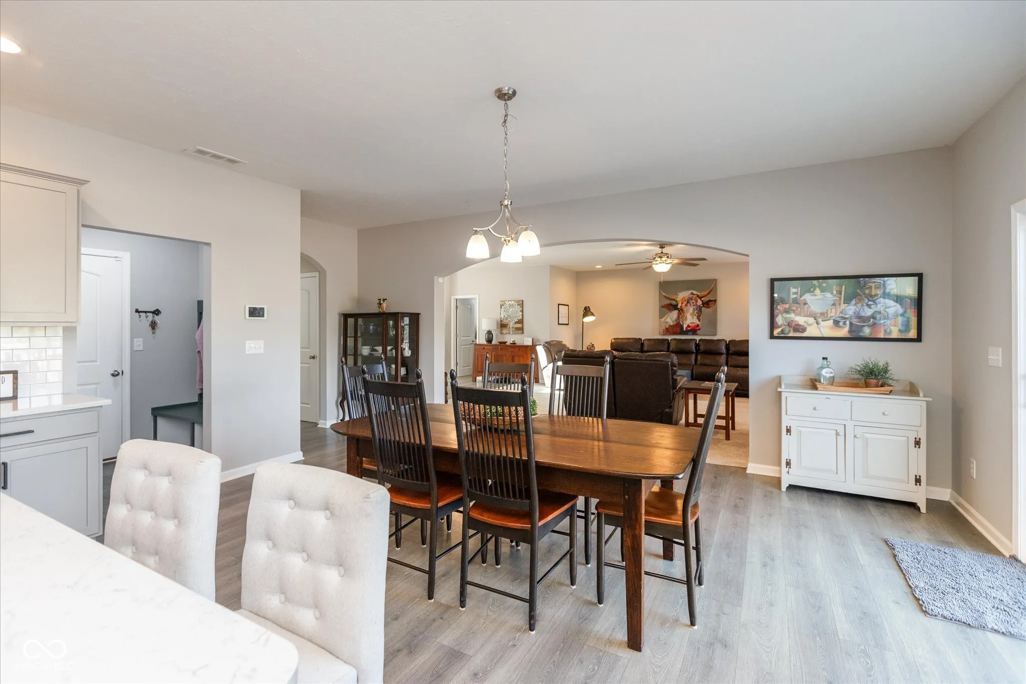 Discover this exceptional 4-bedroom, 3-bath home where thoughtful design, modern comfort, and timeless style come together beautifully. From the welcoming front porch to the spacious interior, every inch of this home has been crafted to enhance both everyday living and entertaining. Inside, you’ll find a formal dining room perfect for gatherings, along with a main-level office conveniently located next to a full bath-ideal for guests or a private workspace. Upstairs, a generous loft provides flexible space that can easily serve as a playroom, media area, or additional office. At the center of the home, the inviting great room features a cozy gas fireplace and flows seamlessly into a sunny breakfast nook and a stunning kitchen. The kitchen truly shines with its large center island, quartz countertops, and staggered cabinetry with crown molding-a combination that’s both functional and elegant, whether you’re preparing dinner or hosting friends. Retreat upstairs to the luxurious primary suite, designed for relaxation. The ensuite bath offers dual sinks, a garden tub, a separate tiled shower, a private commode, and two spacious walk-in closets. The additional bedrooms are comfortably sized, giving everyone their own personal space. Step outside to enjoy the fully fenced backyard, perfect for entertaining or play. The expansive deck includes a built-in grilling station equipped with a gas grill and Big Green Egg, along with a Recreation Unlimited playset and trampoline for endless outdoor fun. Additional standout features include a heated and air-conditioned two-car garage with a 4-foot extension, ensuring comfort and functionality year-round. The home also includes America’s Smart Home technology, giving you the ability to manage key systems conveniently from your smart device-whether you’re home or away. Blending elegance, convenience, and a true sense of home, this property offers everything you’ve been looking for. Don’t miss the chance to make it yours!