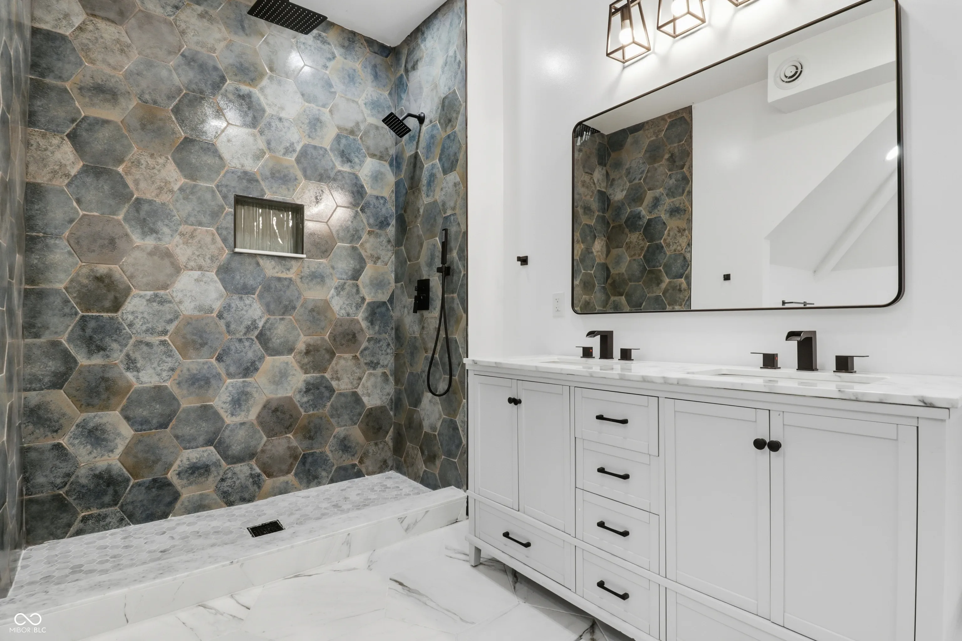INVESTORS! Check out this amazing duplex close to downtown and near Holy Cross, Near East Side neighborhood. Each unit features 4 bedrooms, attic flex space, and 3 full baths. The baths and kitchens boast custom tile and stone countertops, and updated lighting. This home underwent an extensive update and all new finishes have been installed. The first floor features luxury vinyl plank flooring, a laundry room, one bedroom, living room and dining room, while the second floor has the second full bathroom, 3 bedrooms with new carpet, and the final flex attic space has ample storage and an additional bathroom. Don’t miss your opportunity for this rent ready investment property. Live in one side and rent the other, hold the extra lot that accompanies this property, or parcel it off and build something new! This is a great find near all the growth and opportunities DT Indy offers.