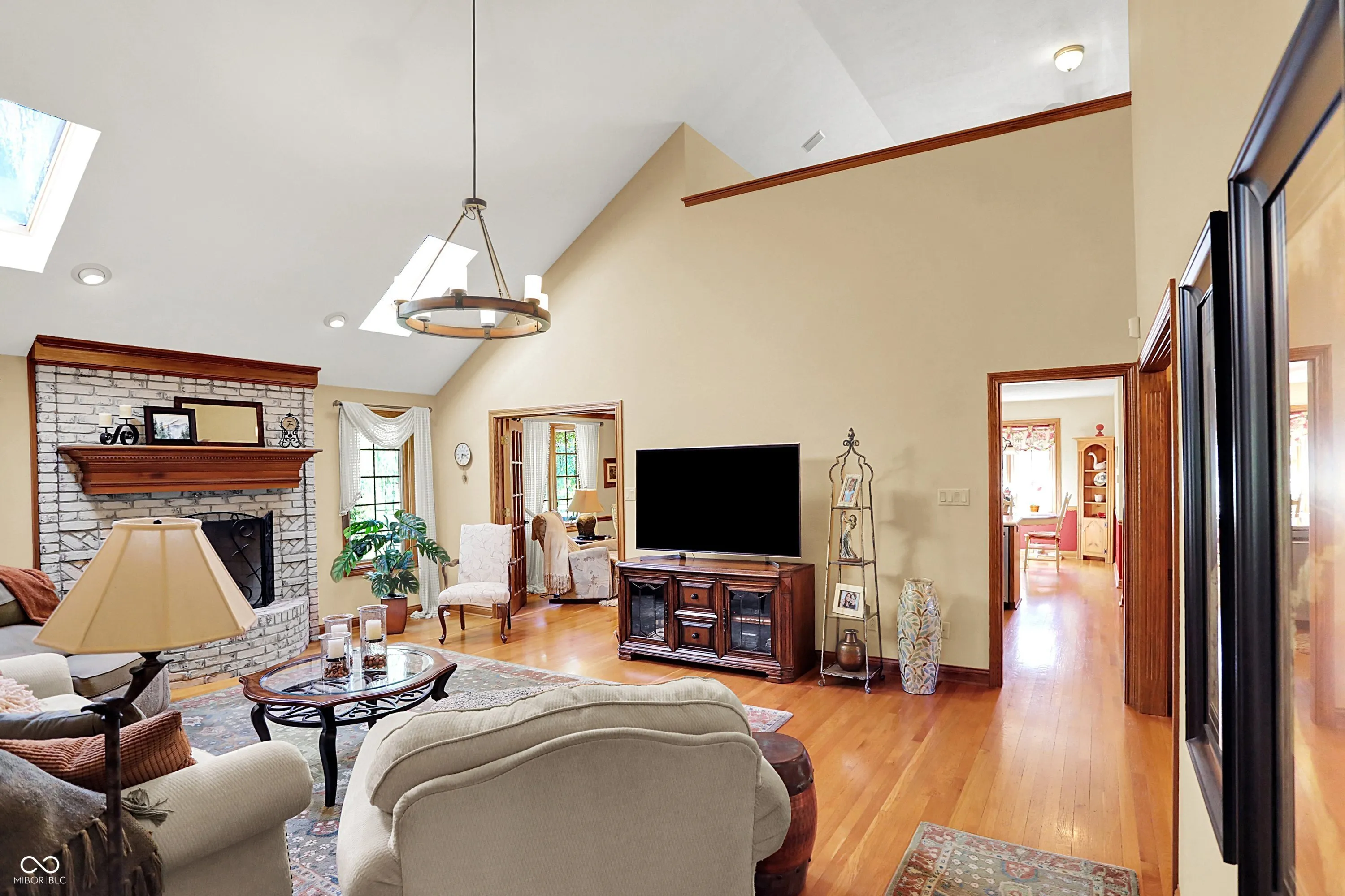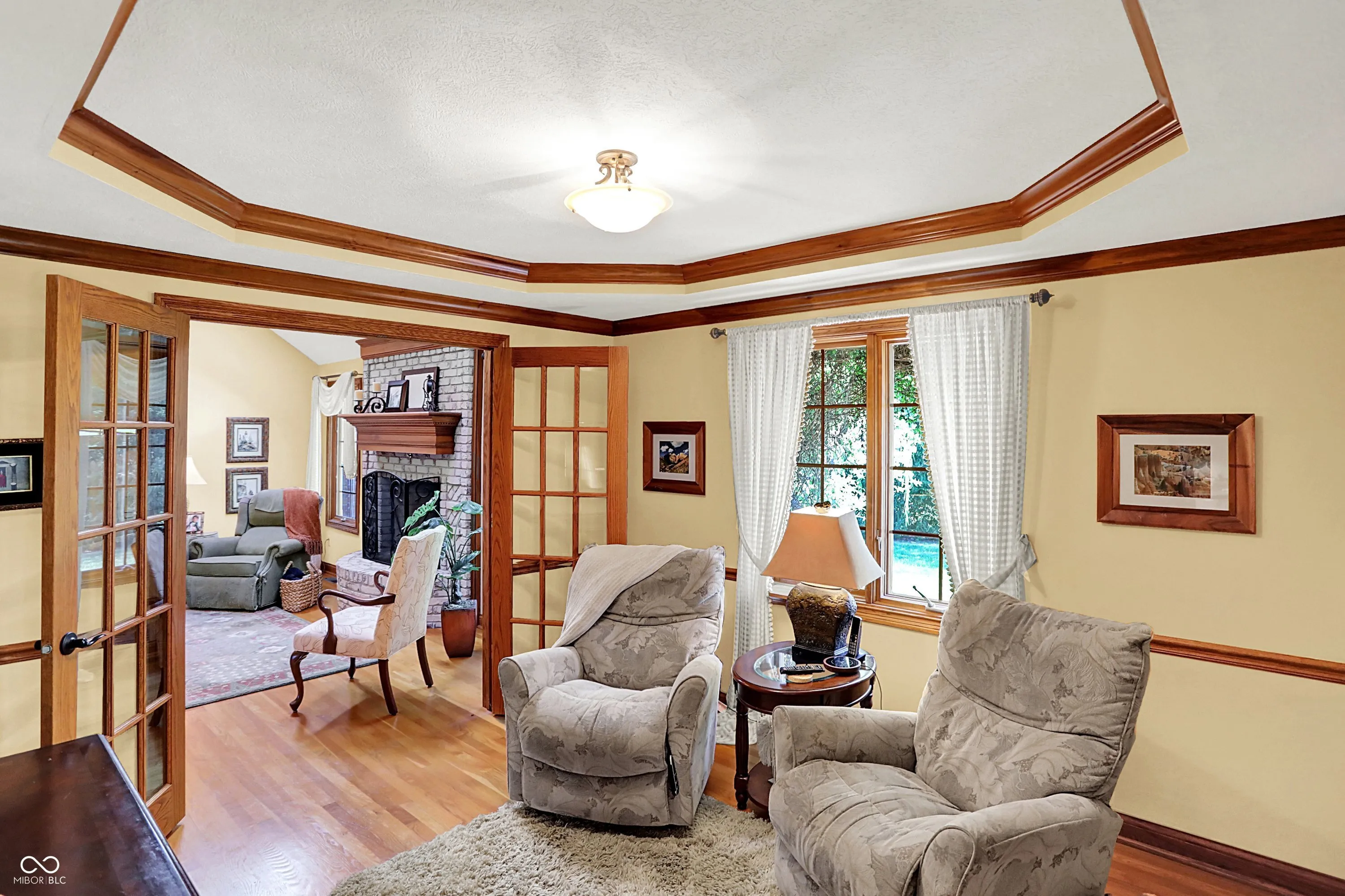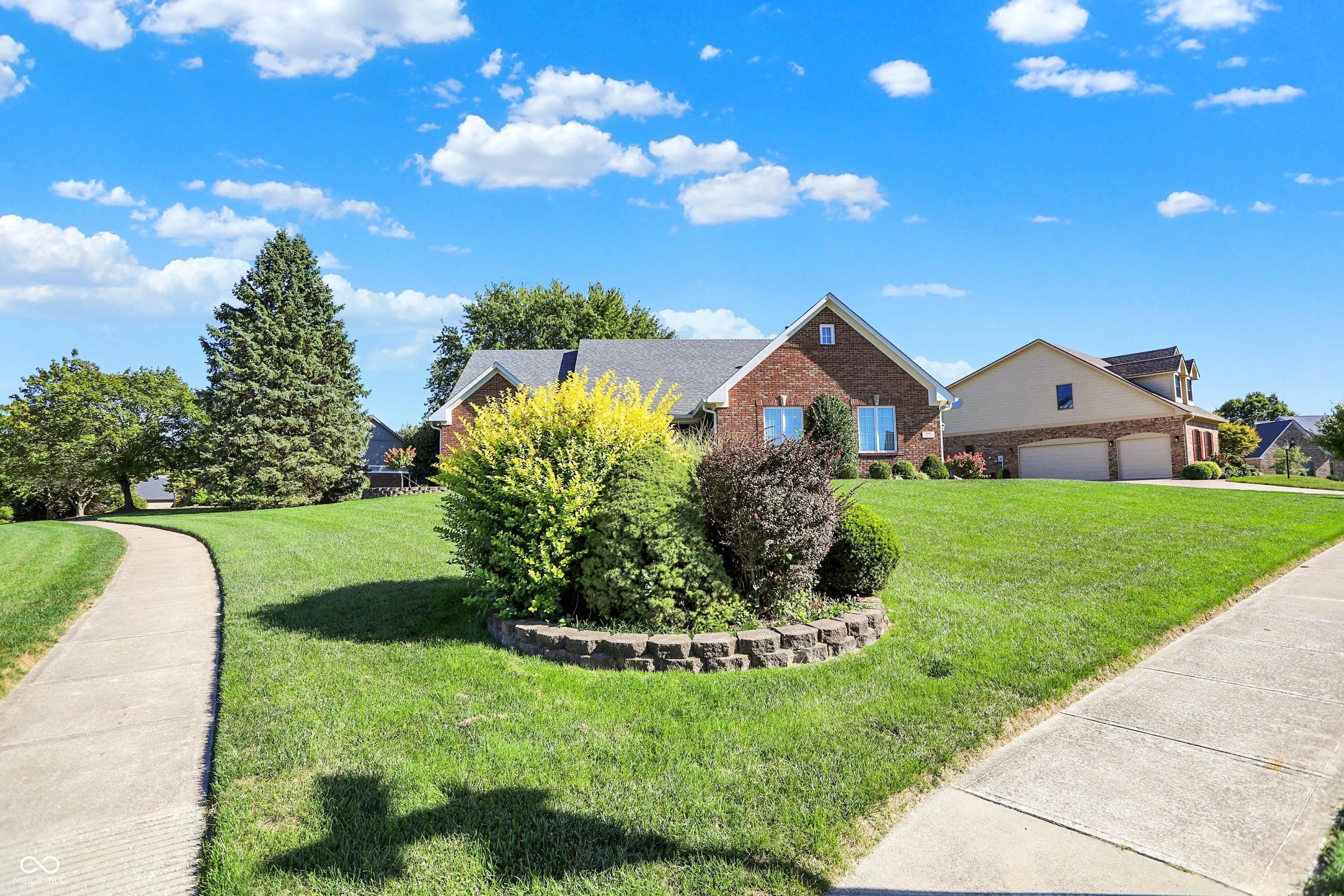 Welcome home to this beautiful custom-built brick ranch in Greenwood Commons, perfectly tucked on a quiet court with wonderful curb appeal, mature trees, and lush landscaping. A charming covered front porch sets the tone for this thoughtfully designed home filled with character and quality details. Inside, you’ll find hardwood floors and an inviting great room with a cozy gas fireplace, creating the perfect space to relax or entertain. The updated kitchen features quartz countertops, a classic subway tile backsplash, and a bright breakfast room, while the formal dining room or den offers flexibility for gatherings, a home office, or additional living space. One of the highlights of the home is the sunroom with Pella slider windows and epoxy concrete flooring, currently enjoyed year-round with a small heater during the winter months-an ideal space for morning coffee, reading, or entertaining. The spacious primary suite includes tray ceilings, a walk-in closet, and a private bath with a soaking tub and separate walk-in shower. Two additional generous bedrooms provide excellent closet space. Upstairs, you’ll discover a large loft area perfect for a craft room, TV lounge, or home office, along with incredible finished walk-in closet/storage space that continues into additional unfinished storage. Step outside to enjoy the private fenced in backyard with a paver patio, surrounded by mature trees-perfect for outdoor dining or relaxing evenings. Well maintained with roof, A/C and water heater replaced in 2020 and several new windows in 2024. Located just minutes from downtown Greenwood, local schools, shopping, and the popular summer concerts in Greenwood parks, this home offers the perfect blend of comfort, charm, and convenience.