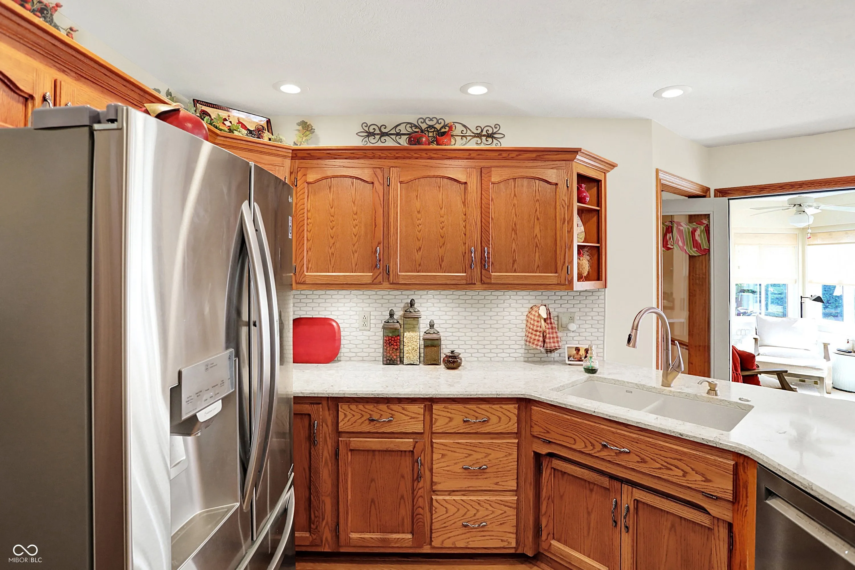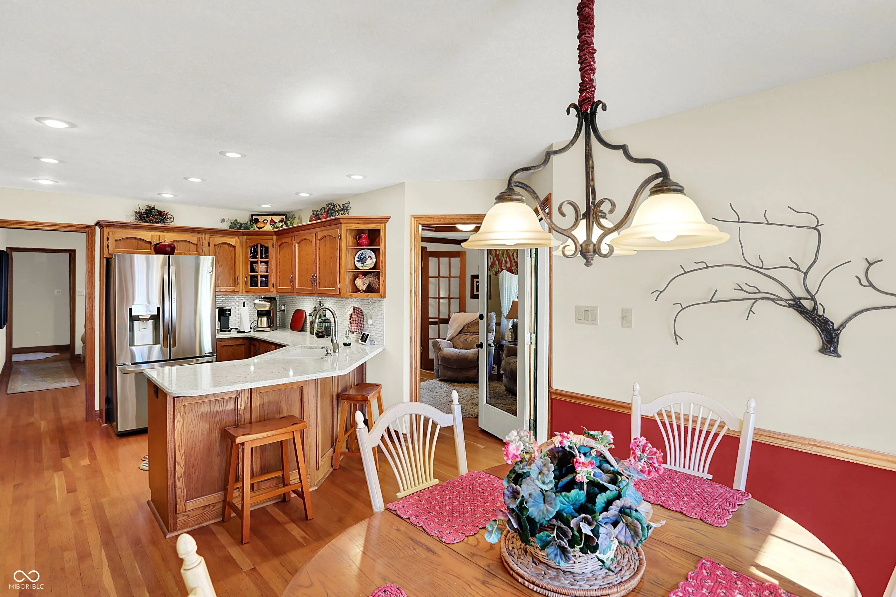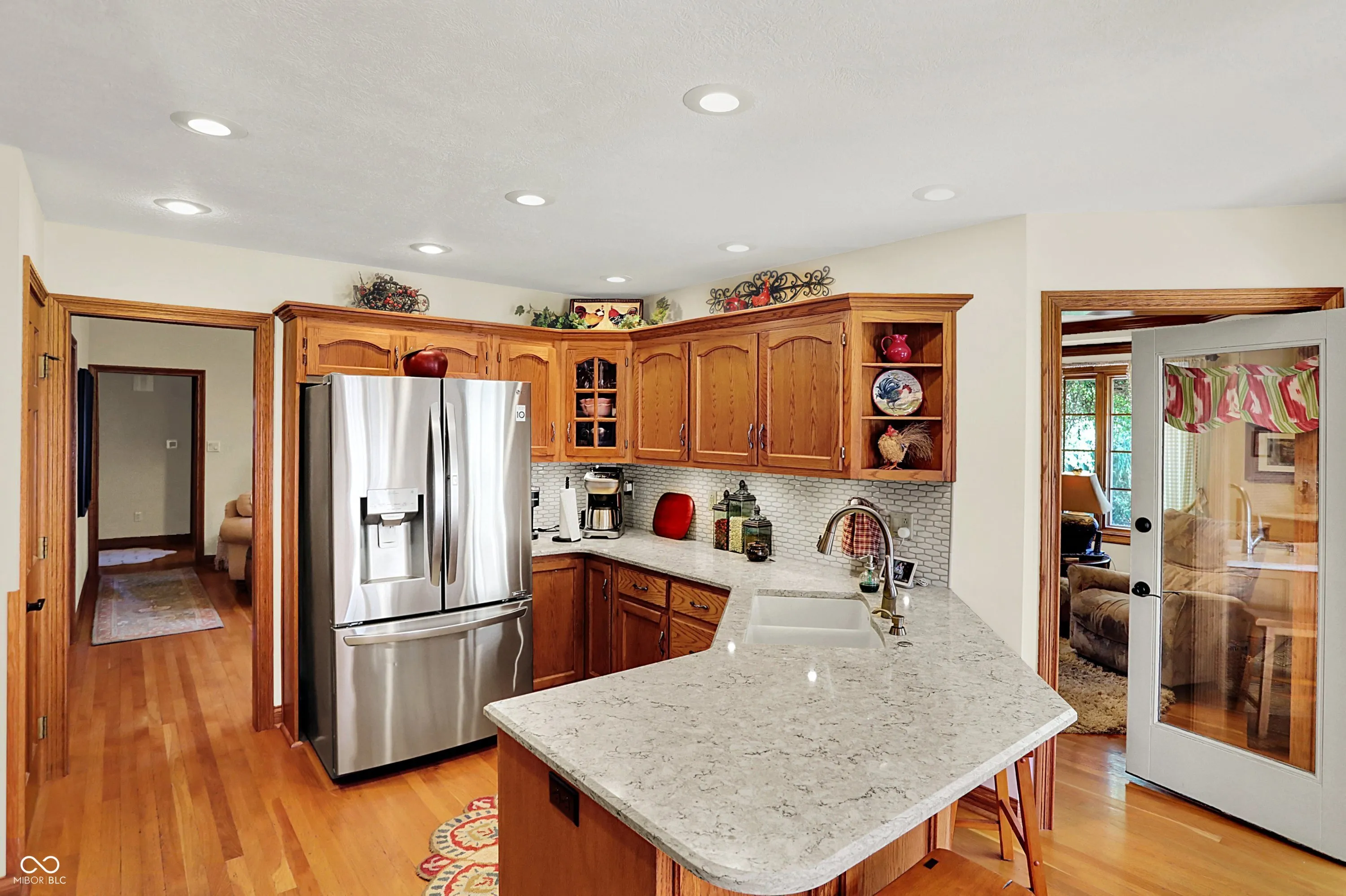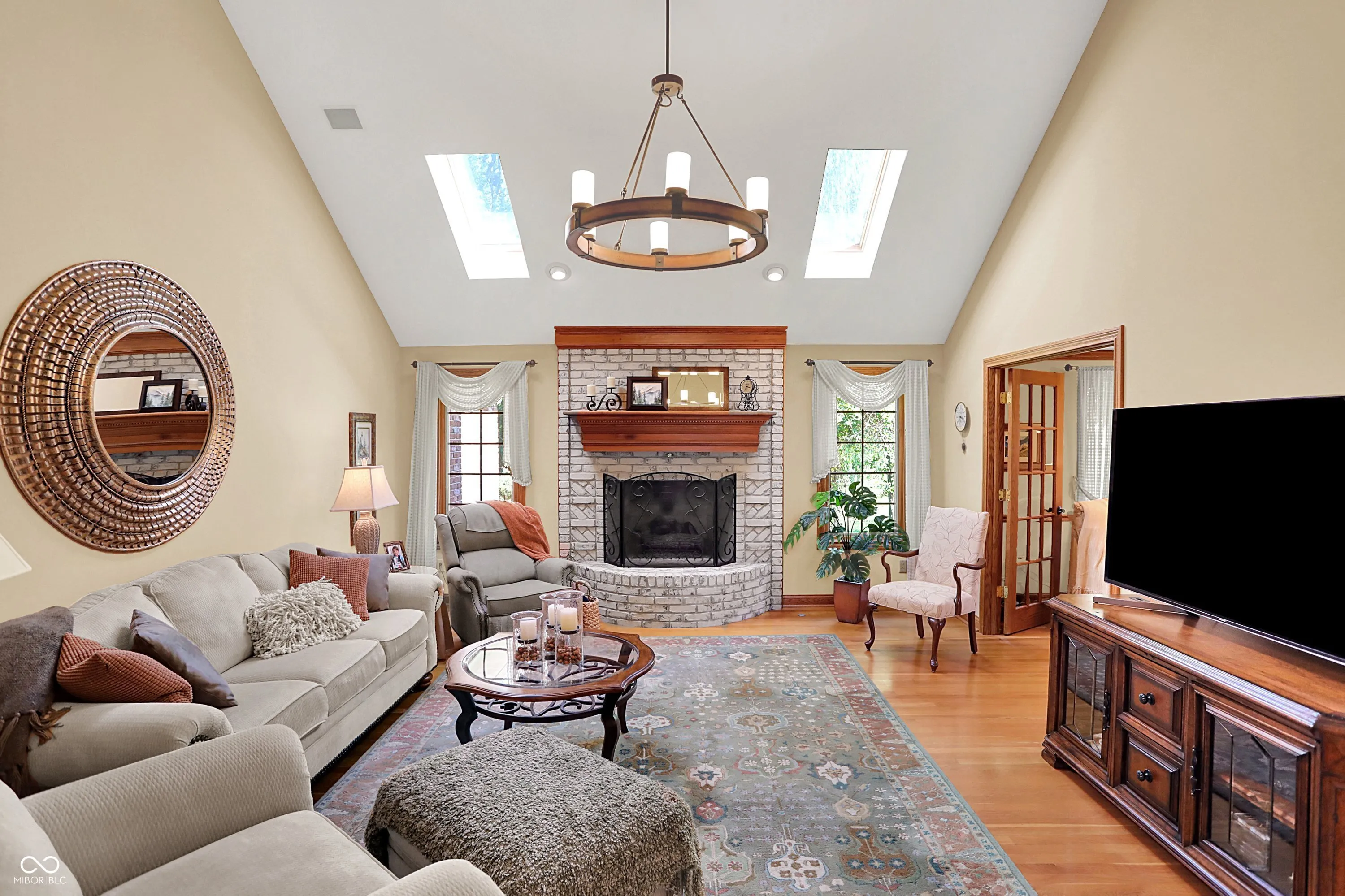 Welcome home to this beautiful custom-built brick ranch in Greenwood Commons, perfectly tucked on a quiet court with wonderful curb appeal, mature trees, and lush landscaping. A charming covered front porch sets the tone for this thoughtfully designed home filled with character and quality details. Inside, you’ll find hardwood floors and an inviting great room with a cozy gas fireplace, creating the perfect space to relax or entertain. The updated kitchen features quartz countertops, a classic subway tile backsplash, and a bright breakfast room, while the formal dining room or den offers flexibility for gatherings, a home office, or additional living space. One of the highlights of the home is the sunroom with Pella slider windows and epoxy concrete flooring, currently enjoyed year-round with a small heater during the winter months-an ideal space for morning coffee, reading, or entertaining. The spacious primary suite includes tray ceilings, a walk-in closet, and a private bath with a soaking tub and separate walk-in shower. Two additional generous bedrooms provide excellent closet space. Upstairs, you’ll discover a large loft area perfect for a craft room, TV lounge, or home office, along with incredible finished walk-in closet/storage space that continues into additional unfinished storage. Step outside to enjoy the private fenced in backyard with a paver patio, surrounded by mature trees-perfect for outdoor dining or relaxing evenings. Well maintained with roof, A/C and water heater replaced in 2020 and several new windows in 2024. Located just minutes from downtown Greenwood, local schools, shopping, and the popular summer concerts in Greenwood parks, this home offers the perfect blend of comfort, charm, and convenience.