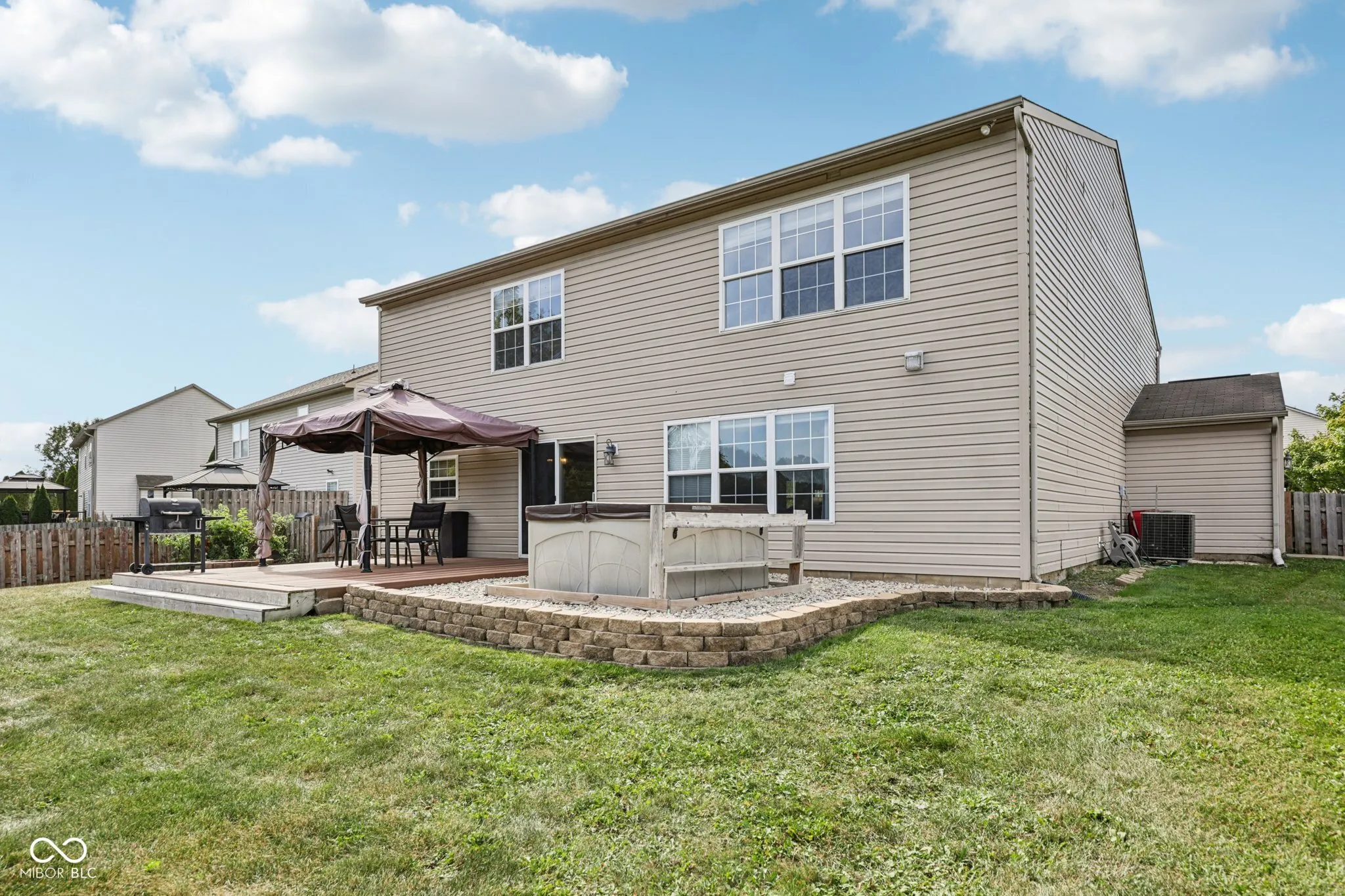 Step into this spacious and beautifully designed 5-bedroom home that perfectly blends comfort, flexibility, and modern living. Located in a popular Noblesville’s neighborhood with community pool, this home offers an open-concept layout on the main floor, perfect for both everyday living and entertaining. The main level also features vinyl plank flooring, space for a formal living room, a separate dining room, and open kitchen with granite countertops with island-ideal for gatherings and home-cooked meals. Upstairs, you’ll find five generously sized bedrooms, a mini-loft, and a wide hallway that enhances the feeling of space and flow. Owners bedroom has French doors, large closet, walk in glass shower and separate independent soaking tub. Step outside to your private backyard retreat complete with a deck, gazebo, and separate hot tub area-all overlooking a serene, sloping back yard and fenced that backs up to a neighboring pond. Whether you’re hosting guests or enjoying a quiet evening at home, this outdoor space offers the perfect escape