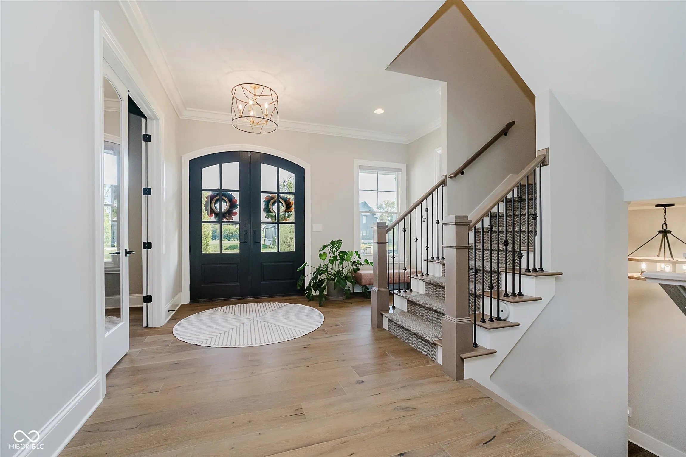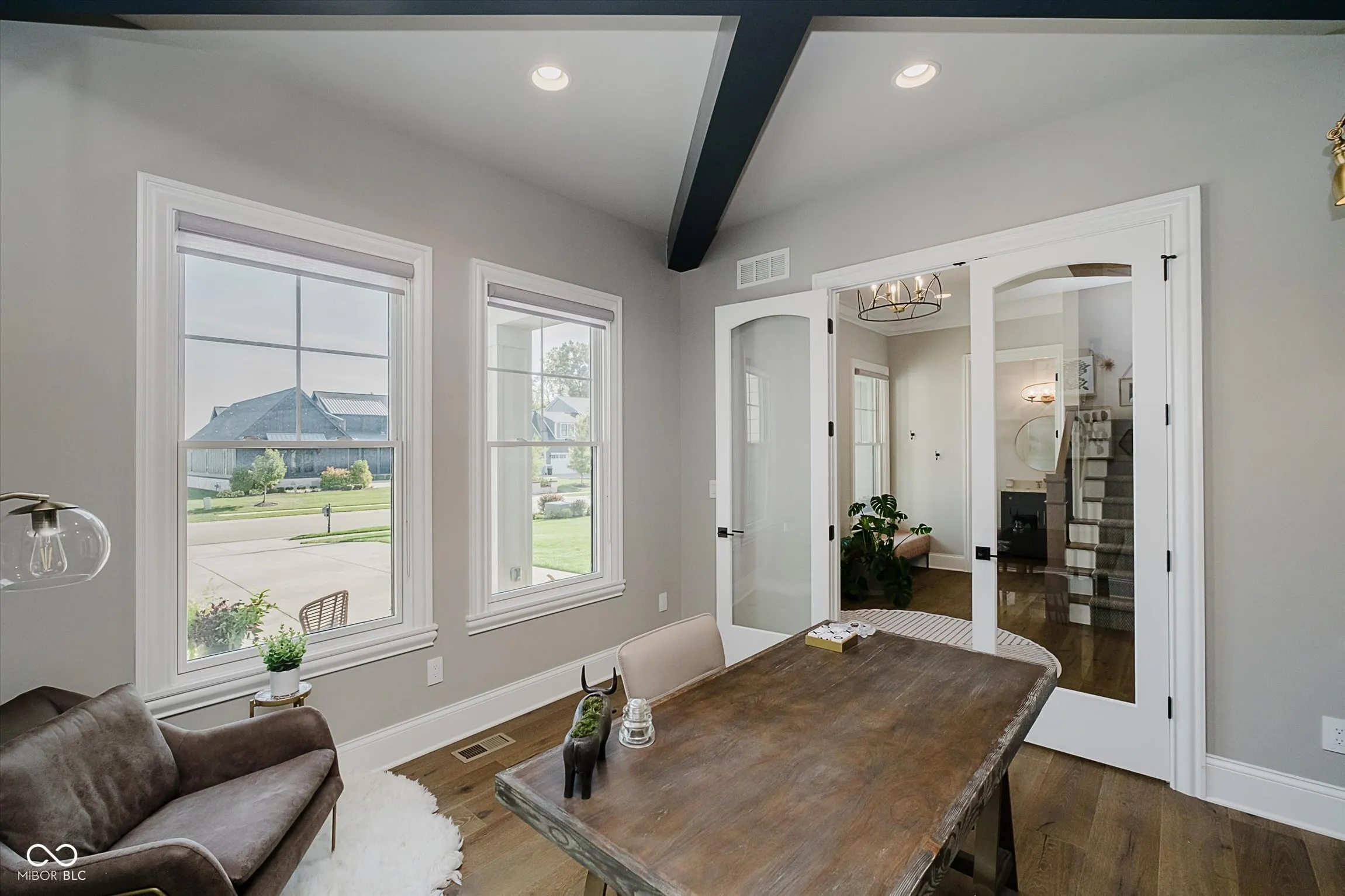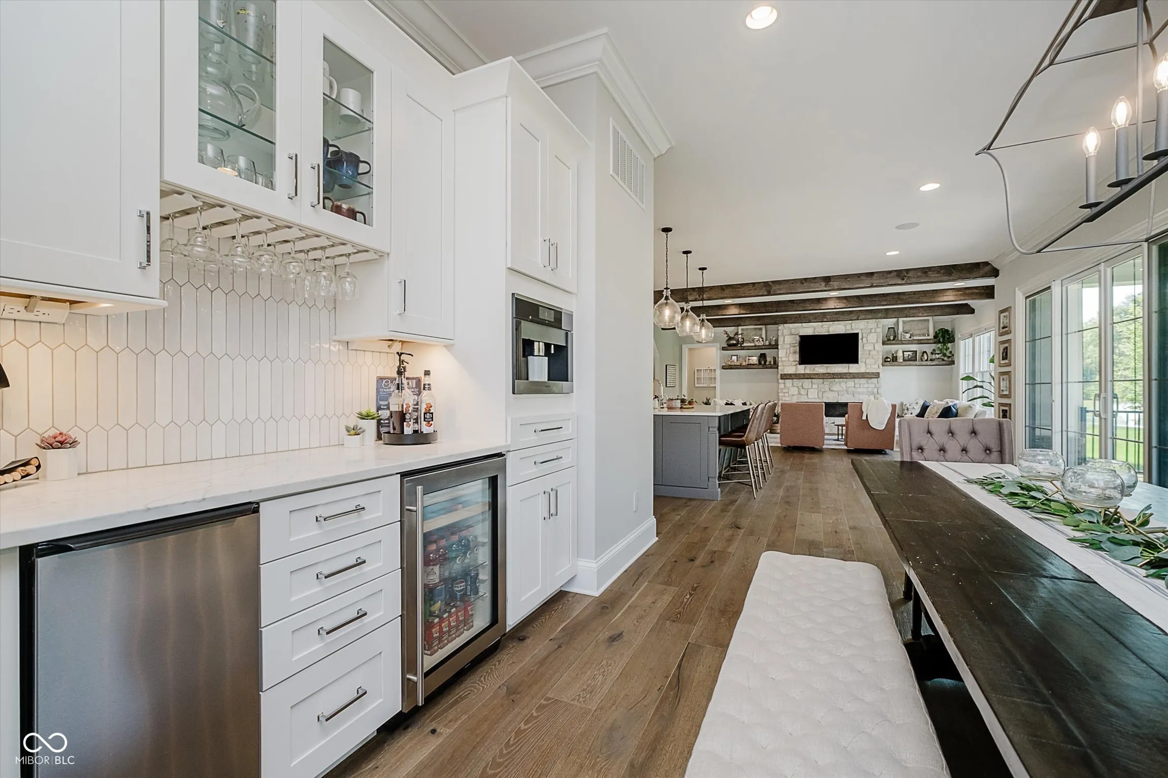 Welcome to this thoughtfully designed home in Chatham Hills, offering over 6,500 square feet of finished living space with 6 bedrooms and 4.5 baths. The home balances everyday comfort with unique custom features, making it ideal for both quiet living and entertaining. Inside, the open-concept layout showcases a large quartz kitchen island crafted from a single slab, prep kitchen area with 2nd sink, Miele appliances including a gas range w/ pot filler, steam oven, dual microwave, built-in coffee maker, and Electrolux fridge. A dedicated craft room, custom office built-ins, and a kids’ play nook under the stairs add functionality and charm. The lower level includes a bar with a serving window to the custom wine room, a spacious recreation area, and plenty of unfinished storage. The primary suite features a custom ceiling design, spa-like bath, and walk-in closet with quartz surfaces and convenient stacked washer and dryer. Additional details include Dolby Atmos 9.1 surround sound, an Elan home automation system with touch-screen controls, and built-in speakers throughout multiple zones. Dual HVAC systems provide three zones for energy-efficient comfort. The heated 4-car garage includes a basketball goal and space for year-round activity. Outdoors, the covered porch with retractable screens extends the living space, featuring areas for dining and relaxation by the fireplace and TV, alongside an outdoor kitchen for gatherings. The private backyard backs to a pond and tree line, creating a tranquil setting. Irrigation in front and back as well as an invisible dog fence. Upstairs, three bedrooms and a bonus room provide flexible living space, while thoughtful wall treatments and built-ins elevate the design. This home combines modern convenience with custom finishes, offering a setting that is both distinctive and livable within the vibrant Chatham Hills community.