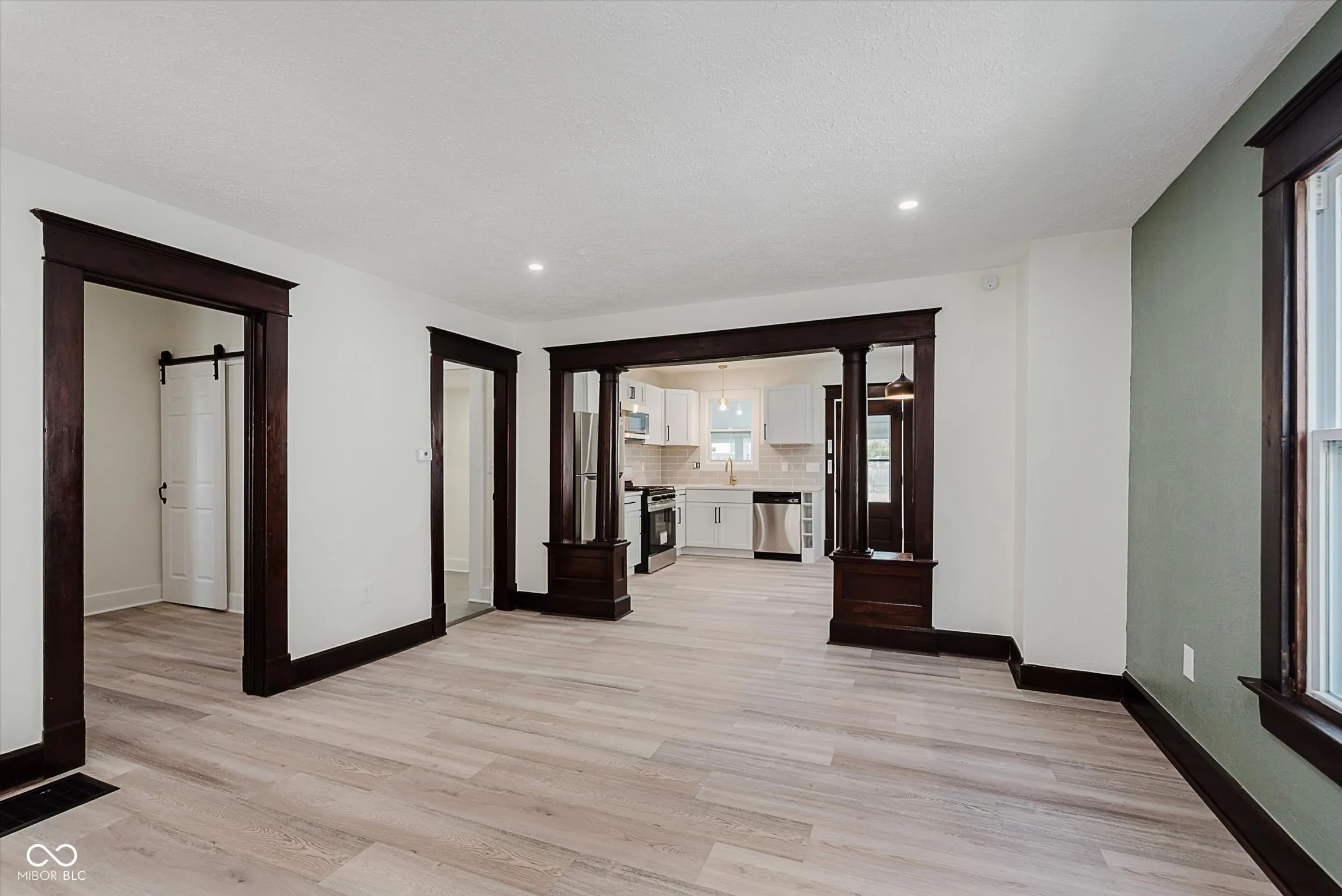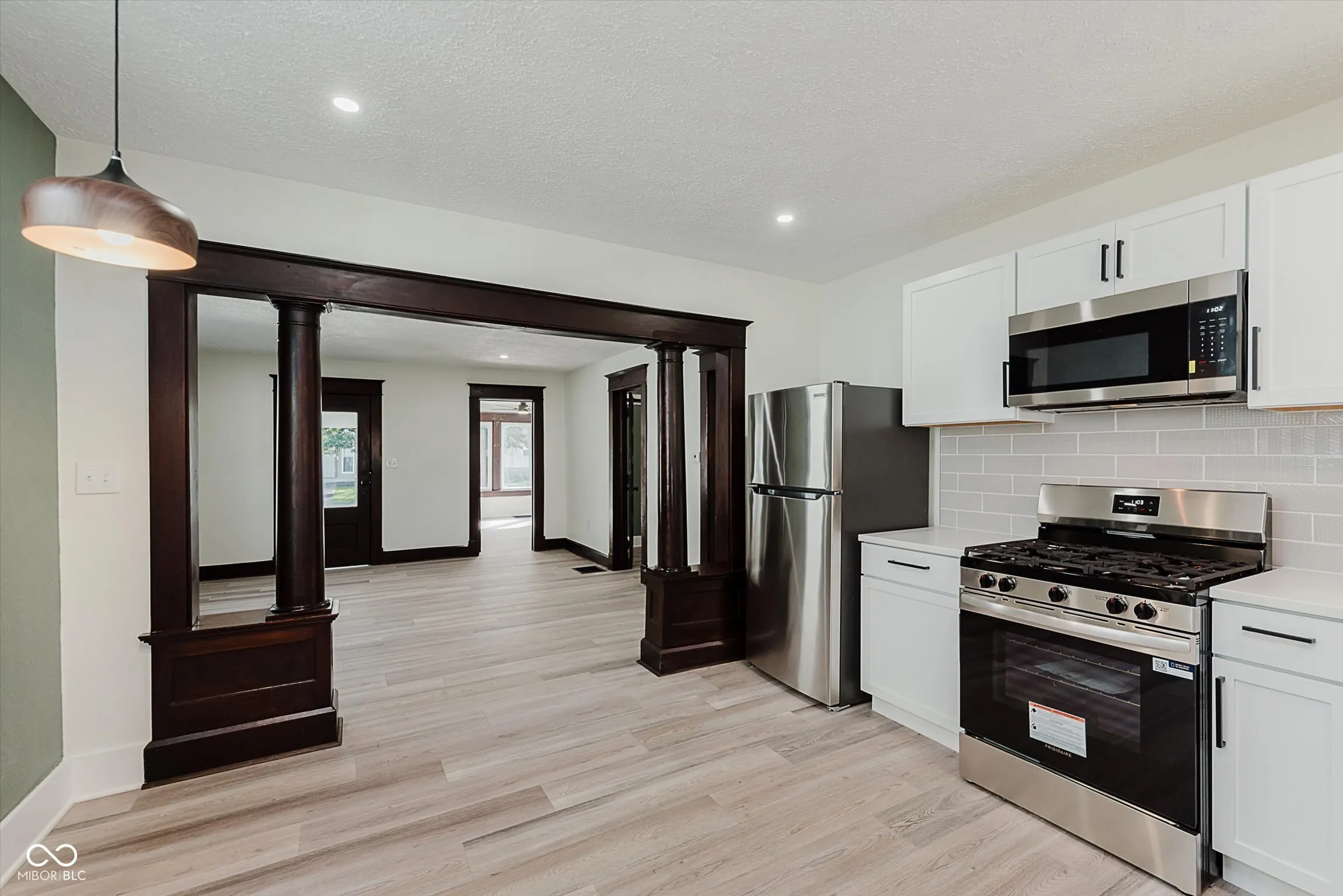 Incredible opportunity to live steps from Fountain Square fun without a hefty price tag! Located just off the strip, walkability here does not disappoint! Charm and character have been preserved in this 2 bed/2 full bath charmer. Curb appeal is at its finest, with fresh paint and a covered front porch- who doesn’t love a good porch sit?! Inside, be greeted by a large living room, graciously preserved with original wood columns to highlight the charm, including original, stained trim and doors throughout to match. Newly configured primary suite offers a large closet and attached full bathroom. 2nd bedroom may be small but mighty, offering double closets for storage. Open kitchen provides the perfect sitting area for a dining table, ideal for the master chef, with new appliances, cabinets, and quartz countertops, spilling into the covered back patio and large fully-fenced backyard with off-street parking- perfect for those who love to entertain. Main floor laundry area leads to the spacious full guest bathroom. Unfinished basement has been freshened up and allows for plenty of storage. Aside from the cosmetic updates, newer windows and mechanicals will give peace of mind for years to come. Whether looking for yourself or as an investment, this is the perfect opportunity!