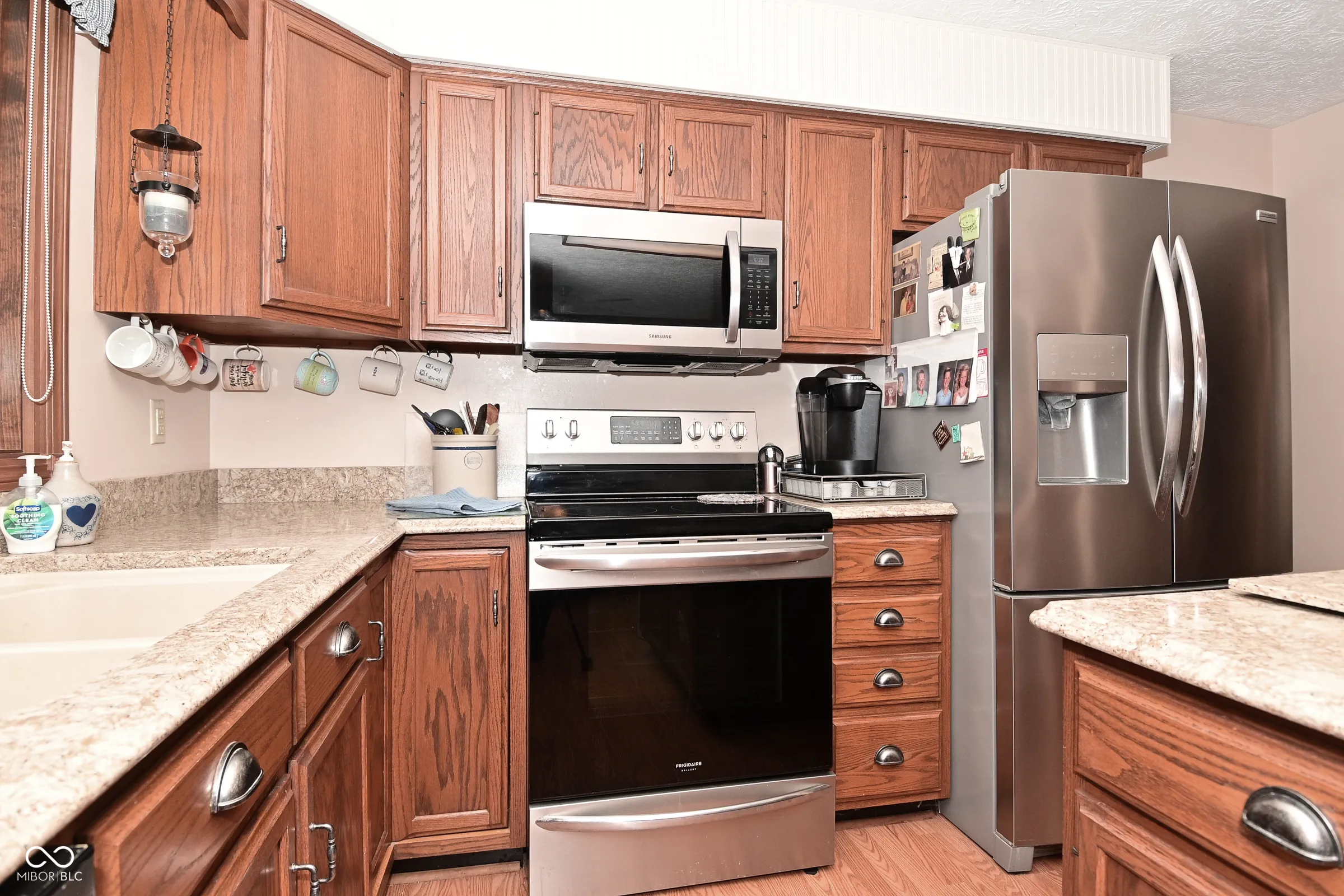Custom brick ranch w/ 3 bedrooms and 2 full baths. Open great room with vaulted ceilings and lots of natural light! Dining room. Nice laminate hardwood flooring. Eat-in Kitchen w/ beautiful quartz countertops and stainless steel appliances w/ center island. Separate laundry room w/ cabinets and folding table. Newer Andersen Windows! Beautiful tree lined back yard for privacy. French door leading out to outdoor deck with awning for amazing nights! 2- car garage w/ cabinets and so much more!