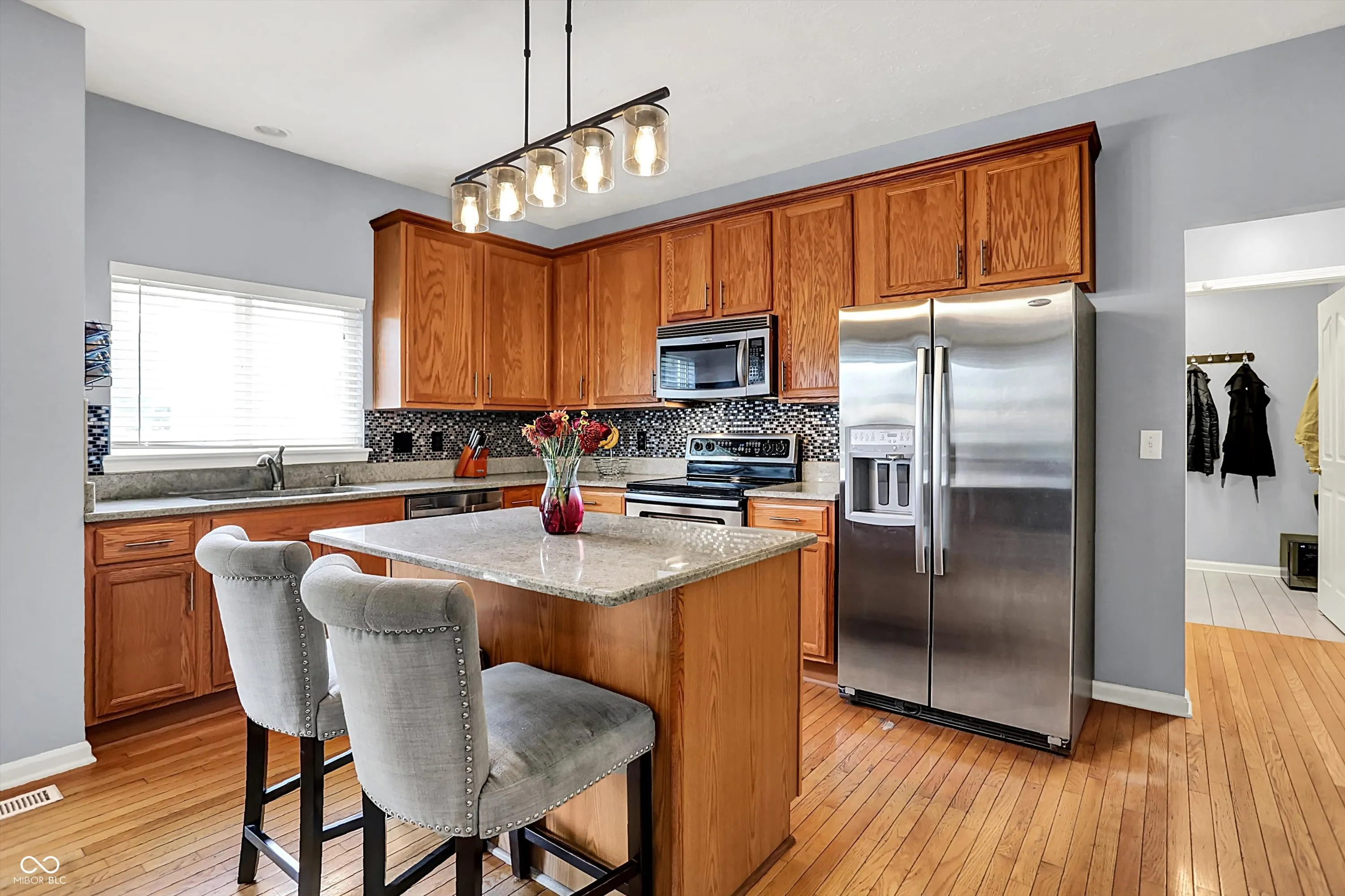Discover your dream home in Fishers’ coveted Sandstone Lakes! This stunning 4-bed, 2.5 bath residence boasts a finished basement and irrigation. Enjoy an unbeatable location, walking distance to Brooks School Park and Mud Creek. Inside, find upgraded lighting, hardwood floors, and potential for two dedicated home offices. The gourmet kitchen features stone countertops, stainless steel appliances, and a center island, flowing seamlessly into the living room with a gas fireplace. Upstairs, all bedrooms offer ceiling fans, with a primary suite showcasing a cathedral ceiling, molding, dual sinks, a garden tub, and a glass shower. Step outside to a screened porch and firepit. Includes a 12-month Achosa home warranty! Quick access to 116th Street for dining and shopping.