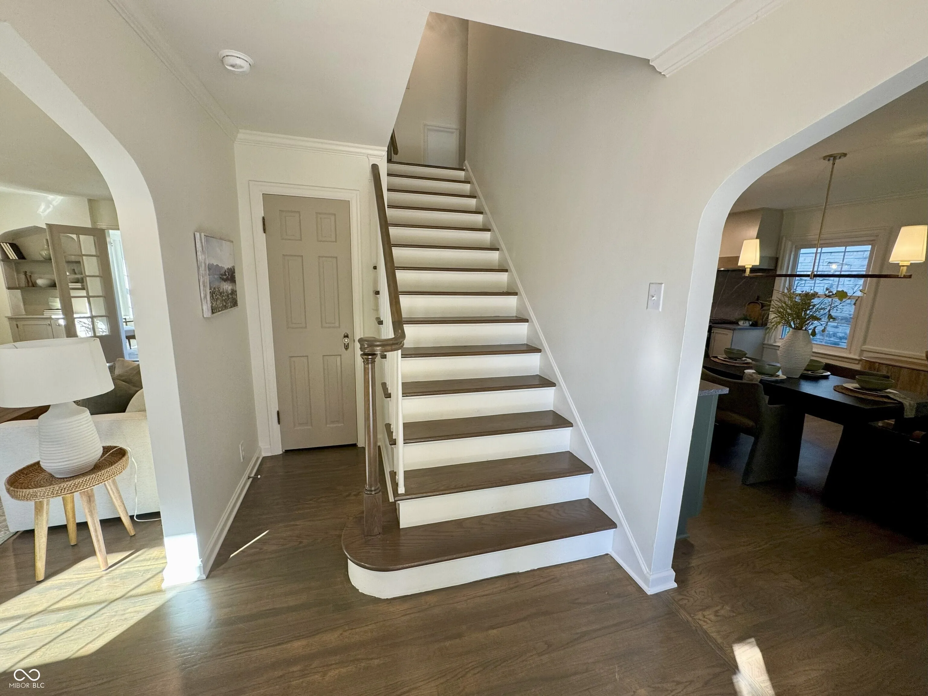 Nestled on quiet New Jersey Street in the heart of Meridian-Kessler, this perfectly polished gem combines timeless charm with thoughtful updates! Step into the welcoming foyer with its traditional staircase, flanked by two graceful archways leading to the main living spaces. Beautifully refinished hardwood floors flow seamlessly through the home, enhancing the spacious formal living room with its classic fireplace and elegant arched built-ins. French doors open to a bright home office or sunroom, offering backyard views and abundant natural light. The custom-designed kitchen is a true showpiece-complete with soapstone granite counters, slow-close cabinetry, curated finishes, and plenty of space to gather. Enjoy meals in the cozy breakfast nook with original corner cabinets or host in the formal dining room featuring a built-in buffet. A circular floor plan ties everything together with a main-level pantry, powder room, and access to the back patio. Upstairs, the hardwoods continue into three spacious bedrooms and two full bathrooms. The dreamy primary suite includes dual walk-in closets and a breathtaking ensuite bath. The lower level adds even more versatility with a finished family room, a custom dry bar echoing the kitchen’s style, and an oversized utility room with laundry and abundant storage. Outside, relax in the fully fenced backyard or enjoy the convenience of a 2-car garage and sizeable driveway. This rare Meridian-Kessler find offers pristine condition, functionality, and classic character-all at a rare price point!