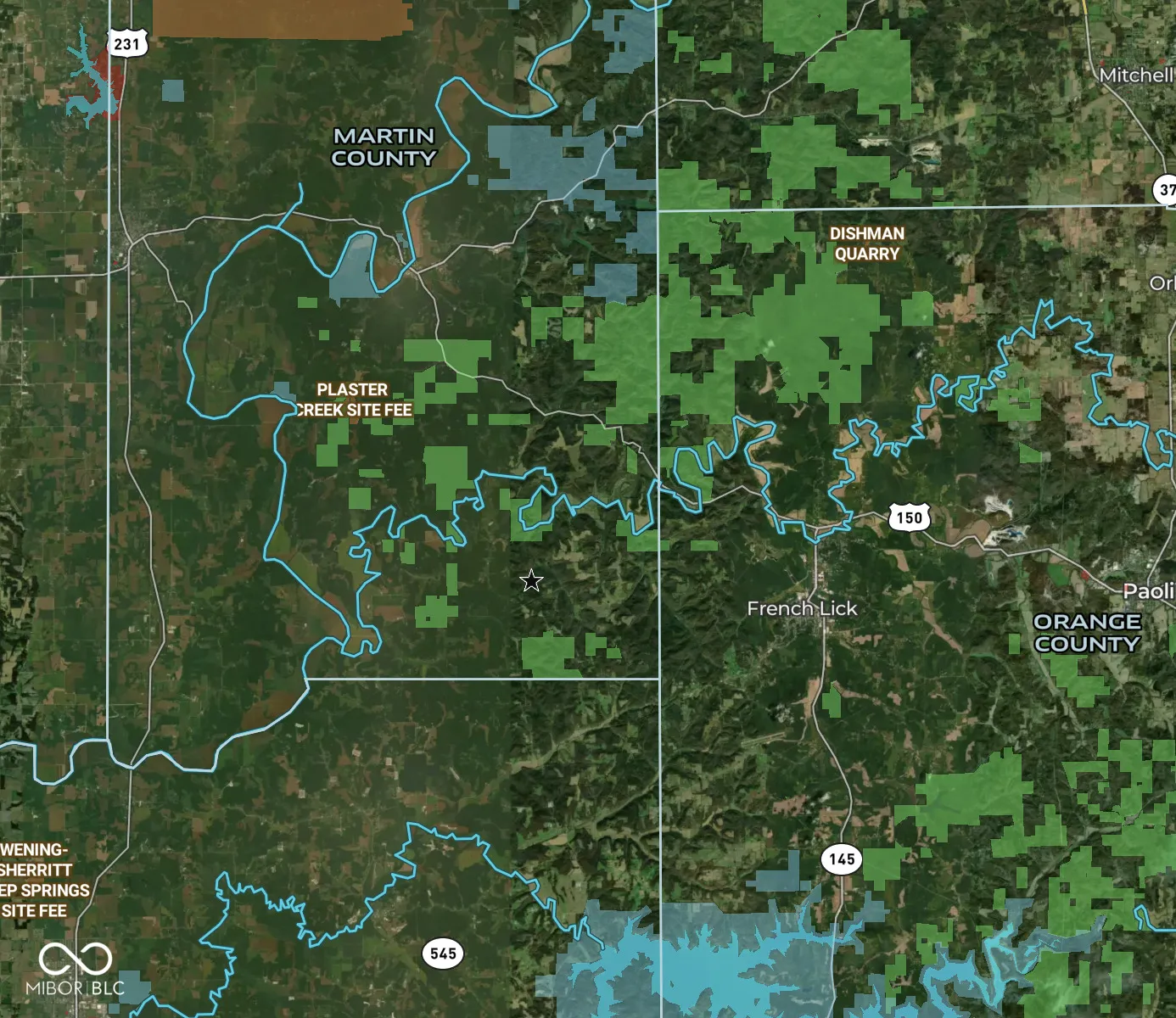 Tucked away in a quiet part of scenic Martin County, this 5+/- acre tract offers a secluded setting surrounded by expansive natural landscapes. With direct access to thousands of acres of Hoosier National Forest, it provides opportunities for exploration, outdoor recreation, and a convenient base camp for southern Indiana adventures. The property includes approximately 375 feet of county road frontage along gravel-surfaced Peggy Hollow Road, offering reliable access. Electric service runs along the road, with the option of adding a well or cistern for future water service. A natural highlight is the rock-lined wet weather drainage that winds through the land, adding character and supporting diverse habitat. The surrounding hardwood forest attracts abundant wildlife such as white-tailed deer, wild turkey, barred owls, bald eagles, and pileated woodpeckers, creating a setting where nature and wildlife are ever-present. The terrain is primarily wooded, offering shade, cover, and space for camping, hiking, hunting, or a quiet getaway. Its manageable size makes upkeep practical while still providing room to enjoy the outdoors. The location combines remoteness with convenience, just a short drive from French Lick and West Baden, where dining, lodging, entertainment, and services are available. This tract is well-positioned for outdoor enthusiasts. With the Hoosier National Forest nearby, extended hiking, horseback riding, wildlife viewing, and seasonal hunting are all within easy reach. Balancing seclusion, natural features, and accessibility, this Martin County property could serve as a weekend retreat, hunting parcel, or a starting point to enjoy the extensive recreational opportunities across southern Indiana.