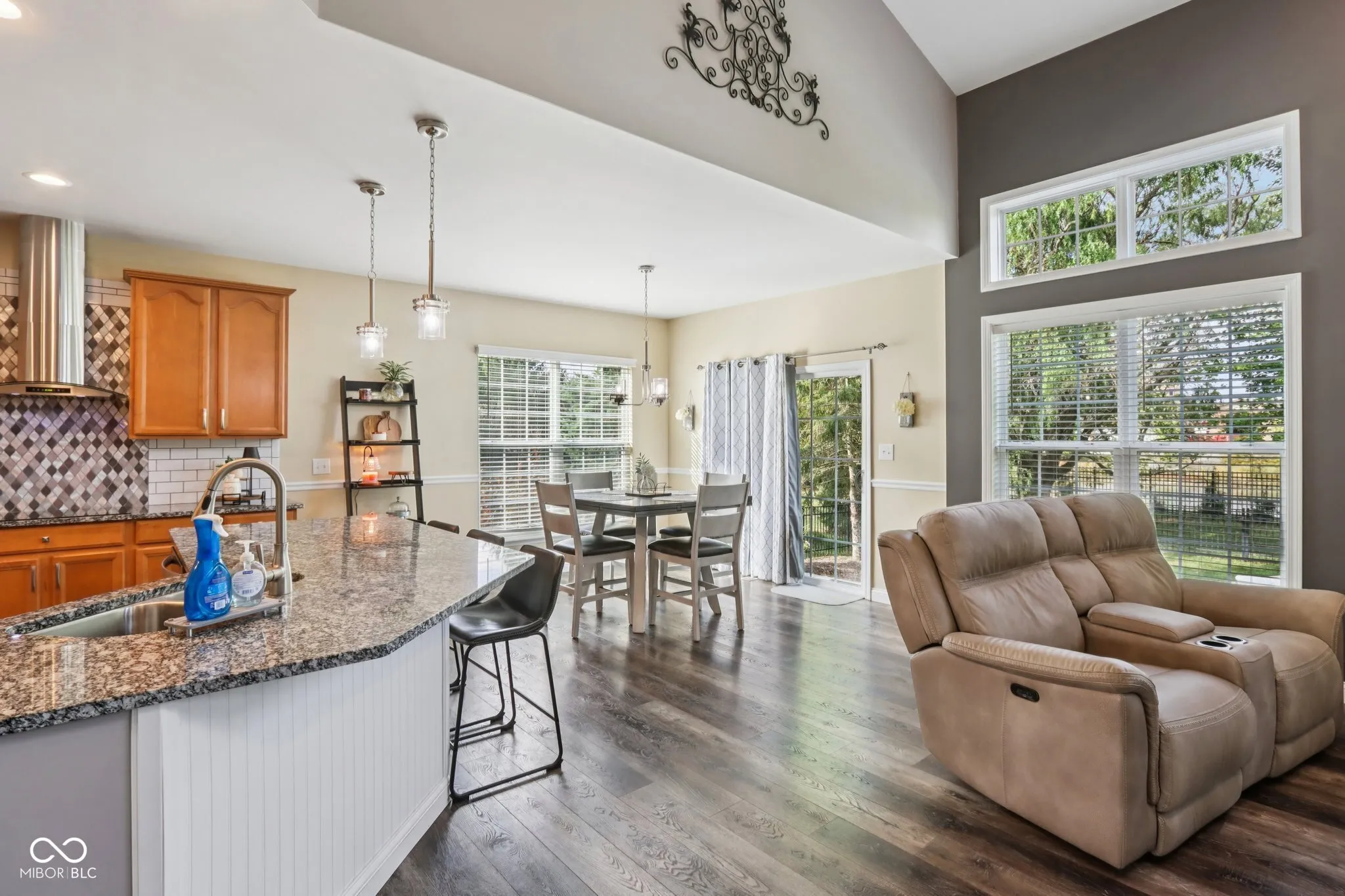 Absolutely Stunning brick home in popular Carmel neighborhood! Premium location with green space view from the front and private pond view in the back! Font door with transom adds warmth and beauty to the spacious entry. Formal dining room with crown molding and wainscotting in foyer, stairway and dining. Main floor has all neutral paint and beautiful wide plank LVP through out. Two story great room with gas fireplace and wall of window for tons of natural light! Gourmet kitchen with granite counters, 42 inch cabs, stainless hood, subway tile backsplash and stainless steel appliances (newer). Updated lighting thru out the home. Main floor owners suite privately tucked off the great room with vaulted ceiling and feature wall. Main floor bath features sliding barn door and has been updated with new tile, upgraded shower and soaker tub and double sinks. Owners closet has LVP and ample shelving. Main floor laundry with built in cabinets and half bath lead to a finished three car garage. Upstairs has all new carpet, upstairs loft is perfect for second living room. Finished basement has kitchenette and full bath and spacious storage, great for guest or recreation room. Private fully fenced rear yard with mature trees and large custom concrete patio perfect for relaxing.