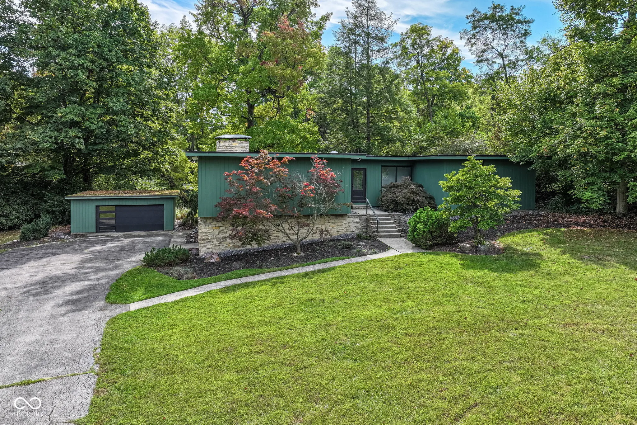 Experience the perfect balance of style, comfort, and privacy in this fully renovated 3 bedroom, 2.5 bath Mid-Century Modern home on over an acre in Washington Township. Completely remodeled in 2025, every detail was thoughtfully chosen to blend timeless architecture with modern luxury. Expansive windows and skylights flood the home with natural light, highlighting an open floor plan anchored by a striking stone fireplace and connecting seamlessly to the dining area and gourmet kitchen. Designed for both everyday living and entertaining, the kitchen is a chef’s dream with quartz countertops, custom cabinetry, Cafe dishwasher and microwave, Mercury refrigerator, and a commercial-grade Hestan gas range with dual ovens, griddle, and pot filler. Gather with friends around the oversized island, enjoy morning coffee in the screened-in porch, or host summer evenings on the spacious deck surrounded by mature trees. Indulge in the private cedar sauna for the ultimate in relaxation. The dedicated home office offers a quiet space for productivity. The walk-out lower-level expands your living space with a rec room and mudroom/laundry, and access to the backyard. Recent updates include a new roof, HVAC system, skylights, flooring, light fixtures to name just a few, giving you peace of mind and a true move-in ready lifestyle. The detached garage offers storage and the potential to finish a second level for in-law quarters or a studio, making this property as flexible as it is beautiful. With high-end finishes throughout and over an acre of wooded serenity, this rare offering is more than a home, it’s a lifestyle. Imagine mornings filled with natural light, evenings by the fire, and weekends entertaining in a space that reflects both sophistication and warmth. Located just minutes away from shopping and dining it is in an ideal location. Don’t miss your chance to own this exceptional property.