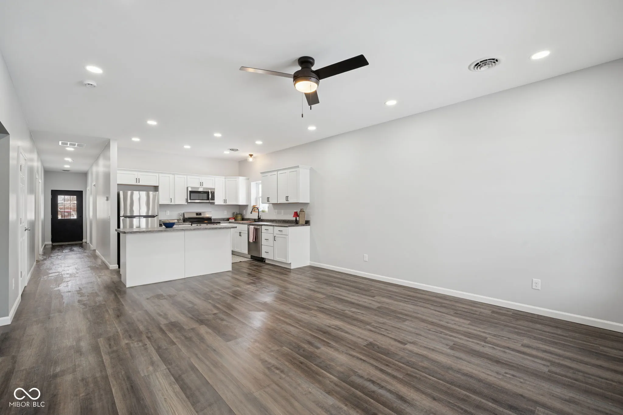 Step inside this new construction total electric home with so much to offer. With covered front and rear porches, 3 bedrooms, 2 full baths, 1 car attached garage, laundry room, large kitchen with an island that is open concept living into your family room. The primary suite with full bath with double sinks has a large walk-in closet. The kitchen features a pantry. The fully appliance kitchen has plenty of cabinet and counter space for entertaining. Inside you have luxury LVP flooring, Stain Master Carpet in the bedrooms, trendy bathrooms with tub/shower combos, Black metal siding & roof planked with gold/copper-colored gutters with black windows finish this hot exterior look of this home. New water and sewer line.