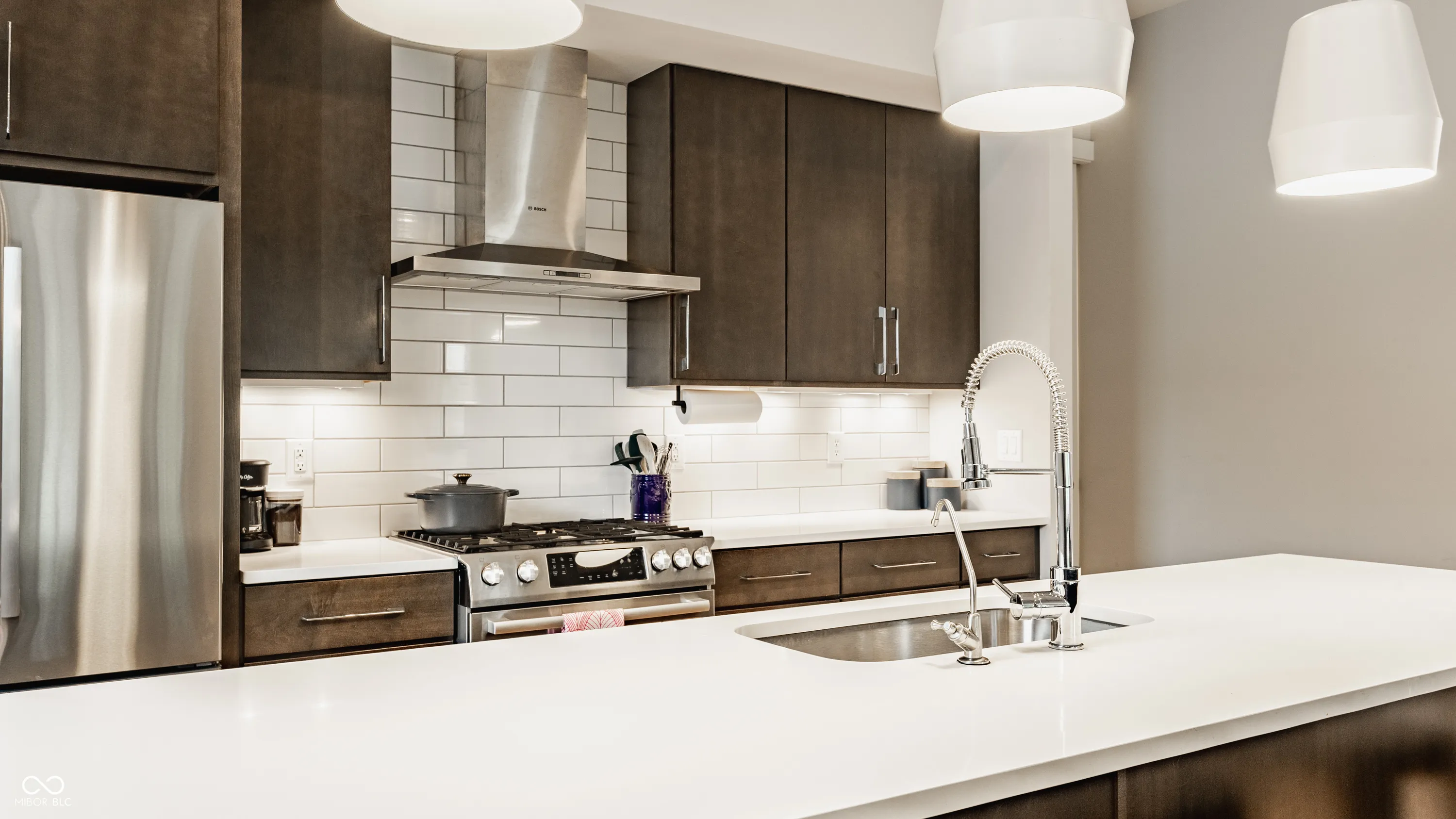 In the heart of Herron Morton find this beautiful ReDev designed townhome. This contemporary 3-bedroom, 3.5-bath residence offers a blend of cozy and clean lines. The kitchen is a showstopper featuring waterfall quartz countertops, an oversized island, stainless steel appliances, and a generous walk-in pantry. The bright and airy great room showcases rich hardwood floors and expansive windows that fill the space with natural light. Enjoy a serene retreat in the primary suite featuring a spa-inspired bath, dual vanities, and a walk-in closet. The fully finished basement adds functionality with a media/recreation room, third bedroom, full bath, wet bar, and abundant storage. Smart LED lighting on the main floor and built-in Sonos speakers round out this exemplary property. The Monon trail, pocket parks, restaurants, bookstores and coffee stops are all within walking distance. You will want to see this one to understand all it has to offer. Welcome home to your sanctuary in the city.