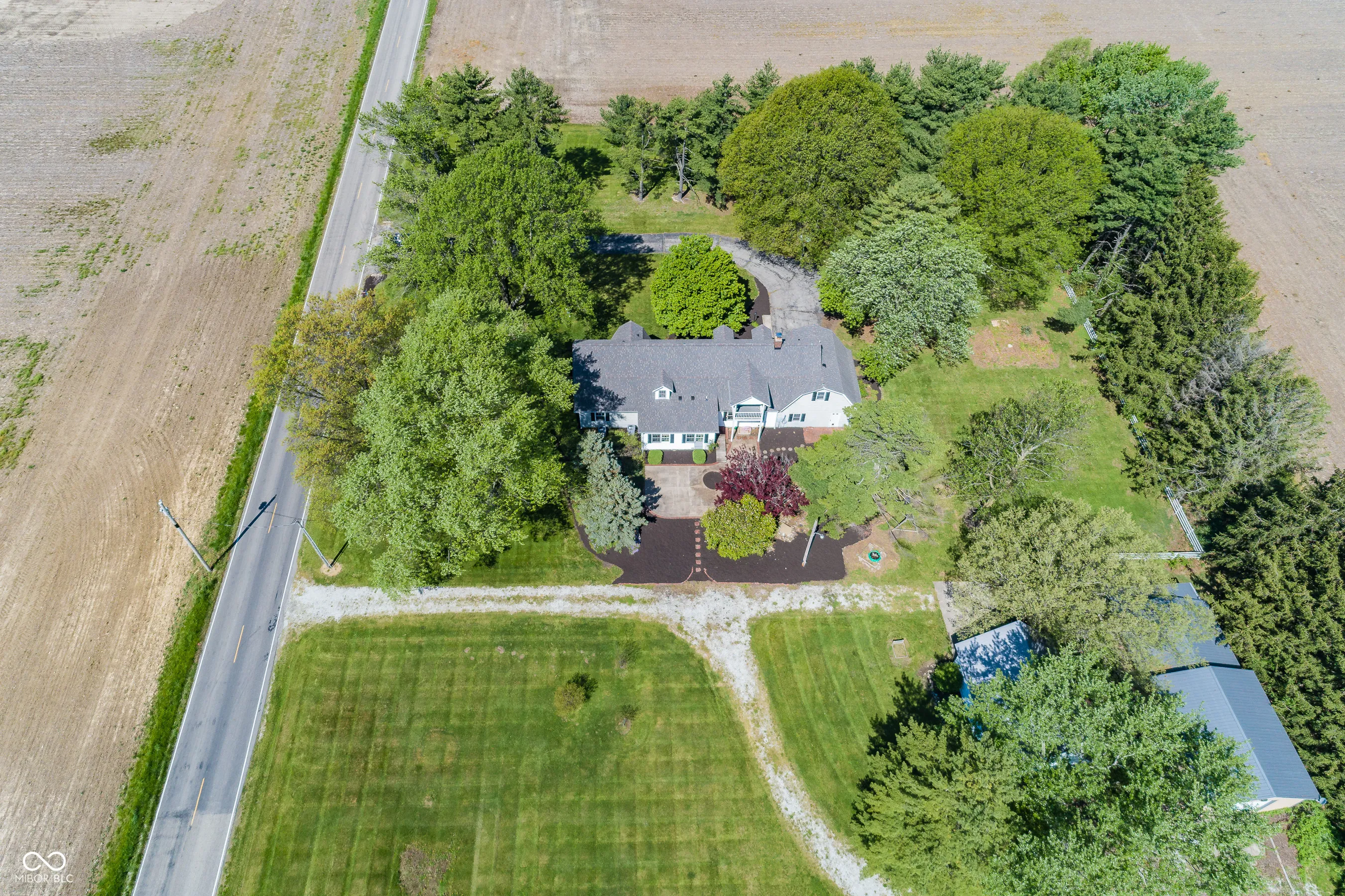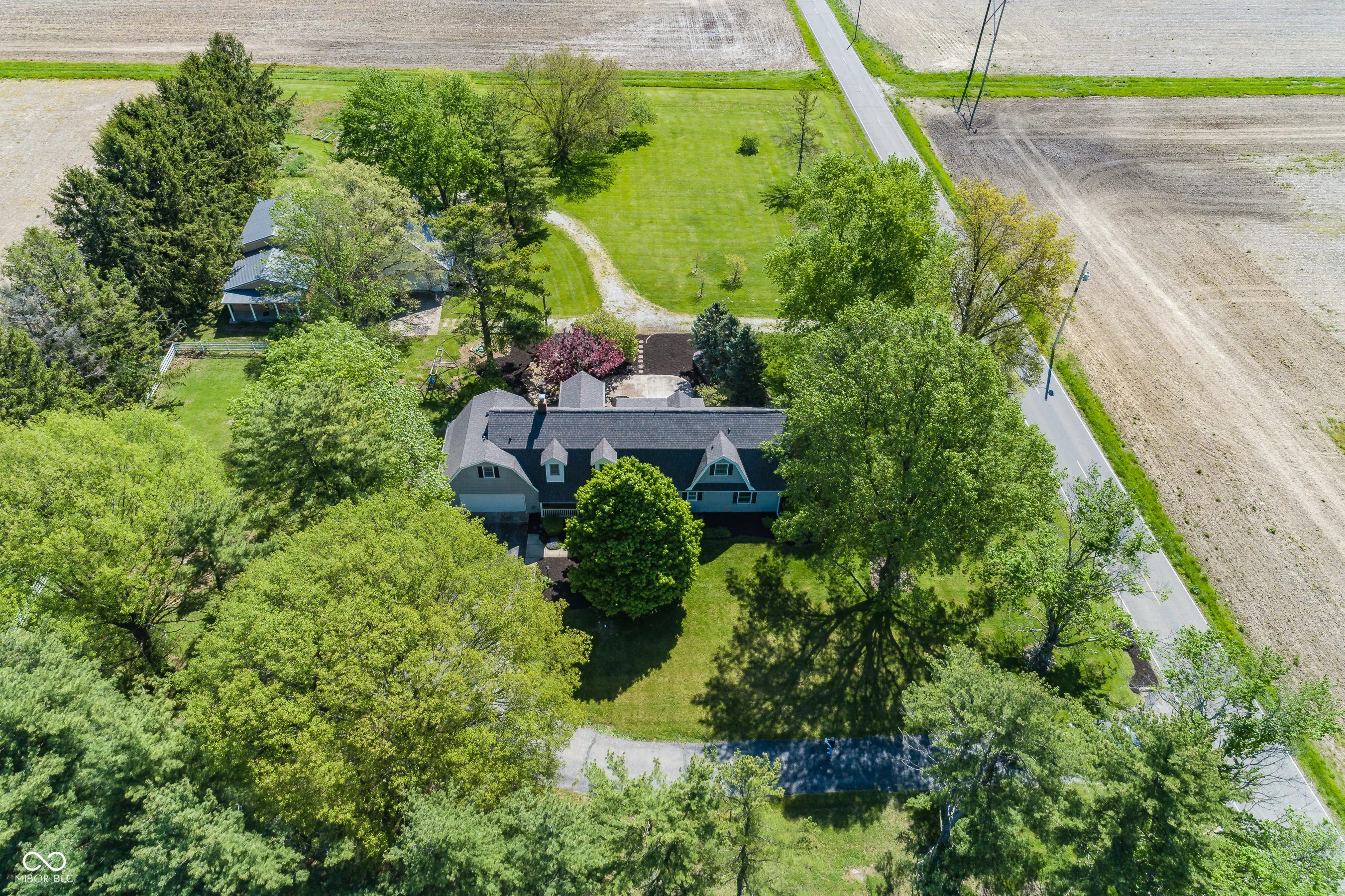 Charming updated Dutch Colonial farmhouse set on 3.2 acres with over 3,500 square feet of living space. The home features a warm and inviting family room with a fireplace, built-ins, and pegged oak floors. The updated kitchen includes an open layout with island, granite countertops, and a breakfast area that opens to a patio-perfect for entertaining with its koi pond and fire pit. The main level also offers flexible space for an office, den, or in-law quarters. Upstairs, the primary suite includes an updated full bath, along with a bonus room and two additional bedrooms. The property is privately situated, buffered by woods, yet offers a spacious garden area to the east. Outbuildings include a 32×24 older barn and a newer pole building with finished space ideal for an office, studio, playroom, or craft area. Fantastic opportunity near Mount Vernon Schools, with immediate possession available.