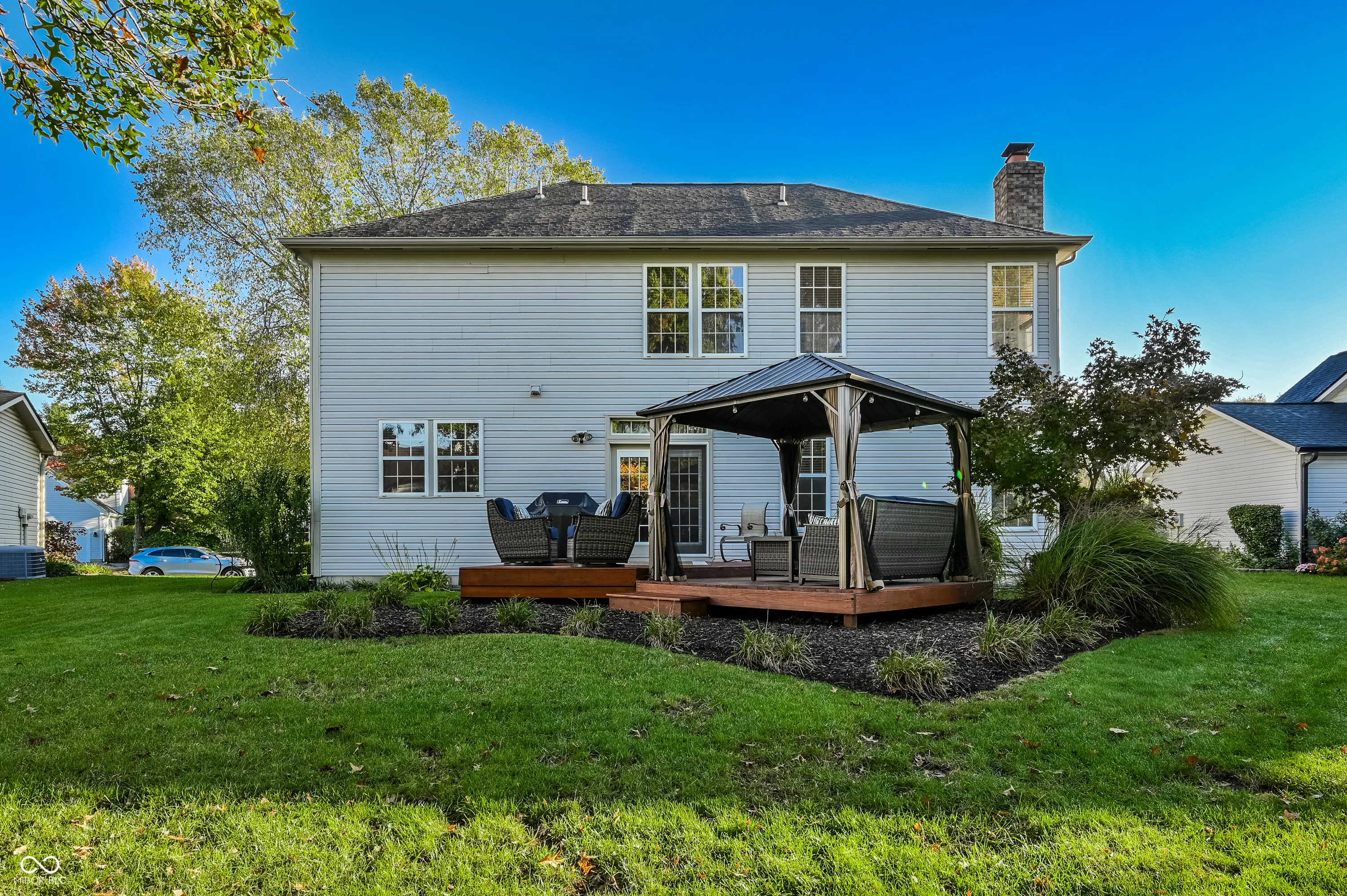 Nestled on a quiet street surrounded by mature trees, this beautifully maintained 4BR/2.5BA home offers the perfect blend of comfort, convenience, and charm. Located in the popular Plum Creek North neighborhood, residents enjoy reasonable HOA dues and close proximity to Lawrence W. Inlow Park, featuring pickleball courts, walking trails, and a fun-filled water park. Golf enthusiasts will love being so close several top-rated courses. Inside, you’ll find a grand two story foyer sure to WOW and a spacious and spotless interior with large bedrooms, renovated bathrooms, and thoughtful updates throughout – including quartz kitchen countertops, newer stainless steel appliances, updated lighting, and a brand-new air conditioning unit (2025). The terrific great room flows seamlessly from the kitchen and features a cozy gas fireplace, perfect for entertaining or relaxing on those fast approaching chilly nights. Newer luxury vinyl flooring provides durability and the look. Multiple walk-in closets and rare 2nd level laundry! The large finished basement with several daylight windows provides exceptional living space, storage and endless possibilities – easily adaptable into a home gym, craft room, or play space. Step outside to your serene backyard retreat, complete with a wood deck, pergola structure, and beautiful landscaping – ideal for outdoor dining or quiet evenings under the trees. FANTASTIC CARMEL/CLAY SCHOOLS CAN’T BE BEAT. Centrally located in east Carmel it’s literally minutes to all the exciting lifestyle elements that Hamilton County has to offer. This home truly checks every box – move-in ready, tastefully updated, and set in one of the area’s most desirable communities. See attachments for a full list of updates.