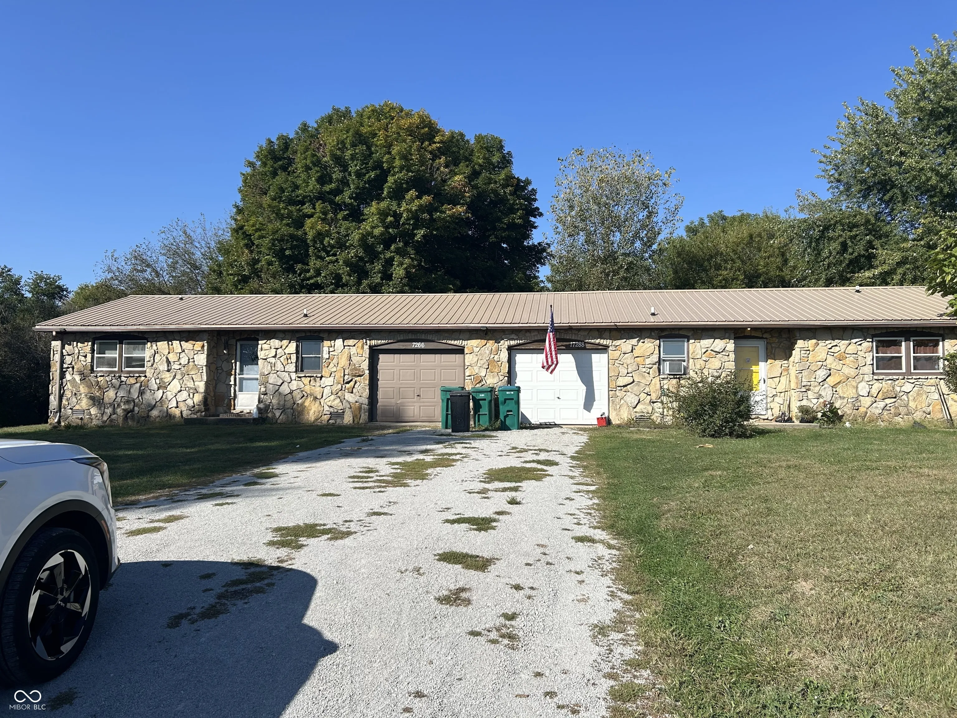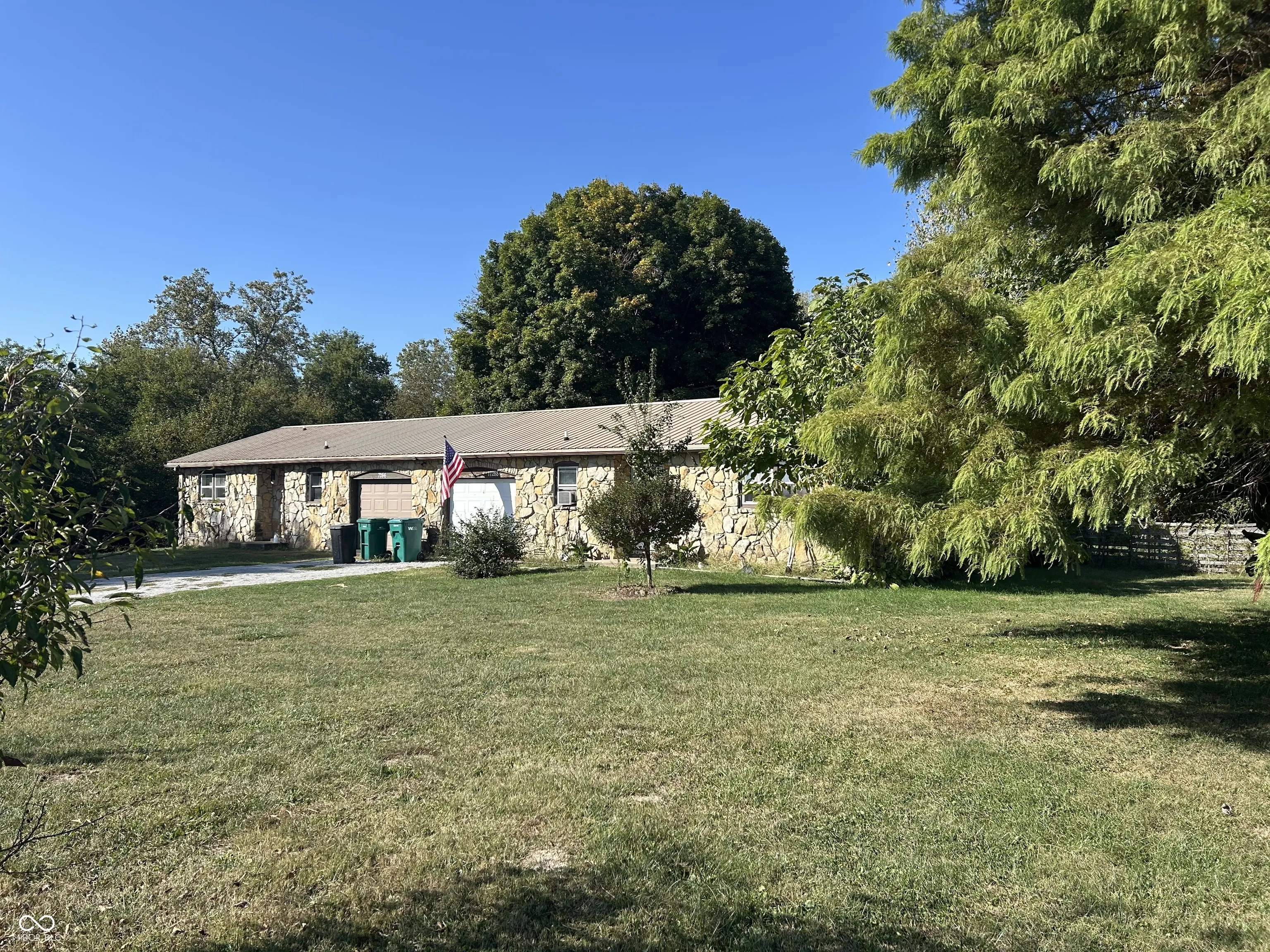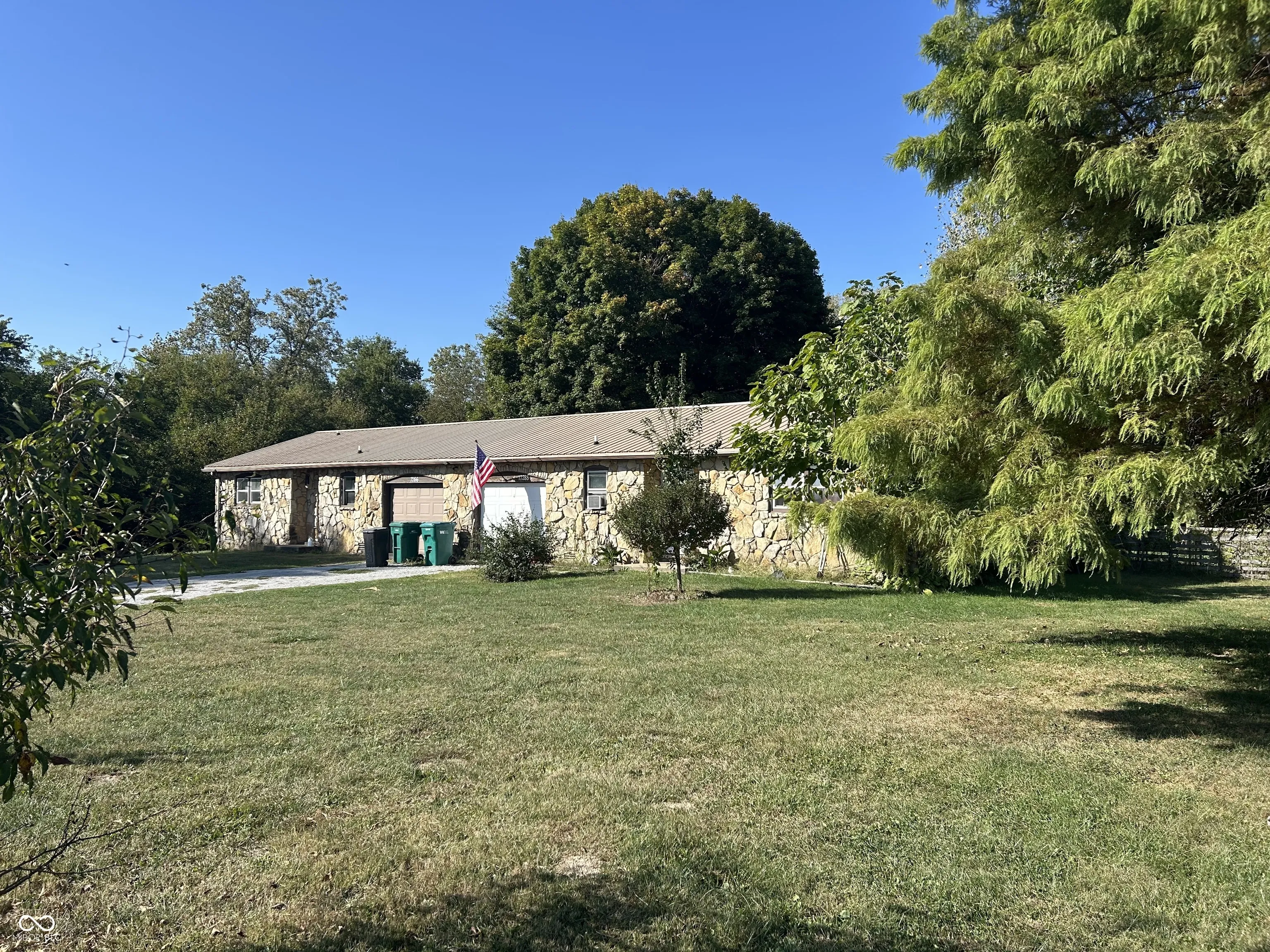 Amazing opportunity to live in one side and have the other provide income. Or make it an AIRBNB with the location to Ruoff music center. Beautiful stone double in the country with country fields out front and park like views outback almost a full acre of ground and two bedroom one bath with a one car garage on each side. put your finishing touches on the property to make it your own.