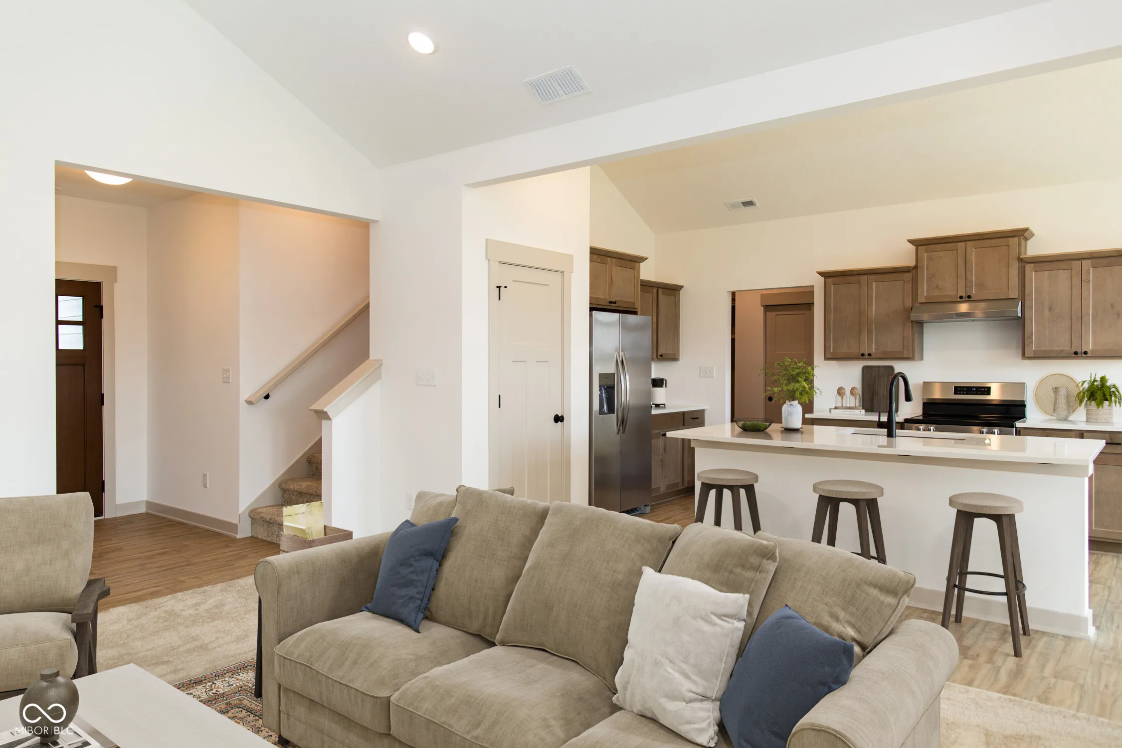 This New Construction Joyner Home is Located at 1521 Tupelo DR, GREENFIELD, IN, this single-family residence in Hancock County presents an attractive property in great condition. Imagine preparing meals in this home’s thoughtfully designed kitchen, complete with a large kitchen island and stone countertops providing ample space for culinary creations, and stylish shaker cabinets adding a touch of elegance. The kitchen bar offers a casual spot for morning coffee or evening conversations. The living room features a high ceiling and vaulted ceiling, creating an open and airy atmosphere perfect for both relaxation and entertaining. The primary bedroom provides a private retreat, enhanced by a tray ceiling adding architectural interest. The ensuite bathroom offers a walk-in shower, creating a spa-like experience within your own home. This home offers a porch and an open floor plan that complements the 2264 square feet of living area, providing a comfortable and flexible layout. This property is situated on a 9191 square foot lot. With 3 bedrooms and 3 full bathrooms. Built in 2025, this home combines modern construction with thoughtful design to offer a truly exceptional living experience.