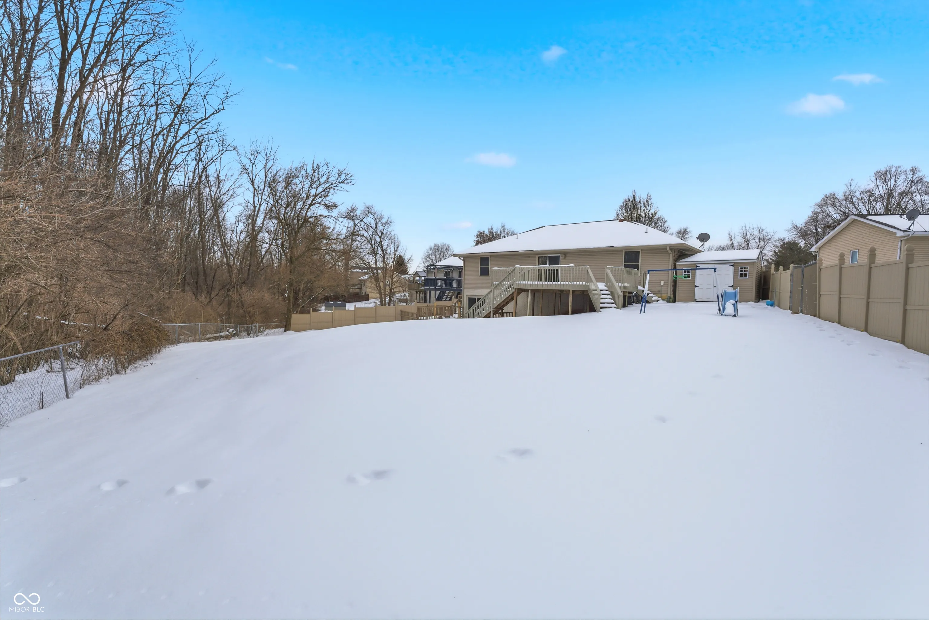 Welcome to this beautiful and unique home in a well-established neighborhood! This property is full of character and offers plenty of space for the whole family to enjoy. The main floor features a spacious master suite with walk-in closet, along with two additional bedrooms and a convenient guest bath. The kitchen is the heart of the home, with gorgeous butcher block countertops, a farmhouse sink, stainless steel appliances, shiplap accents, stylish backsplash, and a large bar that comfortably seats five-perfect for family meals or entertaining friends. A hidden pantry adds extra storage and charm. Downstairs you’ll find a huge open-concept basement, giving kids plenty of room to practice soccer, baseball, golfing simulator, or simply run and play during the winter months. The basement also includes laundry and utility space. One of the highlights of this home is the fully finished mother-in-law suite. With its own private entrance (or interior access), it offers a complete kitchen with quartz countertops, soft-close cabinetry, backsplash, and stainless steel appliances, plus a full bath. This space is perfect for extended family, guests, or flexible living arrangements. Throughout the home you’ll notice rich dark wood-style flooring that ties everything together beautifully. Outside, you’ll love the all-brick exterior, a large fenced-in yard for kids and pets, a spacious deck for grilling and relaxing, and a privacy fence along the north and south sides. An additional mini barn provides even more storage. This property truly has it all-room to grow, space to gather, and features that make family life easy and enjoyable. Don’t miss your chance to make it your own!